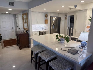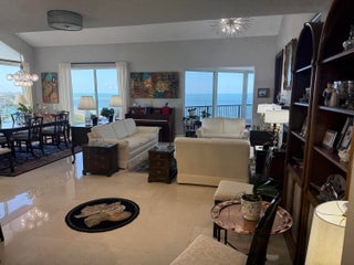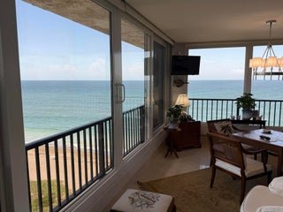 Experience coastal living at its finest in this fully renovated oceanfront residence. Perhaps the most incredible 4 bedroom 3 bathroom penthouse in Ocean Village. This condo is a true masterpiece, thoughtfully designed with top tier finishes. Owner spared no expense with stainless steel Bosch appliances, a Dutch oven, deep sink, in cabinet microwave with warming drawer, wine refrigerator, quartz countertops. Living room has vaulted ceilings, electric fireplace and 8' mahogany doors and stairway that leads to office, bedroom, bathroom and private roof top terrace. Enjoy the skyline views of the ocean and intracoastal. Condo has 2 central AC units. Amenities include 9 hole golf course, pools, tennis, new pickle ball courts and clubhouse. This exceptional residence truly has it all!