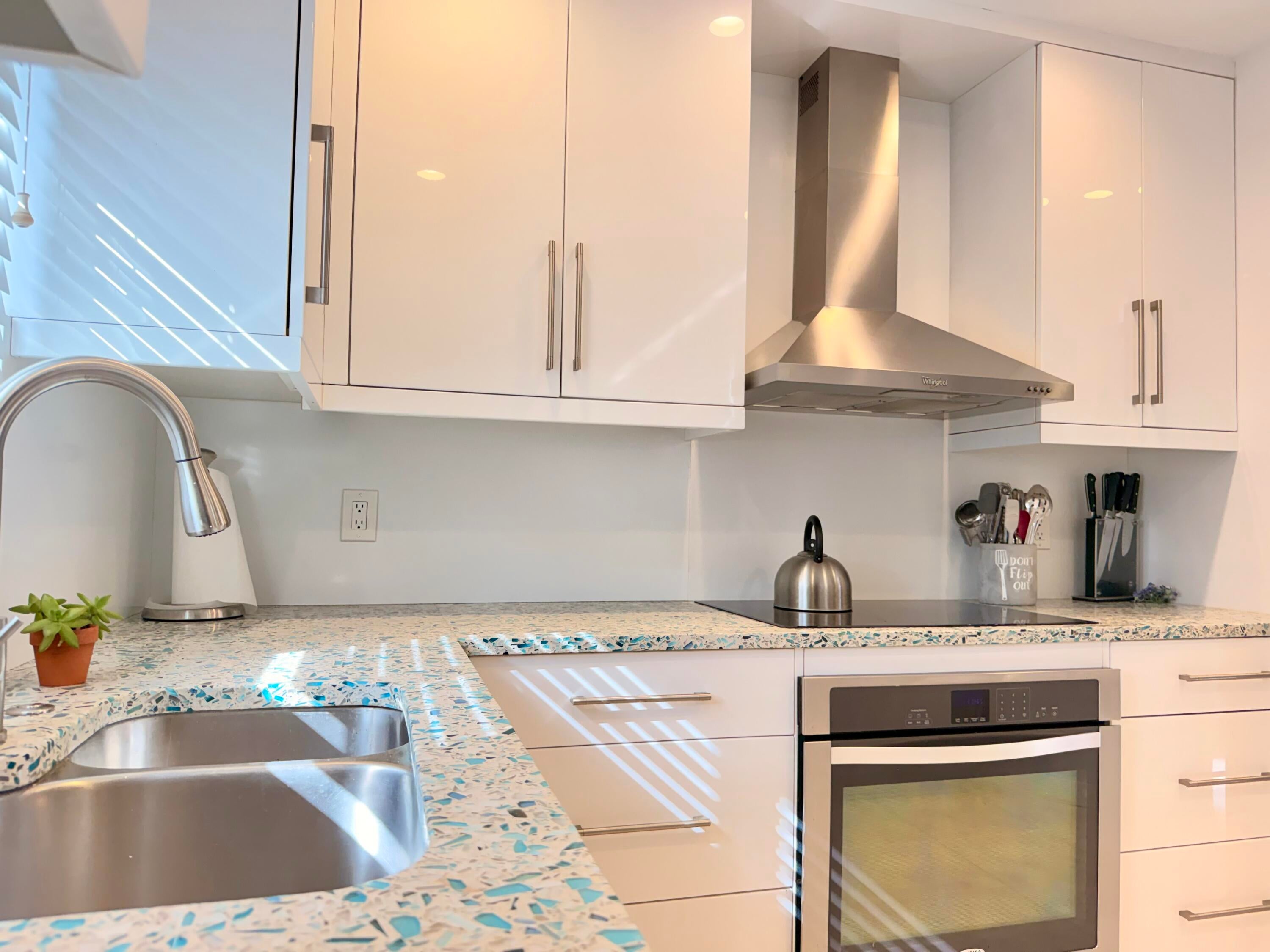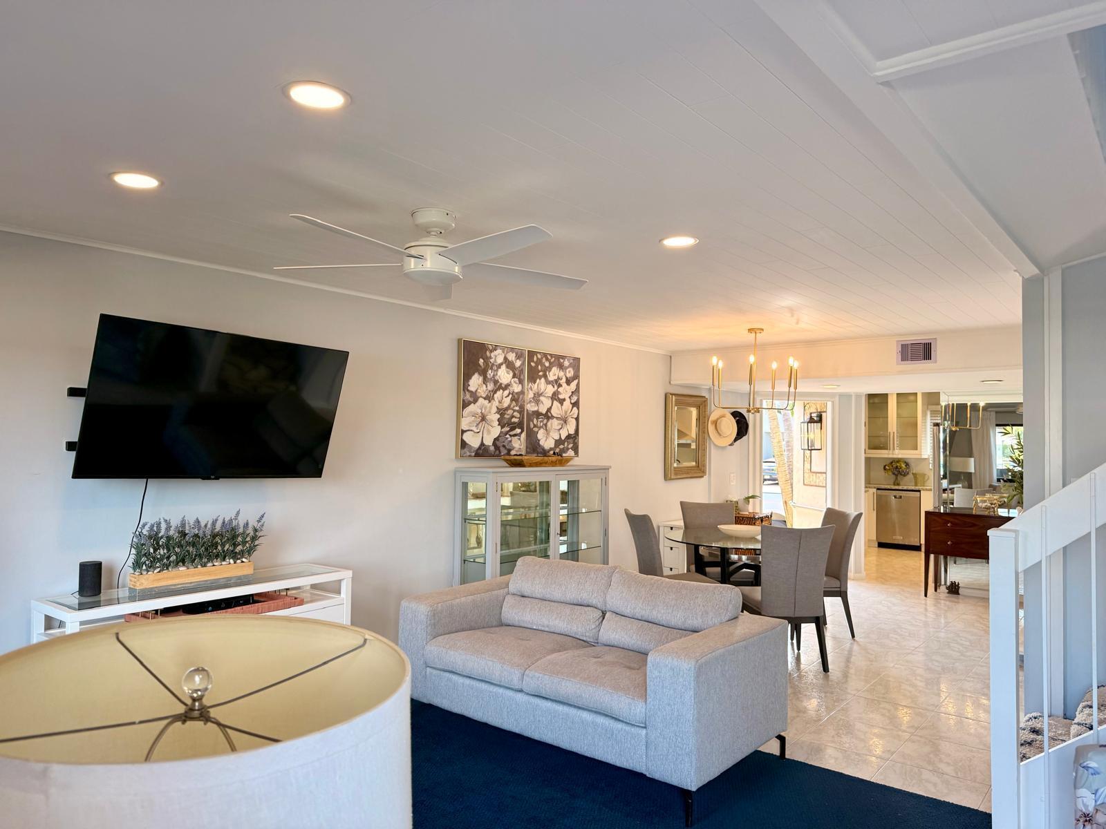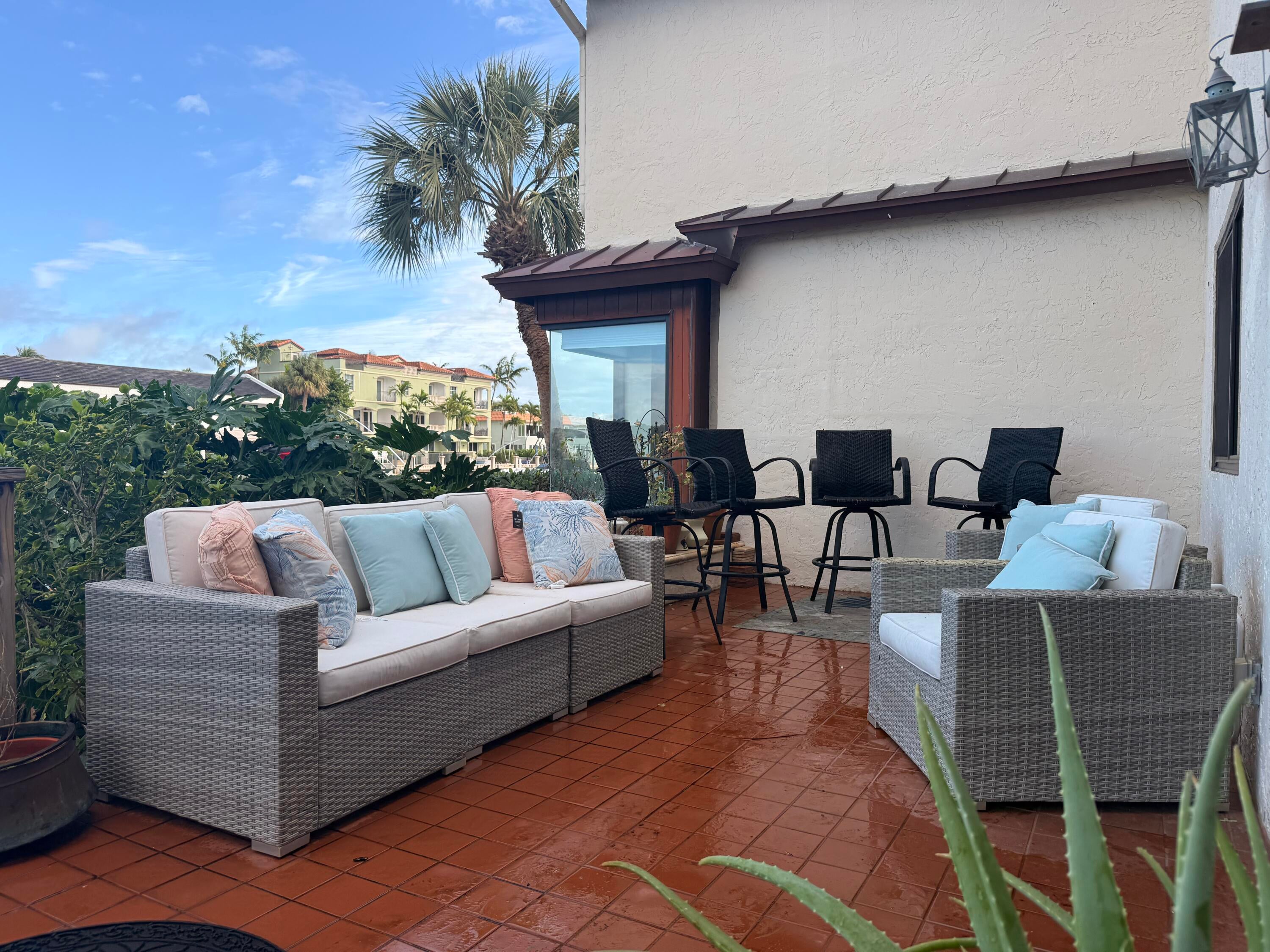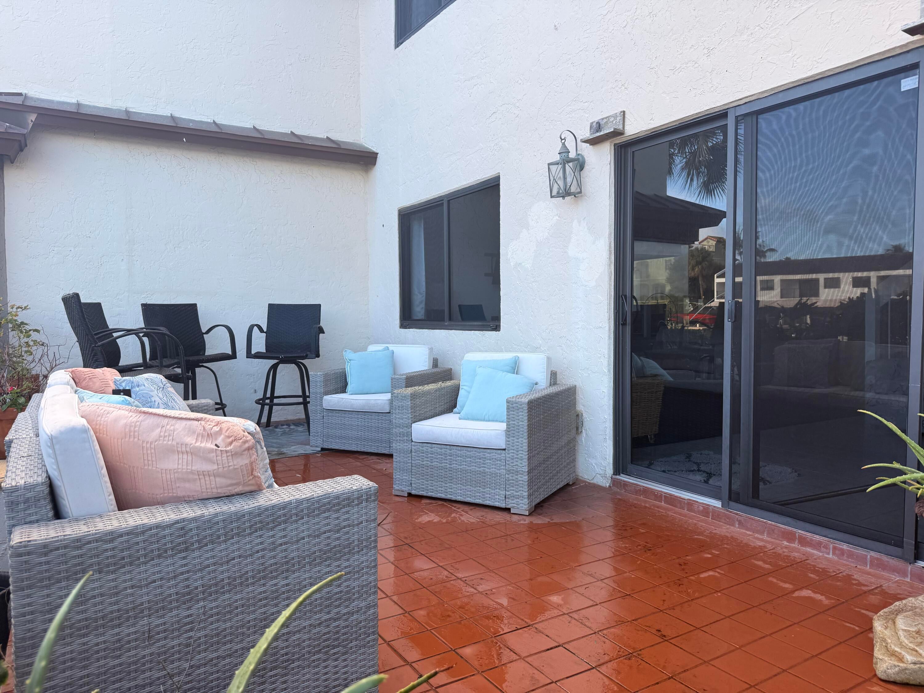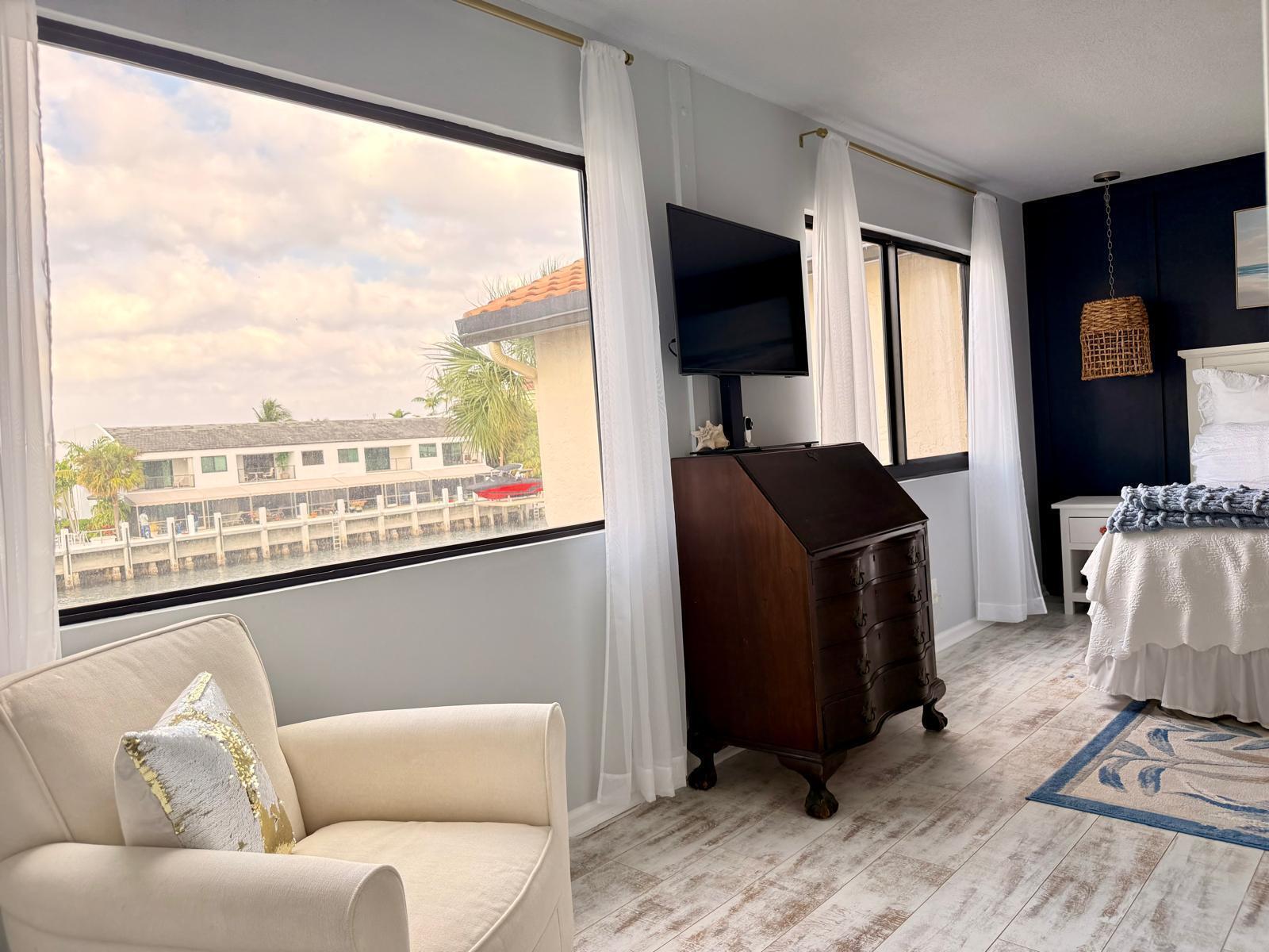 Turnkey waterfront townhouse with major infrastructure upgrades, including a reinforced seawall and new docks, set on a wide-water Intracoastal point lot with no fixed bridges. Located in Villa Del Alto, a boutique six-unit community at the end of a quiet cul-de-sac in Highland Beach, this fully furnished 2-bedroom, 2-bath, two-story residence offers Intracoastal and preserve views with direct ocean access.Recent improvements include a new roof, reinforced seawall, new dock around the boat slips, new dock near the pool, new landscaping, complete new AC system. The main level features an open living and dining area, updated kitchen with white cabinetry and stainless steel appliances, a full bedroom and bath, and direct access to a waterfront patio overlooking the Intracoastalideal for outdoor living and entertaining. Upstairs, the primary suite functions as a private living space with a sitting area, walk-in closet, and a completely renovated bath featuring dual vanities, glass-enclosed shower, and freestanding tub. Impact glass throughout.