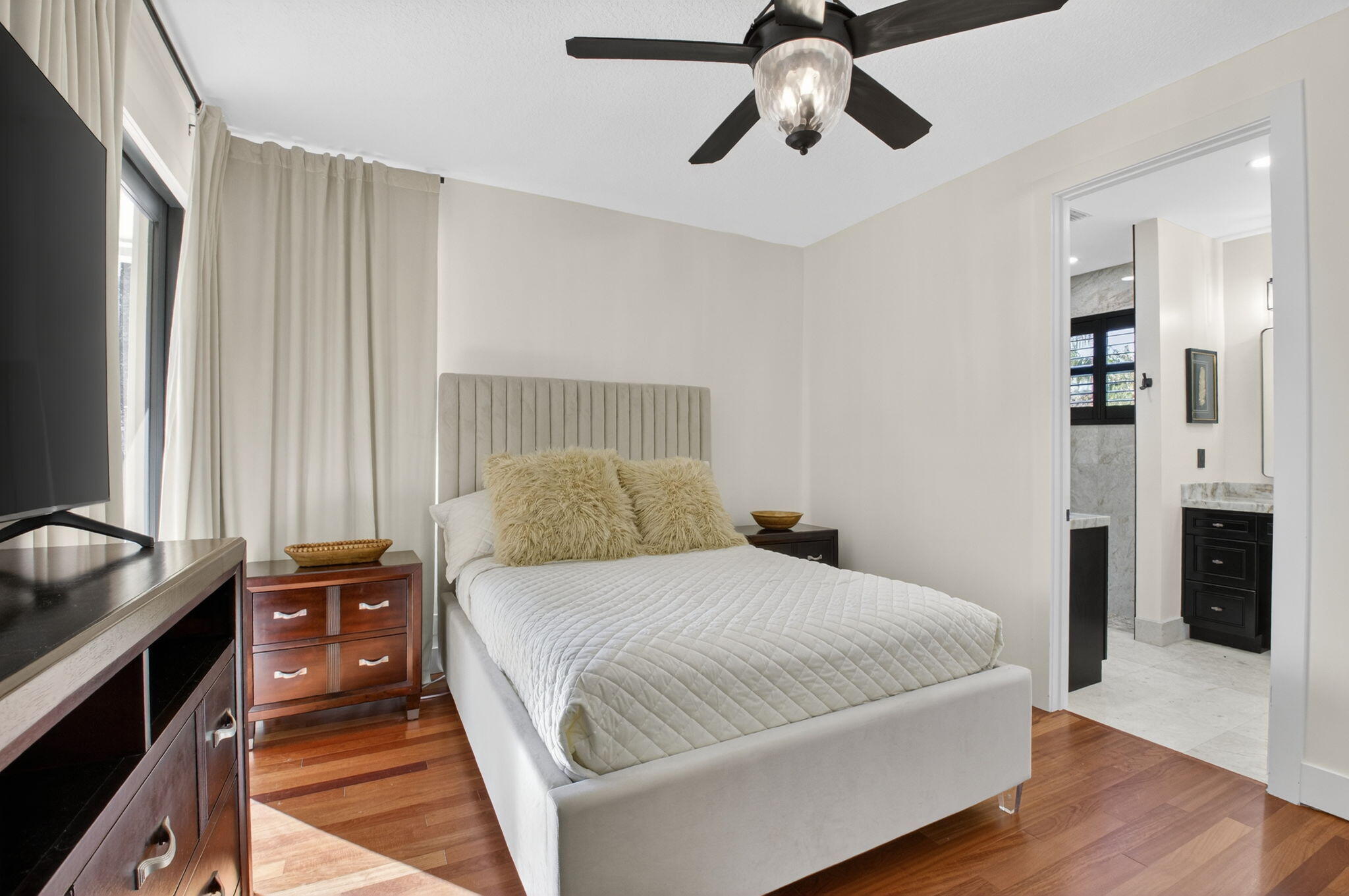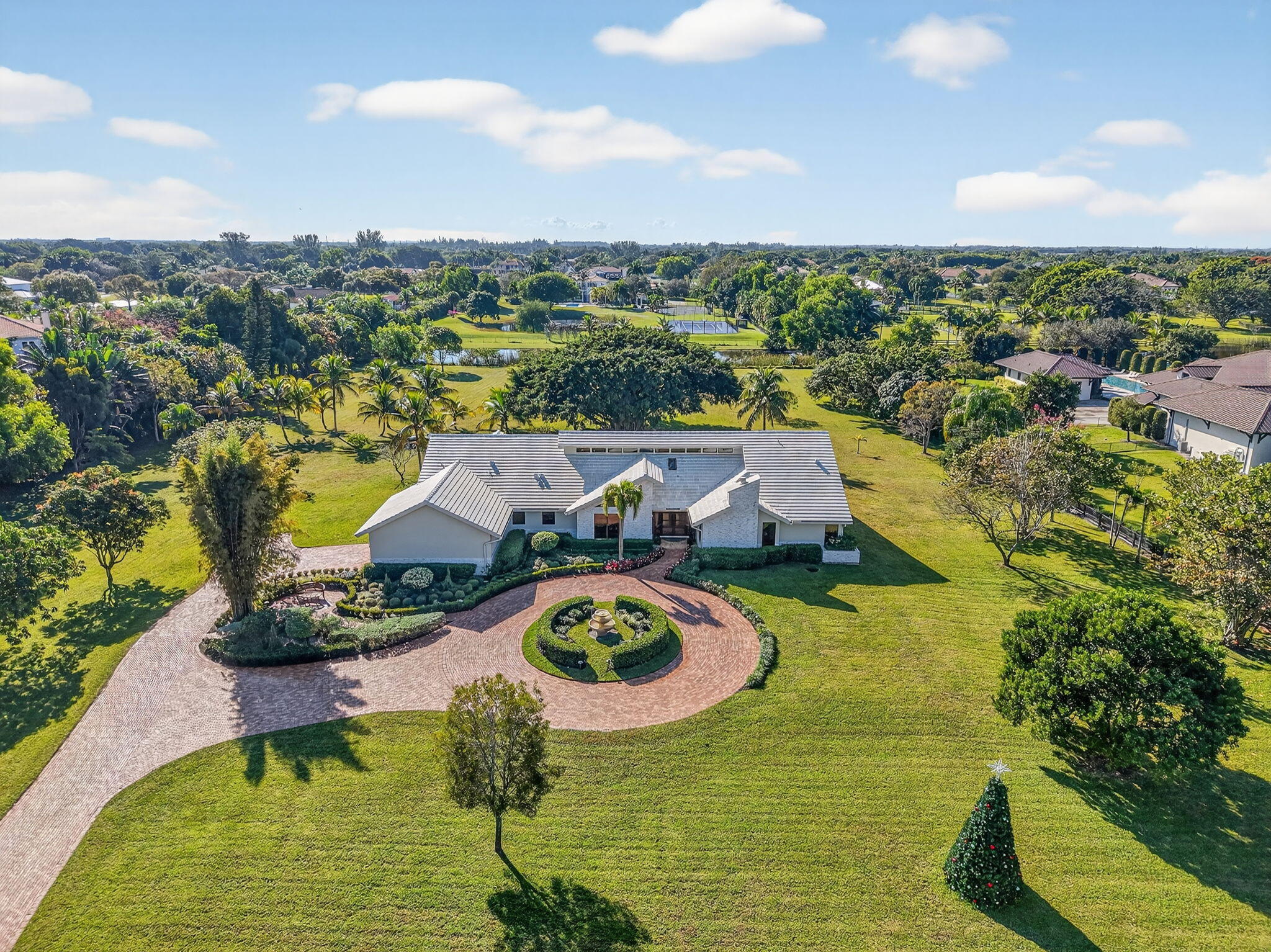 Rare 5-Acre Fully Renovated Estate Modern Rustic Retreat in gated community. Discover a rare opportunity to own 5 pristine acres in beautiful Delray Beach. This property is in highly desired Tierra Del Rey, an esteemed community with only 78 parcels. This exceptional estate has been reimagined and has recently completed inside & out renovations that seamlessly blend modern luxury with rustic charm to create an inviting and stylish retreat unlike any other. Step inside to experience a thoughtfully curated interior featuring open concept living, designer finishes, and an abundance of natural light throughout. Every detail has been carefully considered; from the premium flooring, custom cabinetry, high-end fixtures & elegant textures that bring warmth and sophistication to every room.Whether you're relaxing indoors or enjoying the expansive outdoor space, with water views, this property delivers privacy, serenity, and space ideal for entertaining, family living, or building your dream compound with room for a guest house and equestrian features. Interior features 5-bedrooms, 4 baths. Open floor plan with high-end finishes throughout the home. Expansive designer kitchen boasting designer cabinets, chef inspired appliances and 45 square foot island with a built-in wine cooler. Expansive luxury primary suite with steam shower, spa tub, 192 square feet of custom fitted closet space with island and salon station. Wood burning stone framed fireplace, Expansive outdoor living area includes multiple patios, expansive pergola wired for entertainment, and heated salt water pool and spa Property is surrounded by Majestic landscaping centered by curated gardens and fountain with a stately Banyan Tree that frames the property create tranquility; multiple tropical flowering trees create beauty and delicious mango trees harvested annually. Renovation Features Completed (2022/2023) Interior - New Marble floors throughout the main living space - Refinished wood floors bedrooms - Interior redesign to create open concept in entryway, kitchen and family room, 8 foot doorways, new trim, fully repainted interior, - Custom window treatments (plantation shutters and draperies)-2 new AC units and hot water heaters. Visual Comfort lighting and new electrical fixtures and fans throughout. Chef's Kitchen features: Imported Sinda hammered copper commercial hood and farm sink, New appliances, Wolf gas range, Bosch dish washer, built in ZEPHR dual zone wine cooler Quartzite countertops with over-sized (45 sq feet) central island Bathrooms feature marble showers, quartzite counter tops, Kohler and TOTO. Laundry room - Samsung washer and dryer Redesigned luxury primary suite with steam shower, spa tub, 192 square feet of custom fitted closet space with center island and salon station, plantation shutters and custom draperies. Exterior -Expansive gardens with stone fountain features and lighting, privacy hedges, Custom exterior lighting package - Exterior modern flat coat stucco and stacked stone - All new impact windows and doors throughout - Masterfully redesigned pool and spa with salt water conversion and custom mosaics, multi-color lighting package and new heater and pump. - Expansive custom pergola (510 sq feet) with lighting and wired for outdoor television. - Full home generator with 500-gallon propane tank Parking for 10+ vehicles. This rare offering won't last long. Schedule your private showing today and experience the unmatched lifestyle that Tierra Del Rey has to offer.