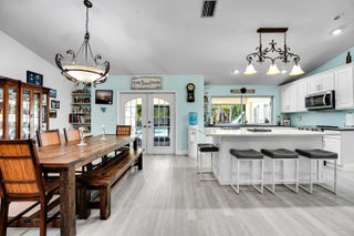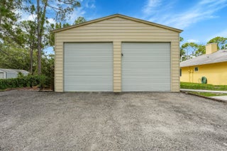 Beautiful paradise in the backyard, a pool surrounded with palm trees. NO HOA, bring the horses, goats, chickens. 4 bedroom, 2 bathroom home that includes a bonus room/office & 2 detached buildings. Nestled on 1.3 Acres this home has it all. Brand new hurricane impact windows, A split bedroom floor plan showcasing a primary bedroom retreat to enjoy your own peaceful space with a walk-in closet bigger than you can picture! The kitchen is completely redone with brand-new stainless steel appliances, cabinets and new floors throughout the house. Outside you'll find a screened in covered porch perfect for entertaining, 2 storage sheds and plenty of room for the animals. The massive detached shop is 30 x 65, has electric, a car lift with double roll up doors in front & one in the back.There is RV hook up. The detached CBS garage is a 2 & half car garage with electric & water, easily convertible into a guest house. Brand new whole house reverse osmosis water system.