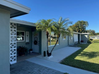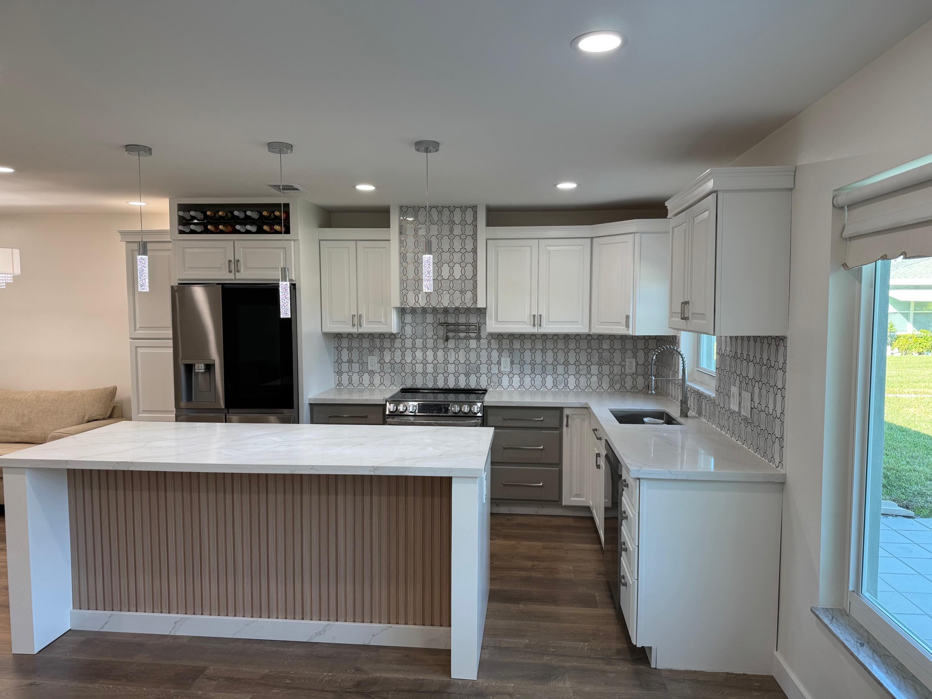 This beautifully designed one story villa offers luxury finishes, quality workmanship, and a spacious layout that truly lives large. The expansive open-concept great room is ideal for both everyday living and entertaining, complemented by recessed lighting, upgraded electrical, and smart wireless features throughout the home. The chef's kitchen showcases quartz countertops, a large movable quartz island, a striking pasta wall faucet, and brand new LG ThinQ smart appliances still in the manufacturer's original wrapping. This home features Luxury Vinyl Wood Planks that blends the elegance of hardwood with exceptional resilience and is water resistant. The LVP was installed over a premium grade underlayment; floorMuffler ultraSeal.All windows and doors have tinted impact glass. This home also features washer and dryer hookups, attic storage and remote controlled lighting for added convenience. Newly extended paved patios in both the front and back provide excellent outdoor living space. Residents enjoy low HOA fees with maintenance that includes internet, cable, water, roof, and exterior care, allowing for truly low maintenance living. Community amenities include a pool, bocce court and clubhouse. This villa combines modern technology, upscale finishes and exceptional value in a resort style setting. Measurements are approximate. Buyer and/or Buyers Agent to verify all information and measurements.