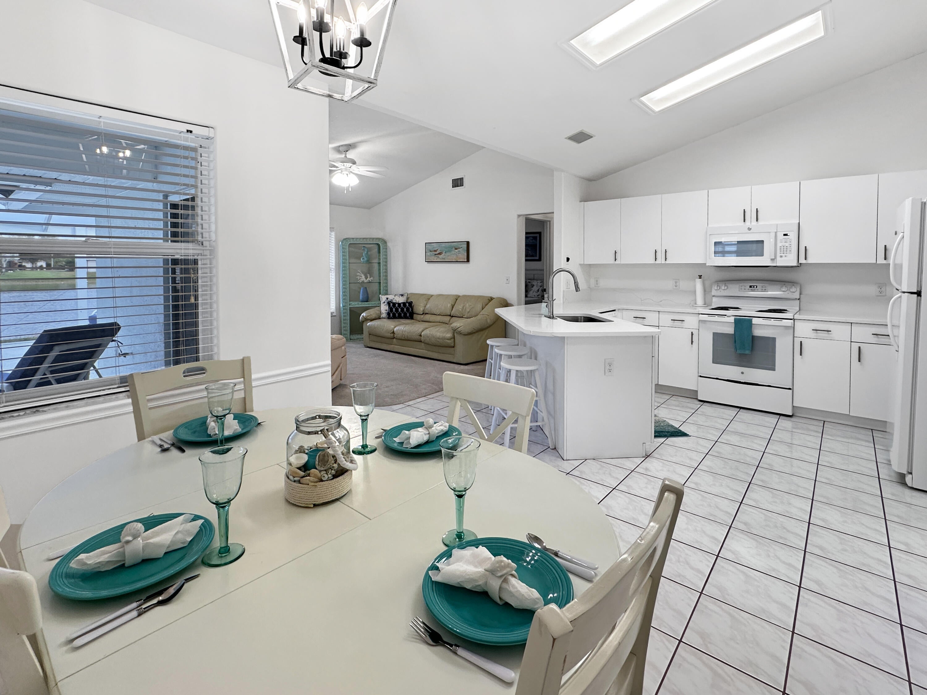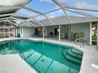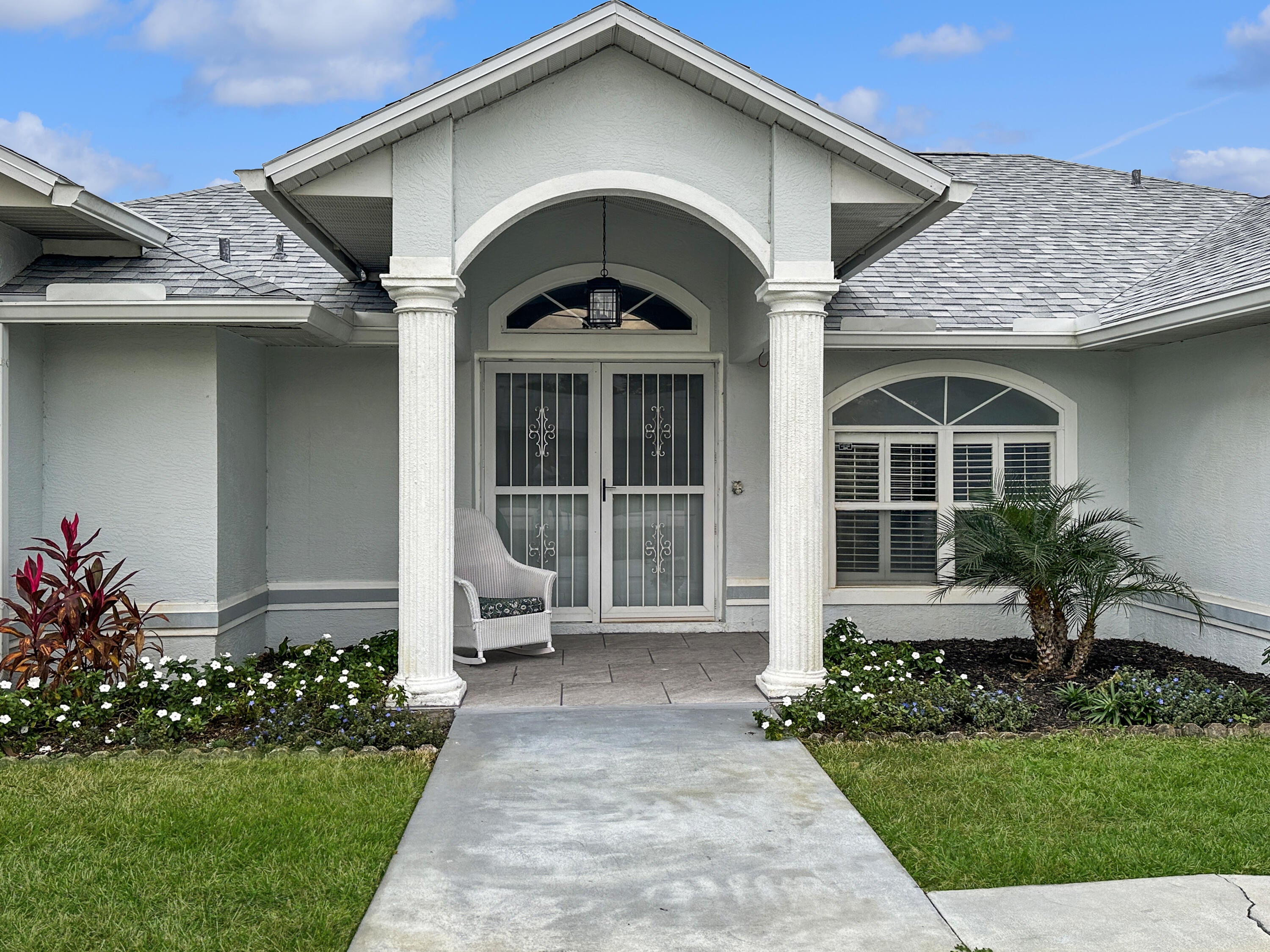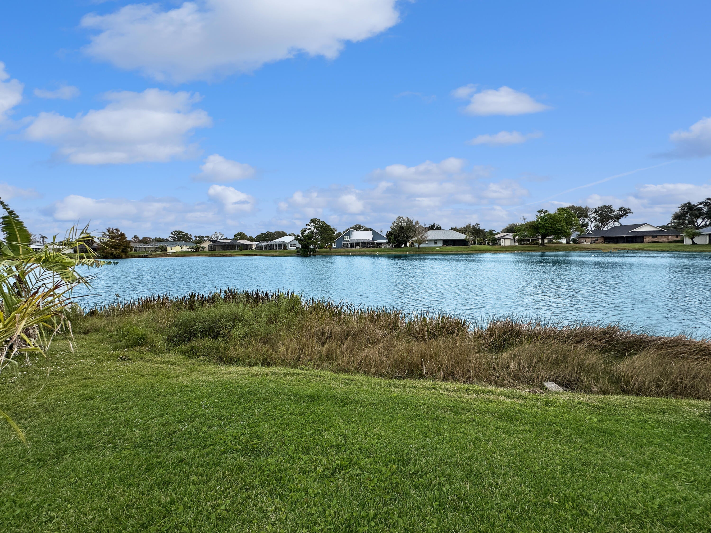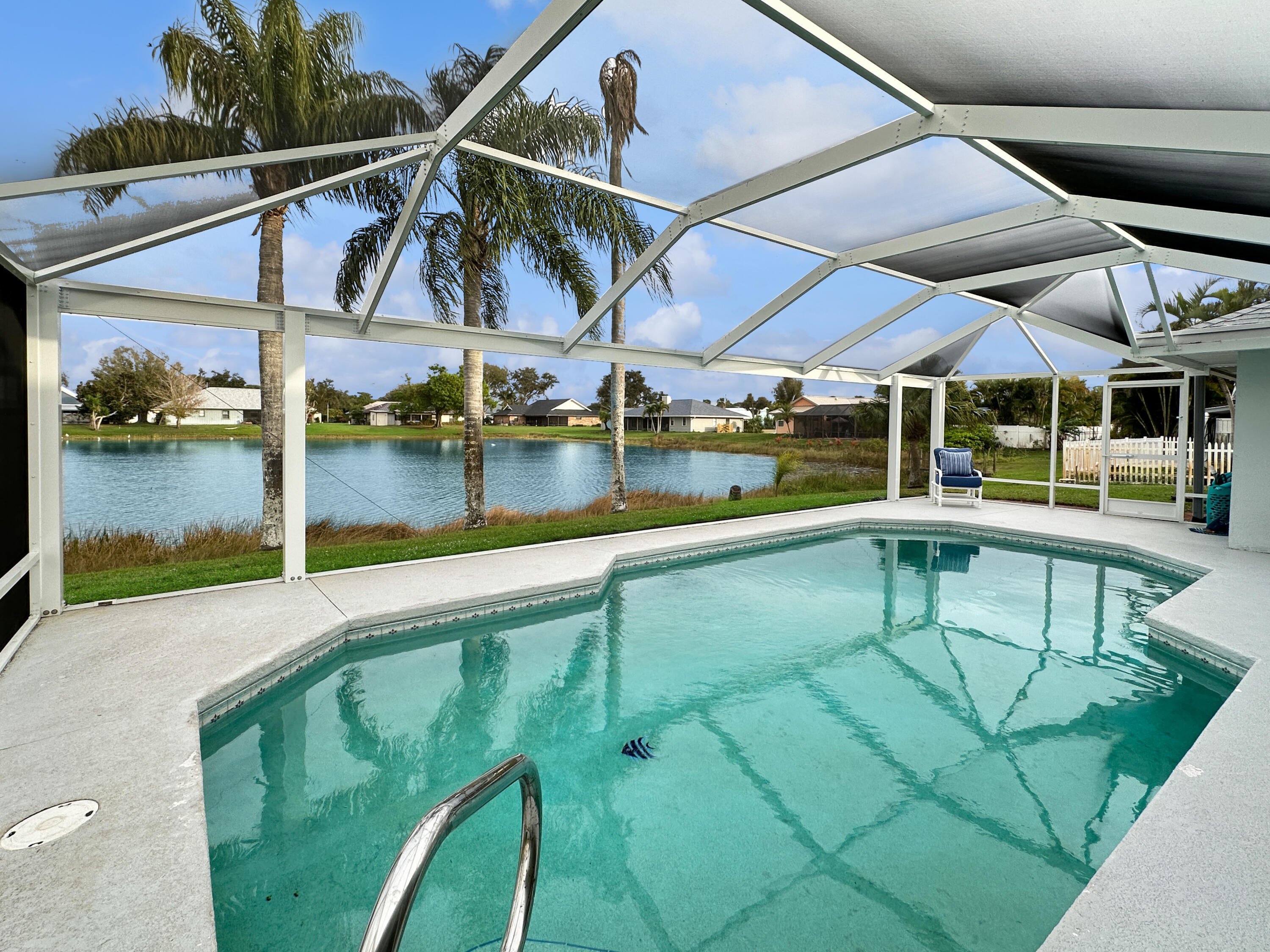 Step into your own slice of paradise with this exquisite 3-bedroom, 2-bathroom single-family home nestled in the desirable Holiday Pines neighborhood. Boasting a solid 1996 construction with serene lake views, this gem features a welcoming formal living and dining area perfect for entertaining.The heart of the home shines with a bright kitchen, complete with Quartz countertops, ample pantry space, a convenient snack bar, and an adjacent breakfast/family dining area that invites warmth and conversation. The thoughtful split bedroom plan ensures privacy, with a large master retreat, with private pool access, offers his/her walk-in closets and a spacious en suite bath with double sink granite vanity and a spacious walk-in shower.Two additional guest bedrooms come equipped with well-lit,roomy closets. A practical laundry room provides additional storage options, and a 2-car garage is climate-controlled for comfort. Step outside to the large, covered porch and discover the ultimate relaxation spot, featuring a screened pool with breathtaking, unobstructed views of the lake thanks to a panoramic screen wall. Recent updates include a new roof in 2025, an air conditioner in 2022, and a hot water heater in 2024. Located conveniently close to shopping, dining, schools, parks, golf, and beaches. Plus, with major roadways nearby, an expanding international airport just miles away, and the future Buc-ee's, everything you need is within reach in this idyllic community. Don't miss the chance to make this dream home yours!