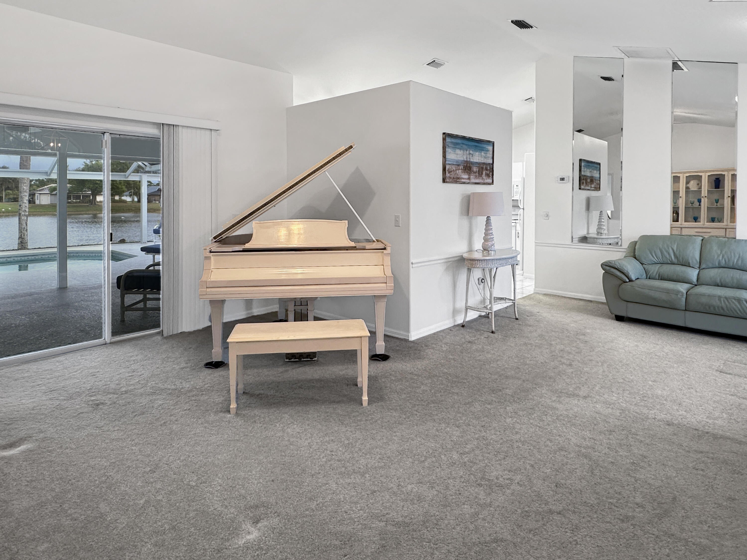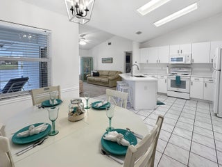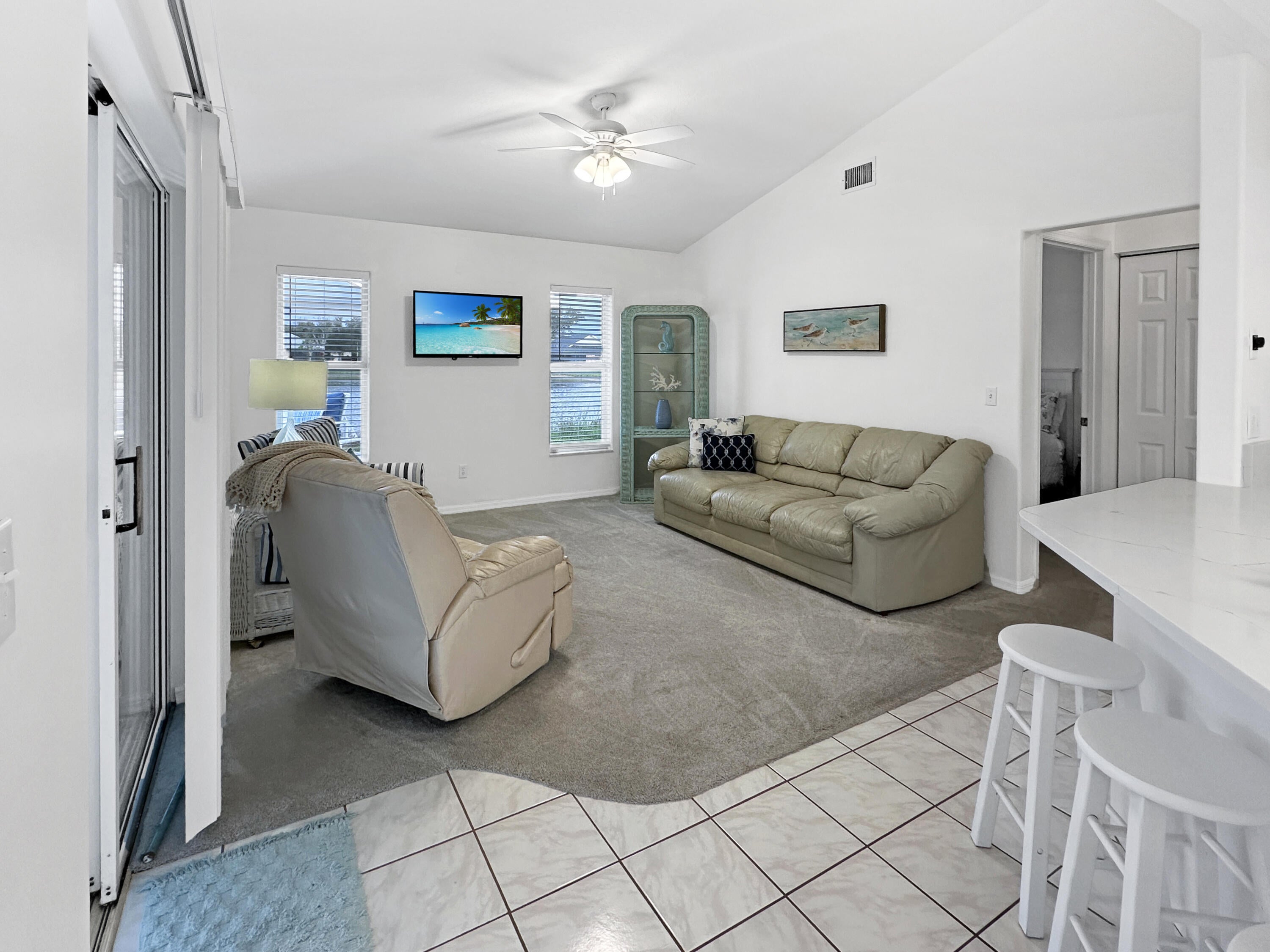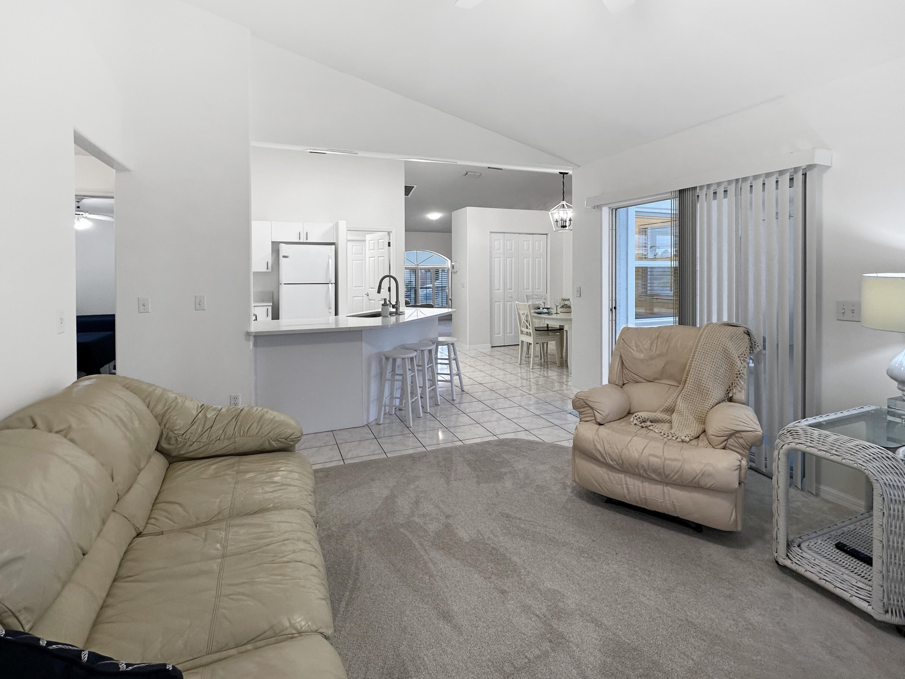 Step into your own slice of paradise with this exquisite 3-bedroom, 2-bathroom single-family home nestled in the desirable Holiday Pines neighborhood. Boasting a solid 1996 construction with serene lake views, this gem features a welcoming formal living and dining area perfect for entertaining.The heart of the home shines with a bright kitchen, complete with Quartz countertops, ample pantry space, a convenient snack bar, and an adjacent breakfast/family dining area that invites warmth and conversation. The thoughtful split bedroom plan ensures privacy, with a large master retreat, with private pool access, offers his/her walk-in closets and a spacious en suite bath with double sink granite vanity and a spacious walk-in shower.Two additional guest bedrooms come equipped with well-lit,roomy closets. A practical laundry room provides additional storage options, and a 2-car garage is climate-controlled for comfort. Step outside to the large, covered porch and discover the ultimate relaxation spot, featuring a screened pool with breathtaking, unobstructed views of the lake thanks to a panoramic screen wall. Recent updates include a new roof in 2025, an air conditioner in 2022, and a hot water heater in 2024. Located conveniently close to shopping, dining, schools, parks, golf, and beaches. Plus, with major roadways nearby, an expanding international airport just miles away, and the future Buc-ee's, everything you need is within reach in this idyllic community. Don't miss the chance to make this dream home yours!