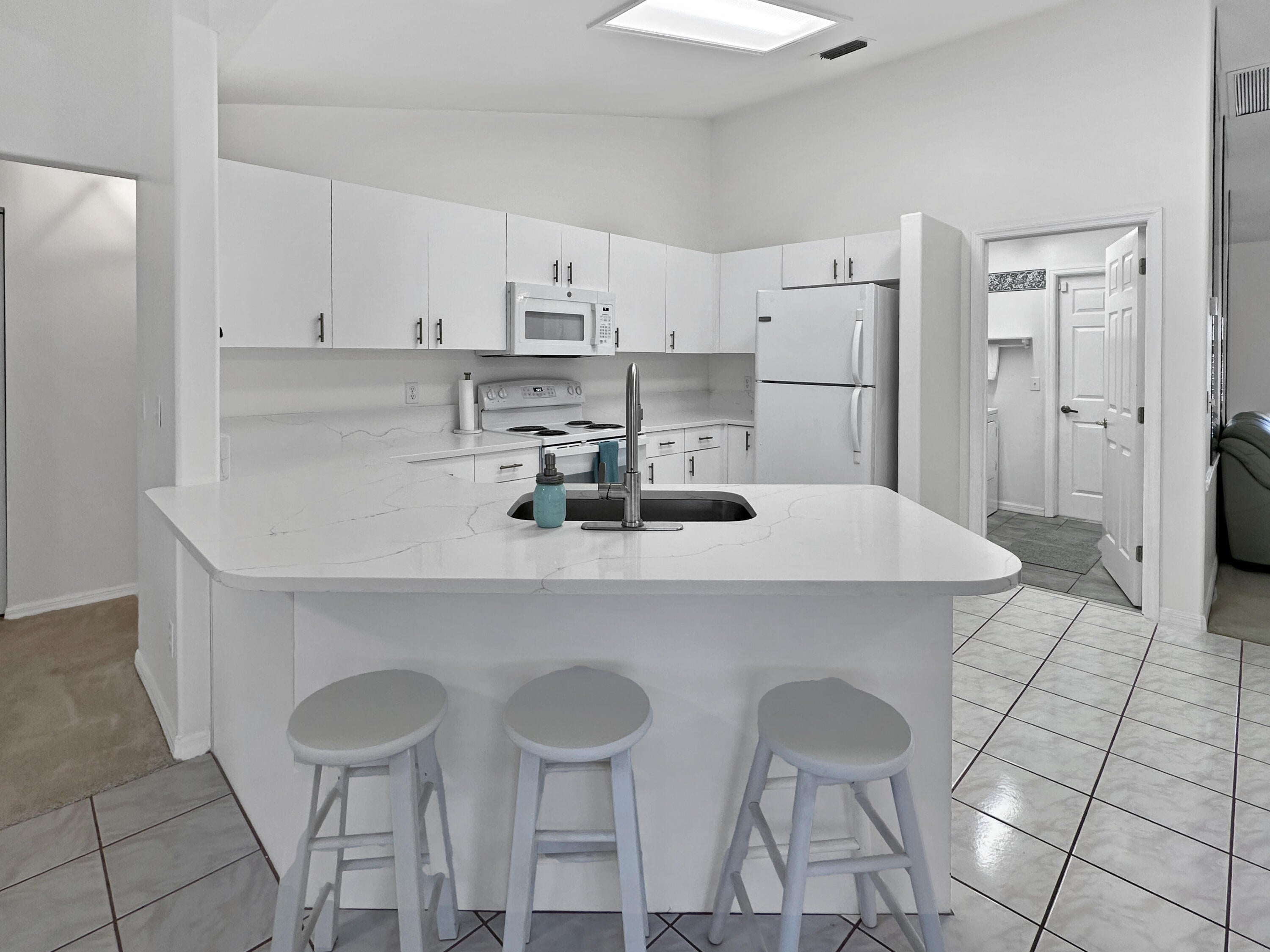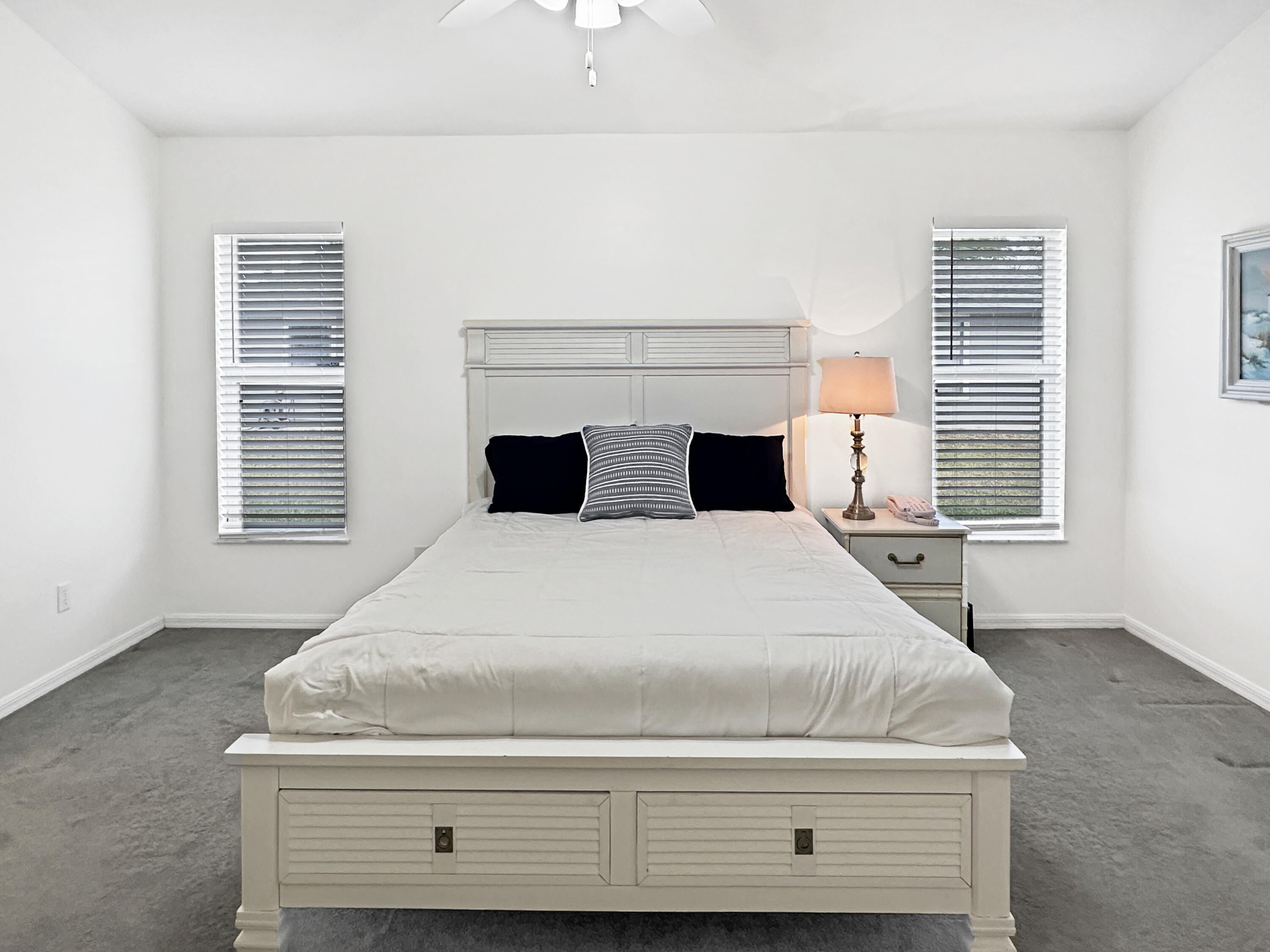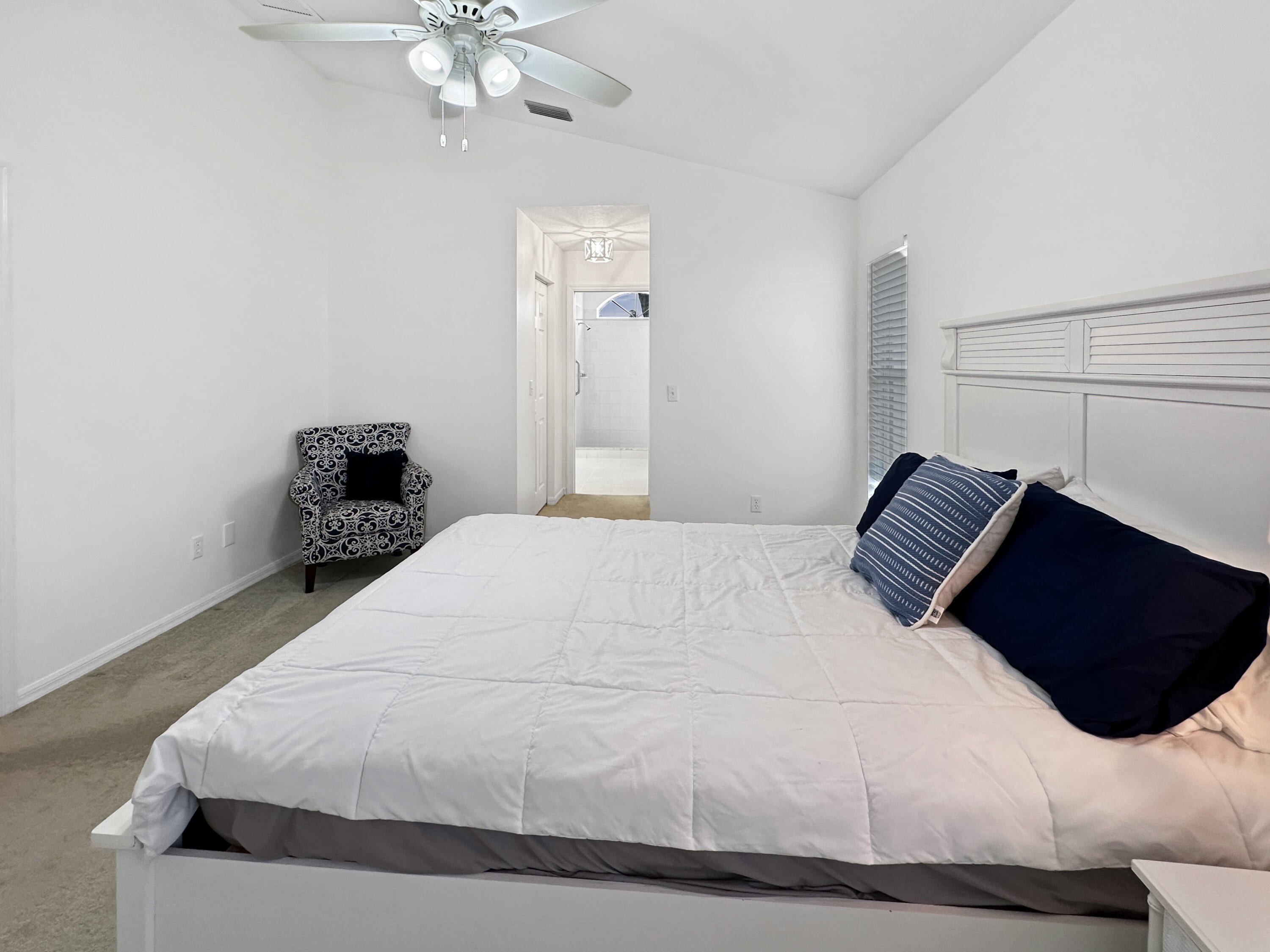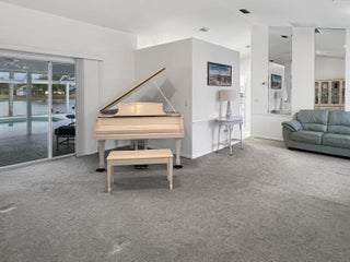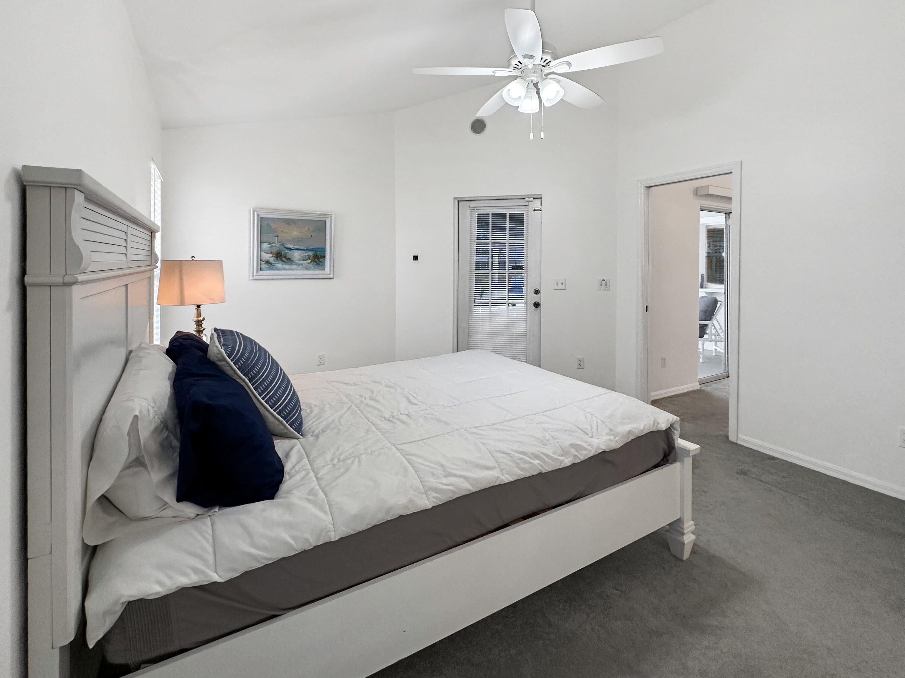 Step into your own slice of paradise with this exquisite 3-bedroom, 2-bathroom single-family home nestled in the desirable Holiday Pines neighborhood. Boasting a solid 1996 construction with serene lake views, this gem features a welcoming formal living and dining area perfect for entertaining.The heart of the home shines with a bright kitchen, complete with Quartz countertops, ample pantry space, a convenient snack bar, and an adjacent breakfast/family dining area that invites warmth and conversation. The thoughtful split bedroom plan ensures privacy, with a large master retreat, with private pool access, offers his/her walk-in closets and a spacious en suite bath with double sink granite vanity and a spacious walk-in shower.Two additional guest bedrooms come equipped with well-lit,roomy closets. A practical laundry room provides additional storage options, and a 2-car garage is climate-controlled for comfort. Step outside to the large, covered porch and discover the ultimate relaxation spot, featuring a screened pool with breathtaking, unobstructed views of the lake thanks to a panoramic screen wall. Recent updates include a new roof in 2025, an air conditioner in 2022, and a hot water heater in 2024. Located conveniently close to shopping, dining, schools, parks, golf, and beaches. Plus, with major roadways nearby, an expanding international airport just miles away, and the future Buc-ee's, everything you need is within reach in this idyllic community. Don't miss the chance to make this dream home yours!