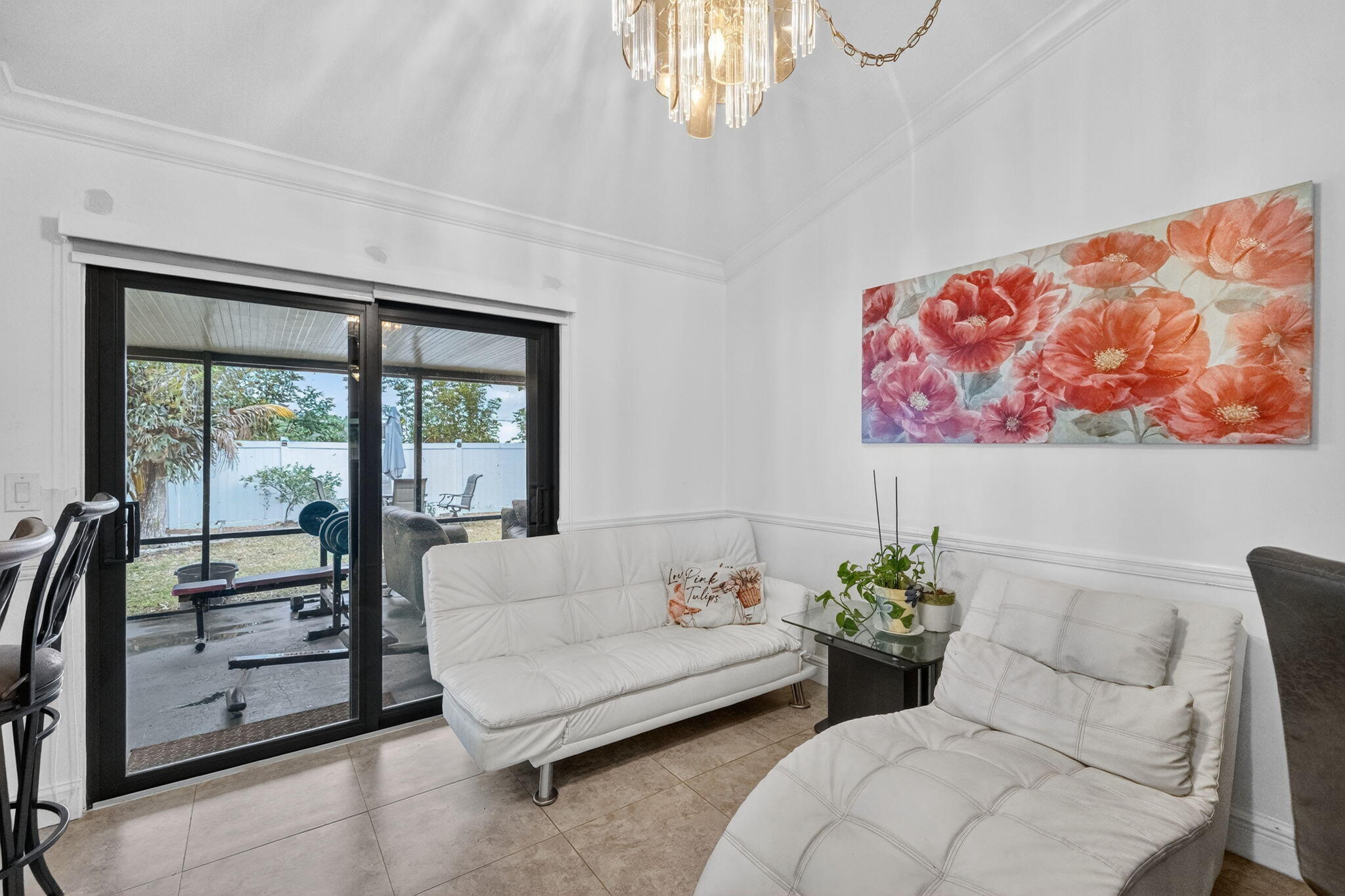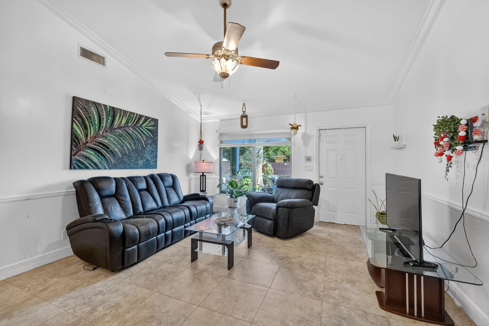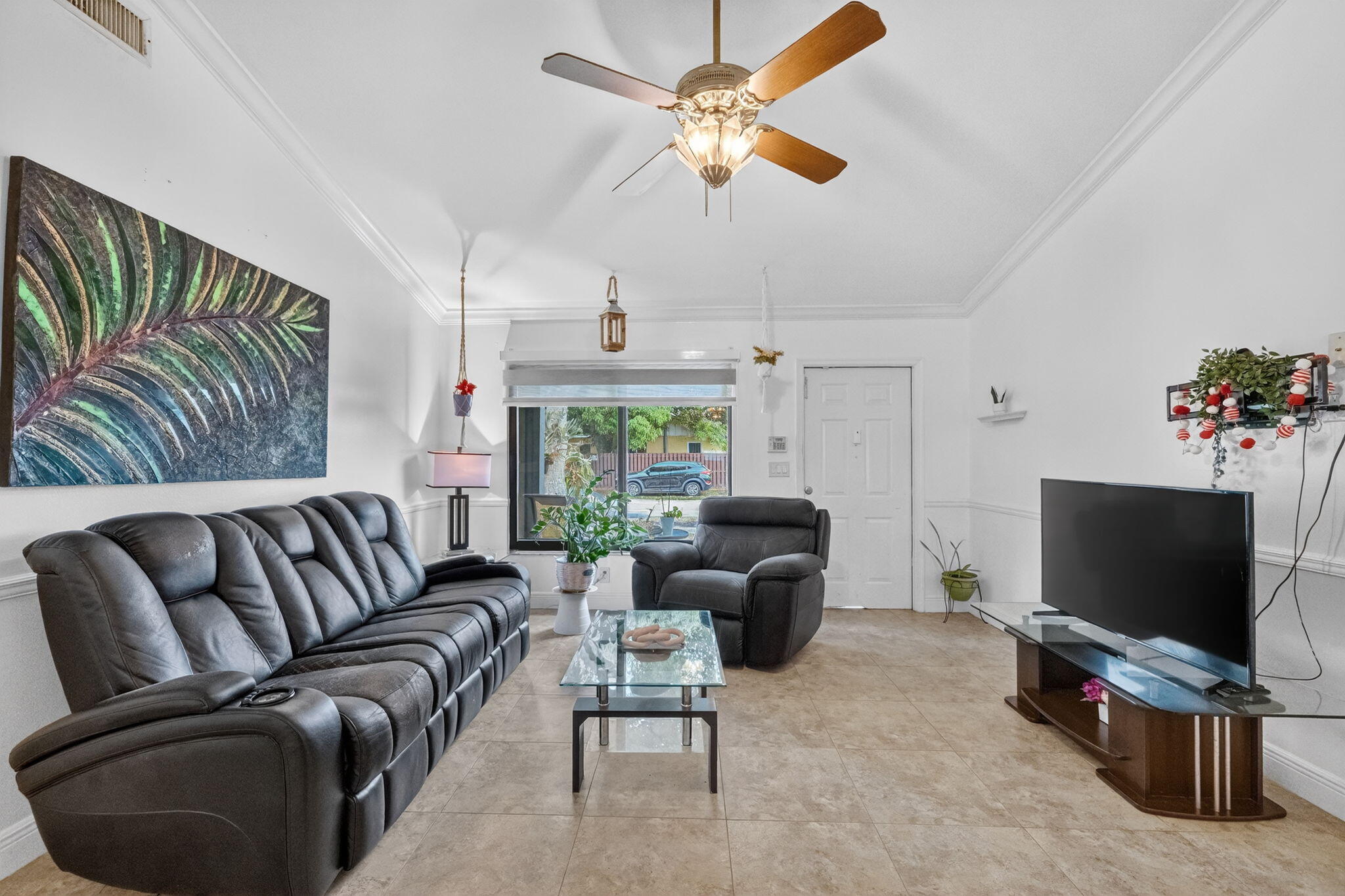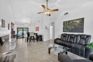This well-maintained 3-bedroom, 2-bath residence offers a functional layout with an open kitchen design and tile flooring throughout the main living areas. The converted garage provides flexible space suitable for a variety of uses. Can be converted back to garage easily. The primary bedroom features an upgraded bathroom, while hurricane impact windows add peace of mind. Solar panels contribute to energy efficiency and long-term savings. Conveniently located near major roadways, shopping, dining, and local amenities.