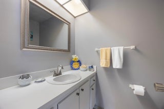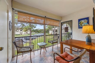 Beautiful and updated 2nd floor 2 bedroom 1 1/2 bath condo. Pretty laminate floors throughout with tile in the kitchen and baths. Nice open floor plan. New counters and backsplash in the kitchen. Fully updated primary bathroom with new vanity, tub and shower enclosure. Impact windows. Popcorn ceiling has been removed. Laundry room with full-size washer and dryer. Storage closet on the porch. Very nicely decorated, super clean, sold furnished and move-in ready. New roof 2025. Located in La Pinata, a 55+ community with clubhouse, pool, bocce, shuffleboard and a scenic walk-in path around a pretty lake. Cable and internet included in the low HOA fees.