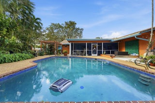 A MUST see, in the highly sought after community of ROYAL PALM ESTATES. Many extras-Beautiful pool, expansive private lot,4 bedrooms,2 baths, a split bedroom floor plan, 2 car garage,& NO HOA! This home offers exceptional choices for entertainment from spacious Pool, boys/girls bathrooms, exceptional Lani (set on unique raised stones) perfect for parties. Begin at out door grill....sit and sip at your fire pit, ending the evening excitement.Also to admire is the tropical landscaping, orchard house with sprinklers.Extras: Storage shed, Gravel pad for RV/Boat up to 30' & well water sprinklers. Impact windows on front/primary suite as well as the garage doors.