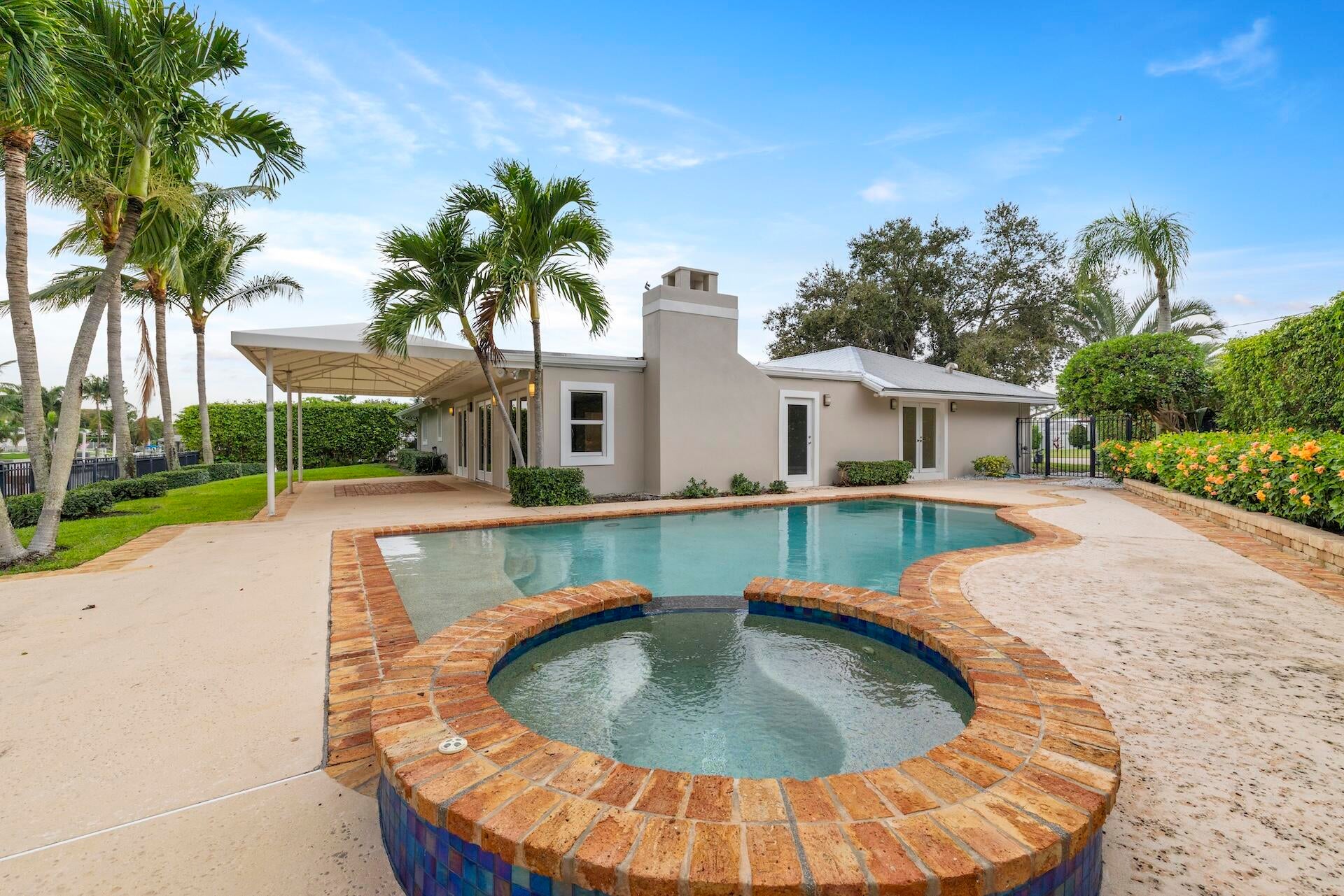 This is the Lake Clarke Shores waterfront home you have been looking for! This previously redesigned 3bed/3 bath home features an open concept plan has a wide-open kitchen with high-end appliances, including a gas range. Imagine entertaining in the expansive dining/living room area with the fireplace on and opening the French doors to the large pool and patio terrace, overlooking the waterfront. This home has a metal roof, impact windows and doors, fully fenced yard and a full house generator. The tiled garage has a new mini split AC unit so it is ready for your workspace or home gym. Now let's talk water...the 8000 lb lift is ready for your boat for easy access to exploring the canals and lakes attached to Lake Clarke Shores. Even more... No HOA. Come live the Florida lifestyle!