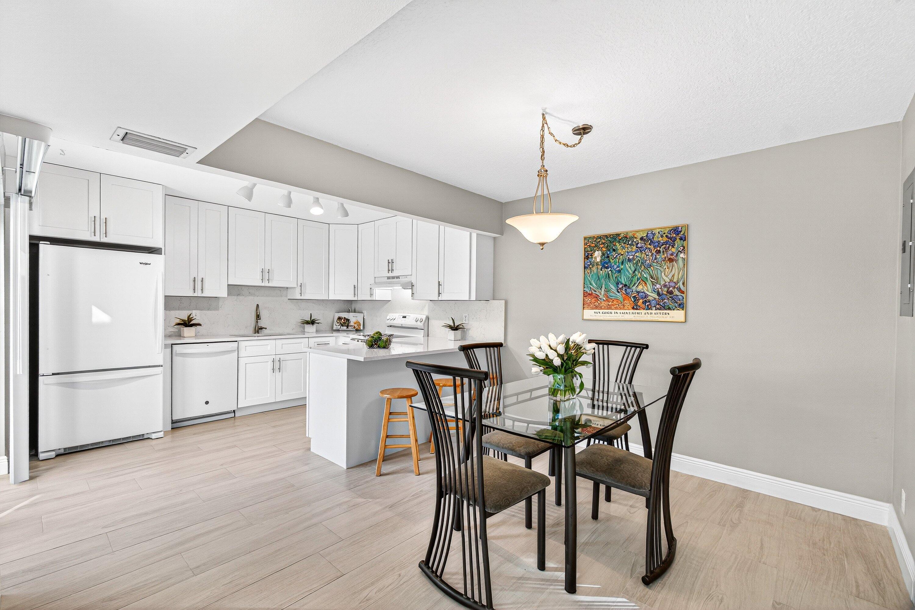 THIS VERY BRIGHT & IMMACULATE 2 BED/ 2.5 BATH TOWNHOME HAS BEEN NICELY UPDATED, HAS A HUGE COURTYARD PATIO & IS STEPS TO THE CLUBHOUSE! THE KITCHEN HAS AN OPEN CONCEPT FEELING & HAS BEEN UPDATED w/ WHITE SHAKER WOOD CABINETS & QUARTZ COUNTERTOPS (room for 3 barstools). HURRICANE IMPACT WINDOWS & DOORS! NEW GORGEOUS PORCELAIN FLOORING DOWNSTAIRS & WOOD LAMINATE UPSTAIRS. NEW A/C 2023, W/H 2023 & THE ROOF IS 2019. UPSTAIRS YOU WILL FIND TWO VERY LARGE PRIMARY BEDROOMS w/ ONE OF THE PRIMARY BATHROOMS BEING COMPLETELY REMODELED! RAINBERRY BAY IS A GATED COMMUNITY w/ TONS OF AMENITIES INCLUDING 5 RESORT POOLS, FITNESS CENTER, BILLIARDS, CARD TABLES & CLUBS TO JOIN, ART STUDIO, YOGA, BOCCE & A SEPARATE SHOW HALL FOR ENTERTAINMENT! THERE IS A TENNIS & PICKLEBALL CENTER w/ 8 PICKLEBALL COURTS!