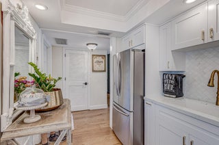 This stunning, fully renovated 1st flr corner condo offers the perfect blend of modern design & everyday functionality. Elegant hickory hardwood flooring runs throughout,& filled with high-end upgrades. Kitchen is a true showpiece featuring quartzite countertops, soft-close cabinetry w/gold-tone hardware, new range hood, stainless steel appliances, & redesigned overhead LED lighting. Bathrooms have been beautifully remodeled, & all trim & molding are updated to create a fresh, polished finish. Add'l features include a newly screened patio, modular custom-organized closets, & hurricane impact windows & doors, inc a 2023 impact-rated kitchen door. Water heater replaced in 2022 & the A/C 2016. The maint fee inc internet & basic cable. Don't miss this exceptional opportunity!