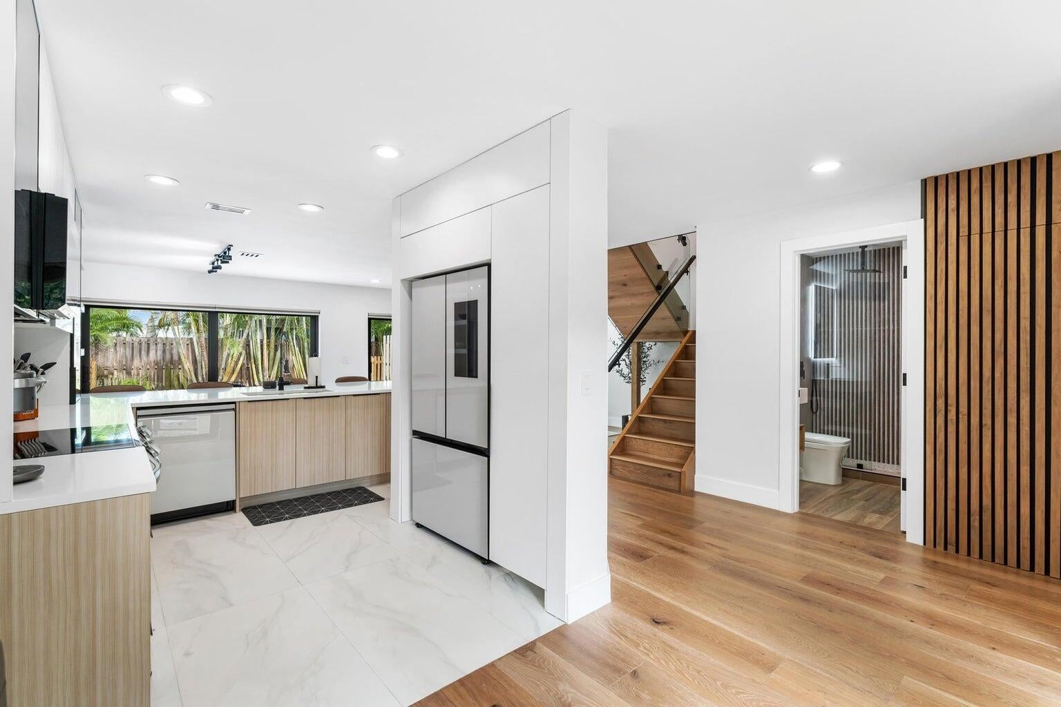 Don't miss this rare opportunity to own a stunningly updated 3-bedroom, 3-bathroom townhome located directly across from the beach and just steps to the vibrant dining and shopping scene of Palmetto Park Road! This light and bright home offers an open floor plan with one bedroom conveniently located downstairs, and the spacious master suite plus third bedroom upstairs. Enjoy peaceful treetop views from your large private balcony, perfect for morning coffee or evening relaxation.Fully renovated throughout, this home features impact windows and doors, a brand-new kitchen with modern finishes, new wood flooring, and a recently installed AC system for peace of mind and comfort. Step outside to your own private, fenced-in backyard complete with a barbecue area, ideal for entertaining.