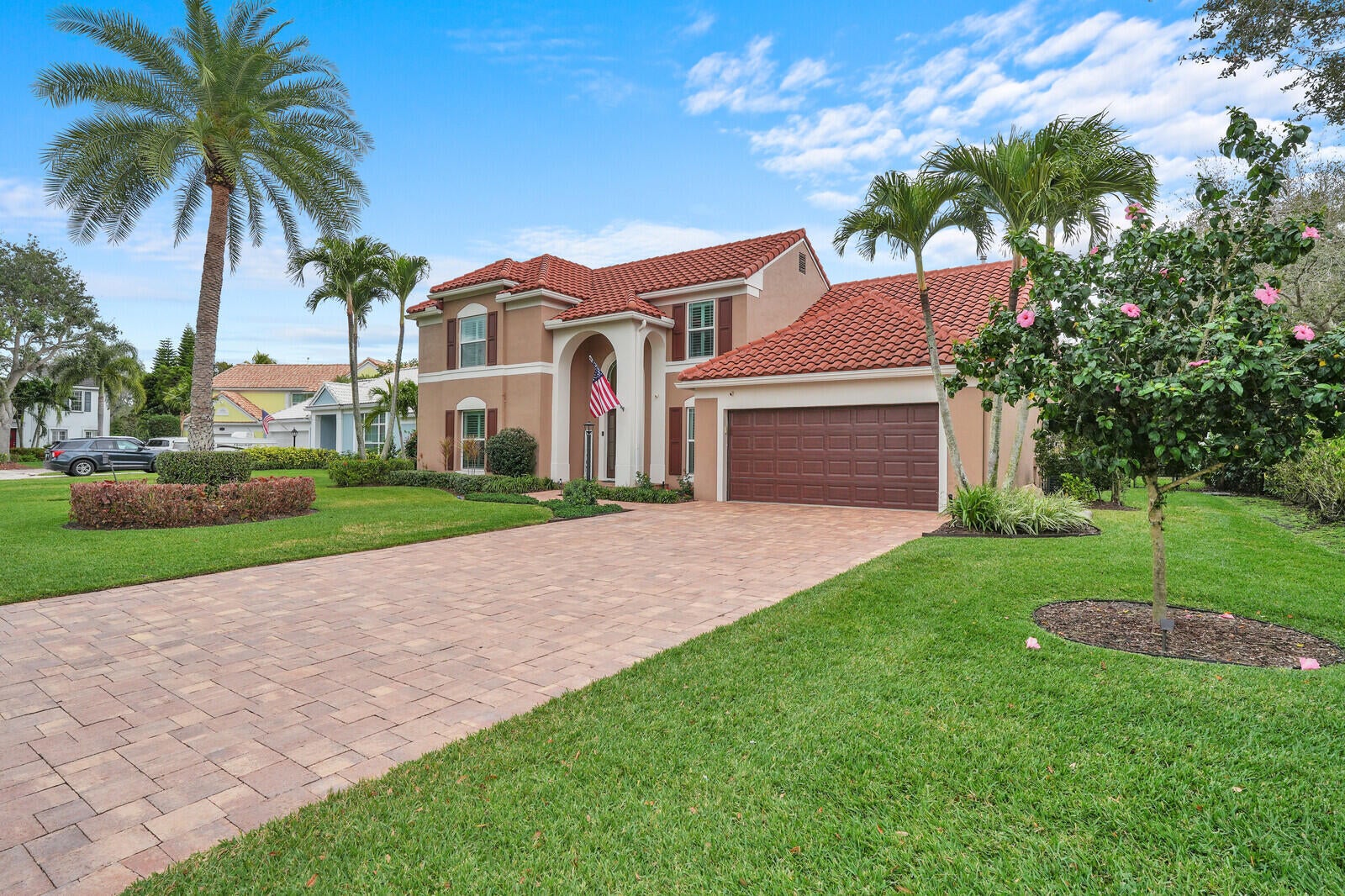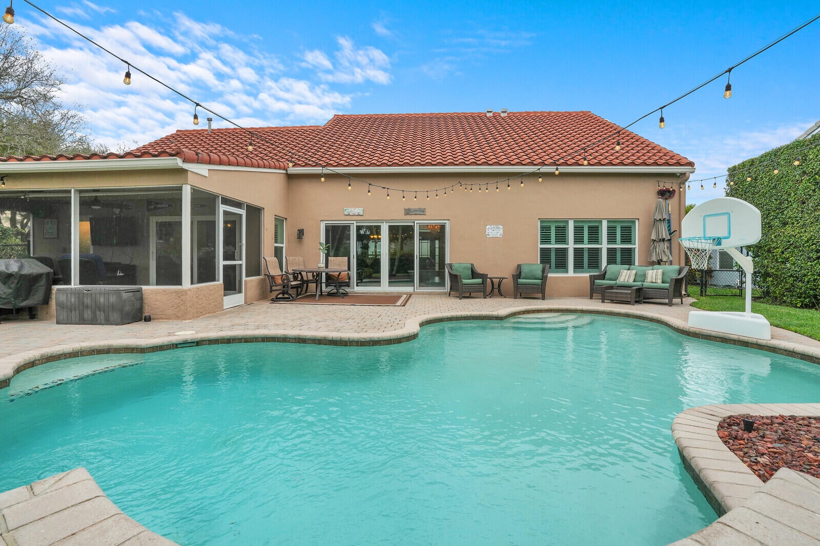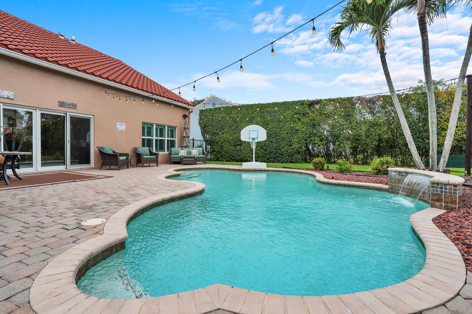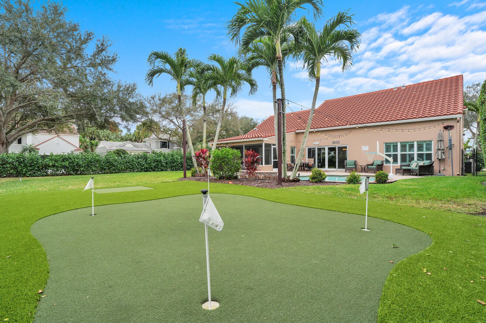 One of Palm Beach Gardens' best kept secrets, The Hunt Club. A community where neighbors connect and a true sense of community is felt. A beautiful gated community in the heart of town. This well-maintained home sits on a premium ⅓-acre corner lot at the end of a cul-de-sac, offering exceptional privacy and lush landscaping. The backyard is a true retreat with a resort-style pool featuring the relaxing sound of a waterfall, pool heater, landscape lighting, screened patio, putting green, and fenced yard, perfect for relaxing or entertaining.Inside, the home features PGT impact windows, high ceilings, plantation shutters, custom built-ins, and automated blinds at the rear slider. The open kitchen offers a gas stove and custom cabinetry, ready to be designed into your dream space.The primary suite is conveniently located on the first floor, along with full cabana bath ideal for guests or easy pool access, plus a flexible office or playroom. Upstairs offers three additional bedrooms and a spacious bonus room ideal for an office or playroom. Additional upgrades include a 2019 roof, paver driveway, and beautifully maintained clusia hedge. This home blends comfort, privacy, and location, an exceptional opportunity in Palm Beach Gardens.