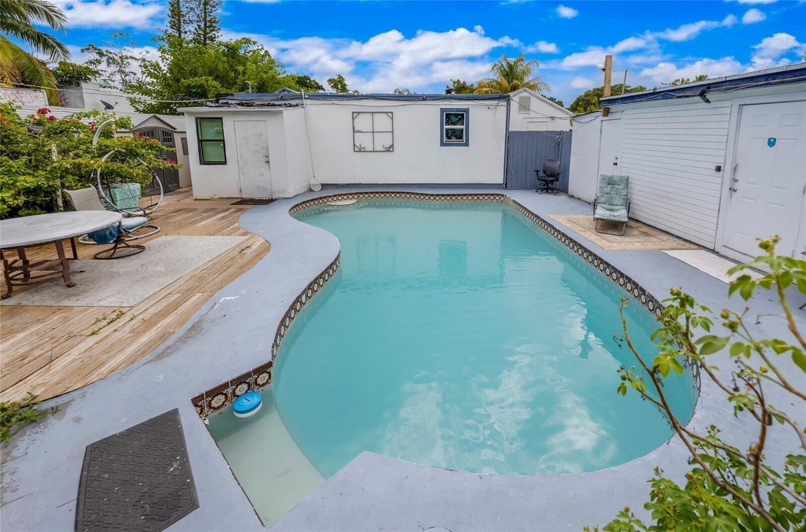 Triplex in Prime Dania Beach Location, just west of US-1 and minutes from the beach, shopping, and dining. This income-producing triplex offers a flexible layout consisting of a 3-bedroom, 2-bath unit, a 2-bedroom, 1-bath unit, and a separate efficiency. Currently leased by the room and generating approximately $8,000/month.While the property needs some TLC, it has a recent metal roof (2024) and boasts a beautiful pool making it ideal for short-term rentals.