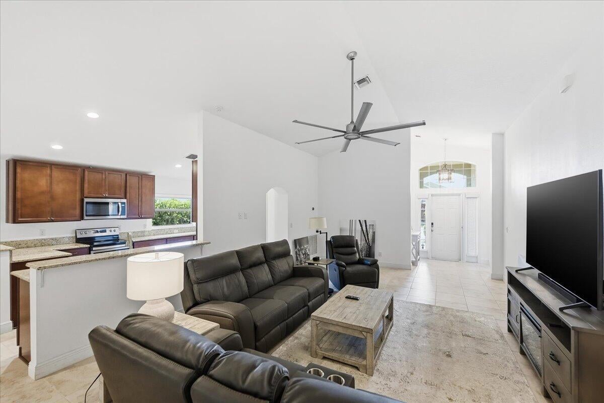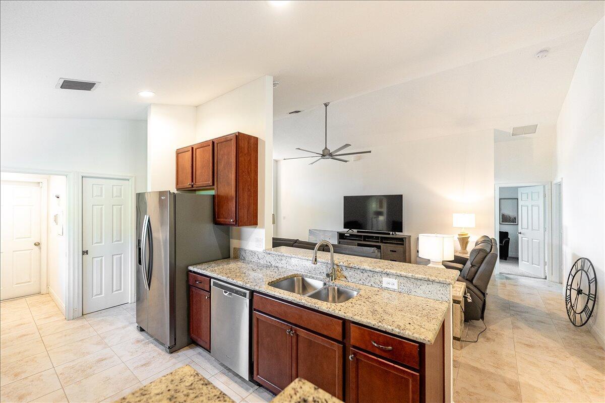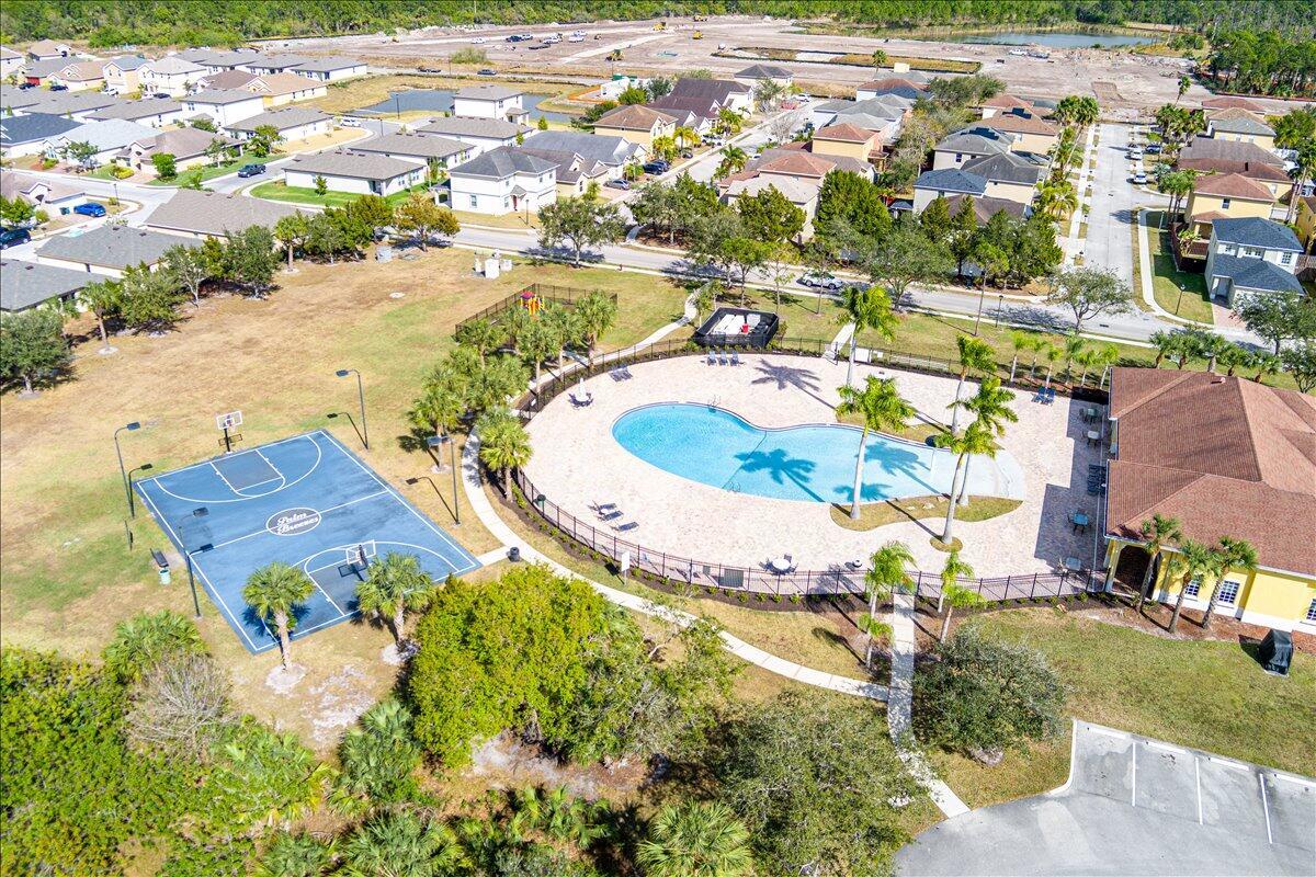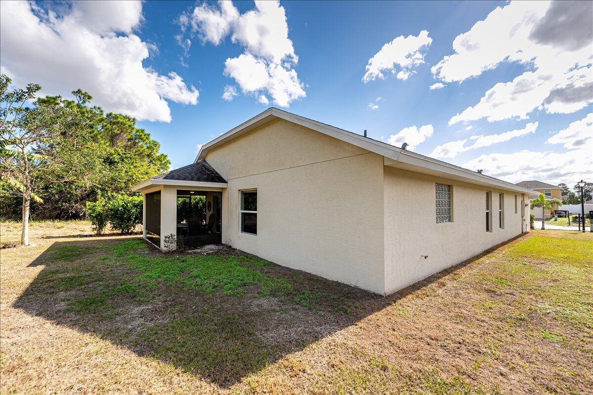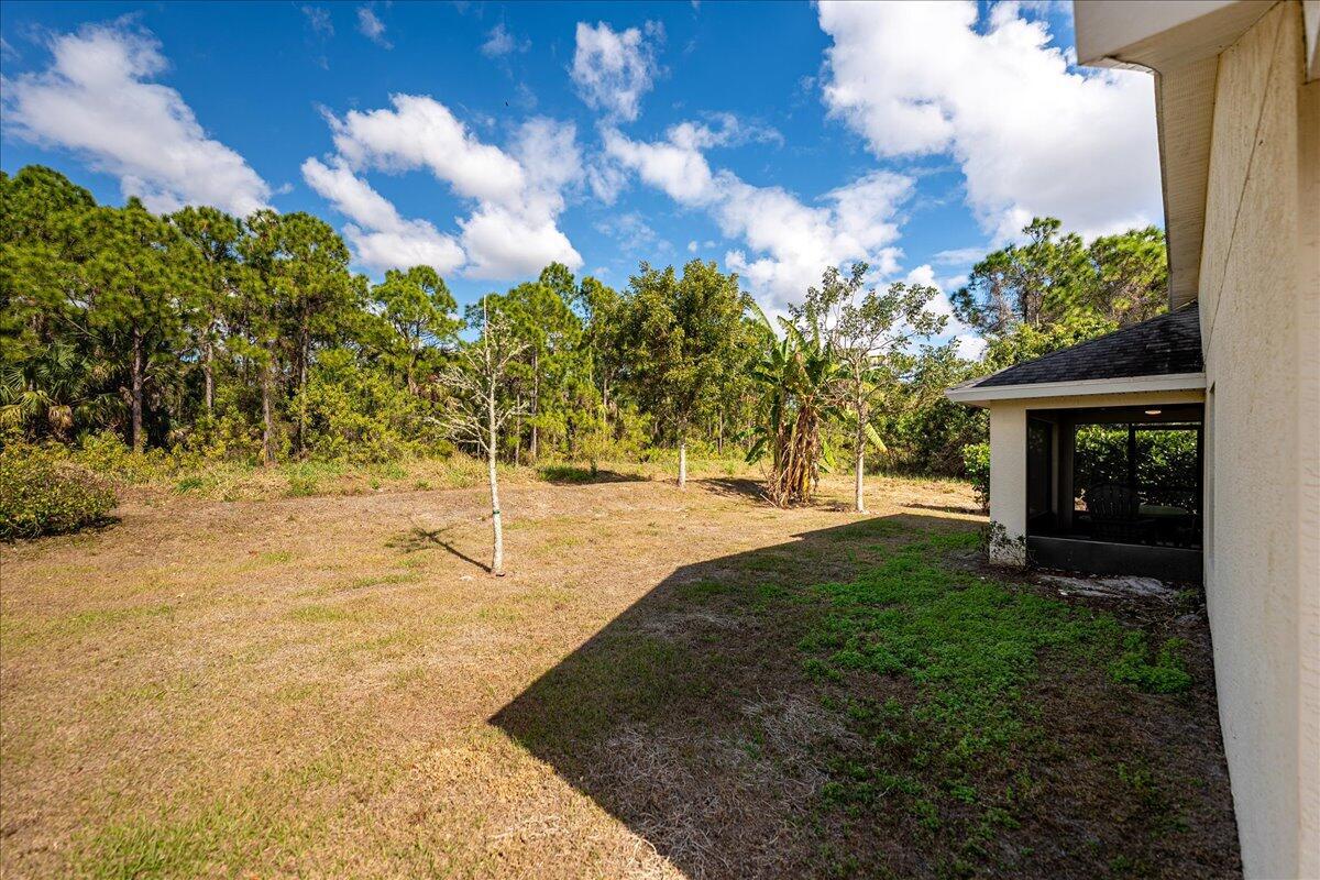 Location truly is everything with this impeccably maintained 4-bedroom, 2-bath home built in 2019, ideally situated on a premium corner lot backing to a serene preserve--offering exceptional privacy with no neighboring home to the right. Freshly painted and move-in ready, the home features tile flooring throughout the main living areas, vaulted ceilings, and a bright, open floor plan. The upgraded kitchen showcases enhanced cabinetry, granite countertops, and stainless-steel appliances, seamlessly opening to the living and dining areas. Remote-controlled blinds add both convenience and style in the living and dining spaces leading to the lanai. The spacious primary suite is a true retreat, featuring remote-controlled blinds and a luxurious en-suite bath with a soaking tub and separate ..shower. Barn doors have been thoughtfully added to create additional privacy for the front two bedroomsideal for guests, children, or a home office setup. Enjoy outdoor living on the screened lanai, recently rescreened including the frame. Additional features include an ADT security system and automatic remote power locks. Located in a highly desirable, family-friendly community with a low HOA, residents enjoy a clubhouse, pool, playground, fitness center, and walking/jogging trails. Convenient to shopping, dining, and with easy access to I-95 and the Florida Turnpike, this home offers the perfect blend of privacy, upgrades, and location.