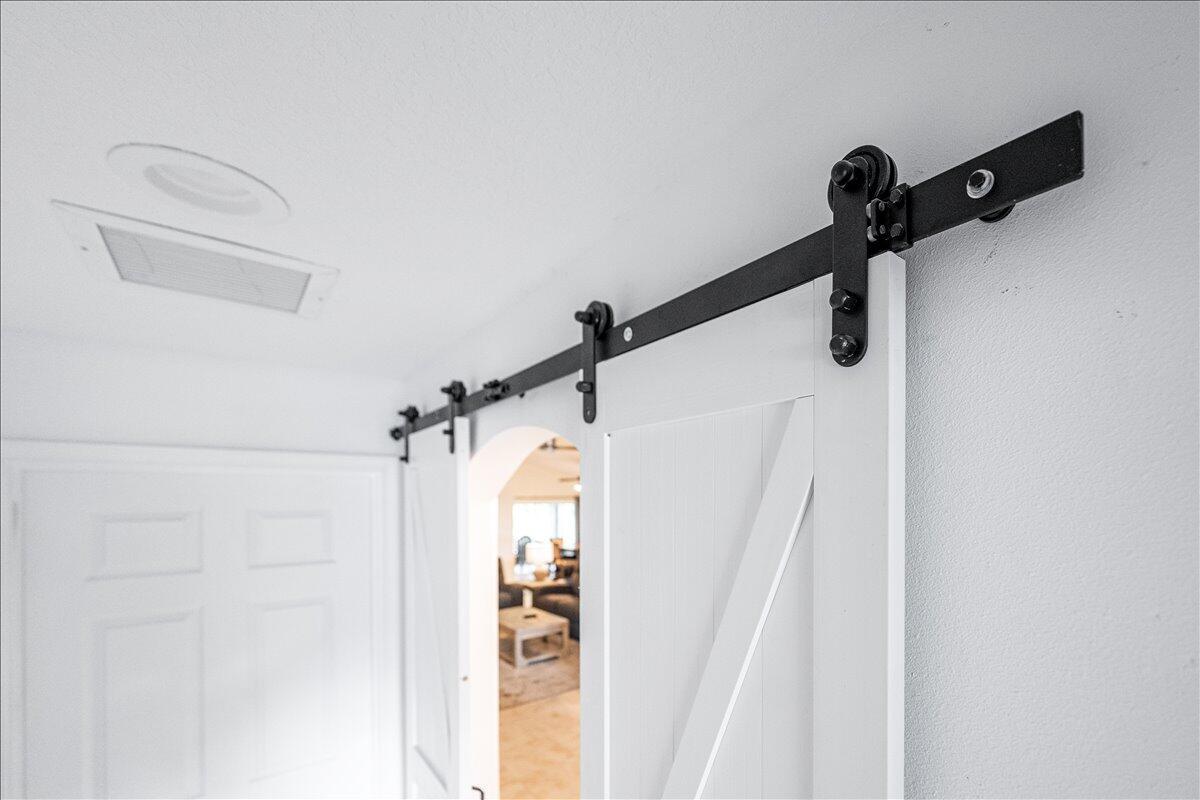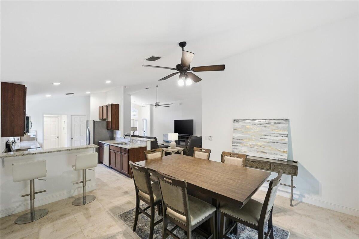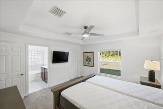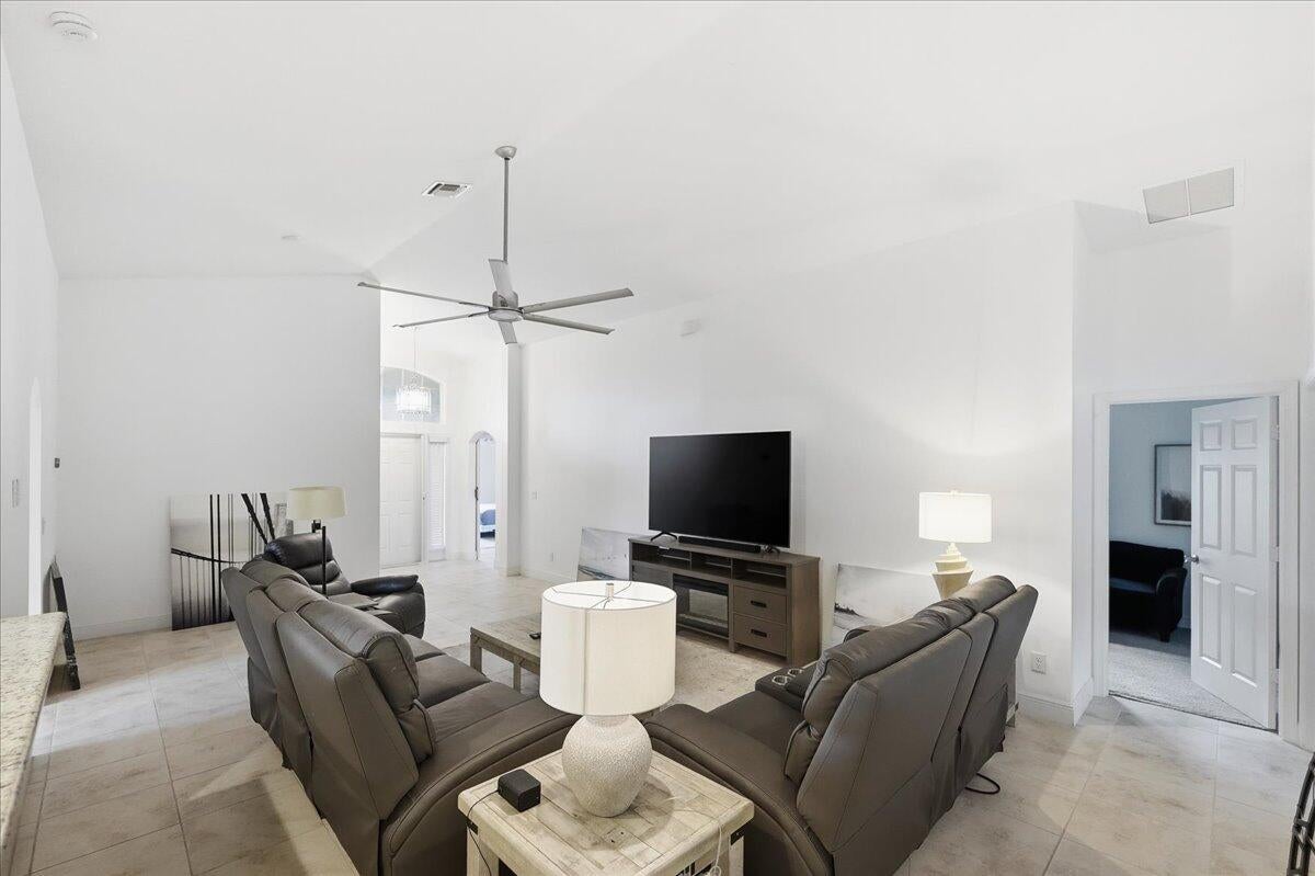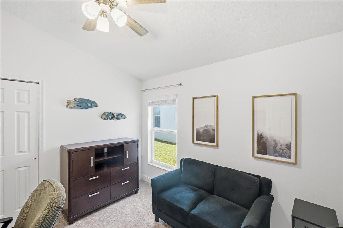Location truly is everything with this impeccably maintained 4-bedroom, 2-bath home built in 2019, ideally situated on a premium corner lot backing to a serene preserve--offering exceptional privacy with no neighboring home to the right. Freshly painted and move-in ready, the home features tile flooring throughout the main living areas, vaulted ceilings, and a bright, open floor plan. The upgraded kitchen showcases enhanced cabinetry, granite countertops, and stainless-steel appliances, seamlessly opening to the living and dining areas. Remote-controlled blinds add both convenience and style in the living and dining spaces leading to the lanai. The spacious primary suite is a true retreat, featuring remote-controlled blinds and a luxurious en-suite bath with a soaking tub and separate ..shower. Barn doors have been thoughtfully added to create additional privacy for the front two bedroomsideal for guests, children, or a home office setup. Enjoy outdoor living on the screened lanai, recently rescreened including the frame. Additional features include an ADT security system and automatic remote power locks. Located in a highly desirable, family-friendly community with a low HOA, residents enjoy a clubhouse, pool, playground, fitness center, and walking/jogging trails. Convenient to shopping, dining, and with easy access to I-95 and the Florida Turnpike, this home offers the perfect blend of privacy, upgrades, and location.