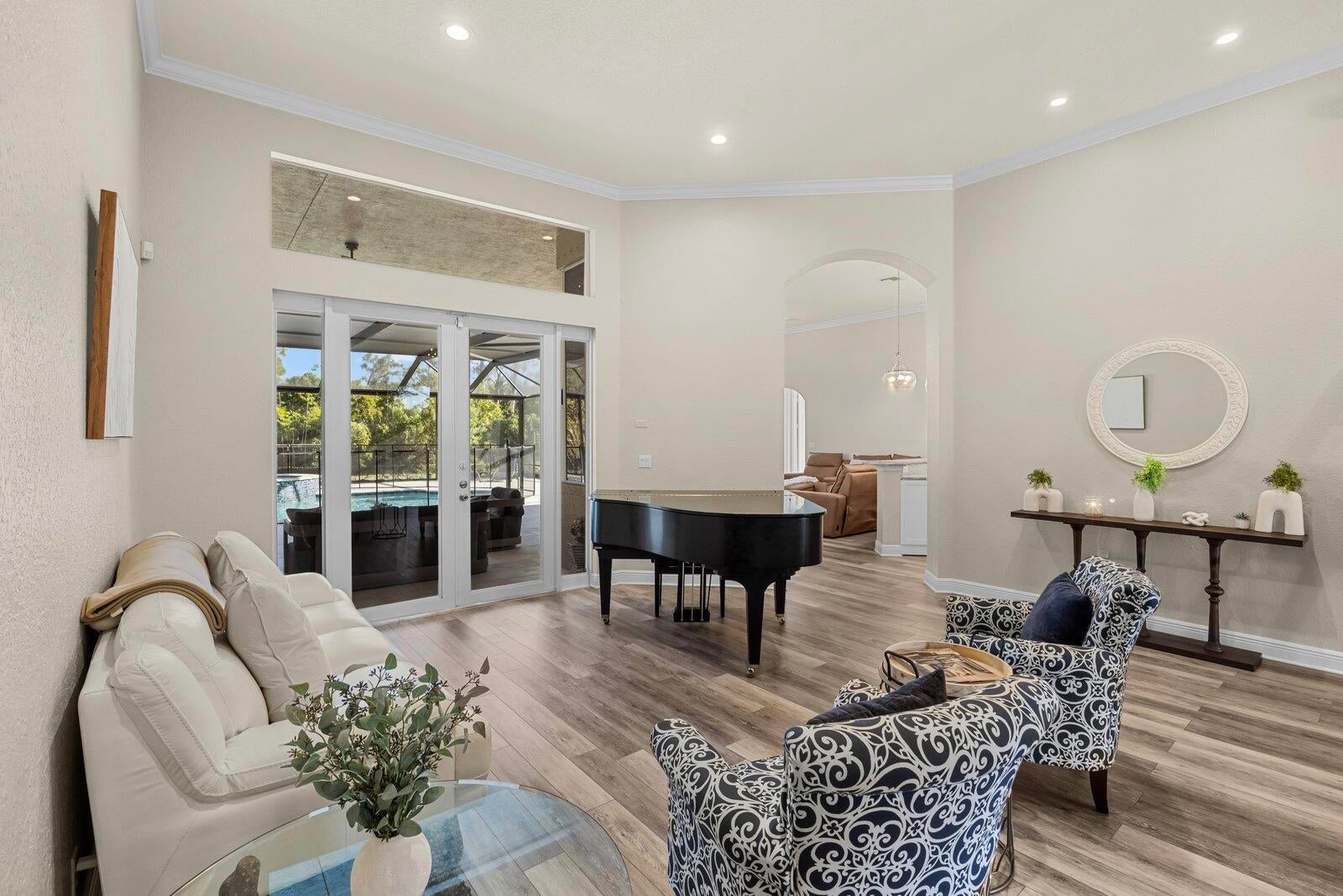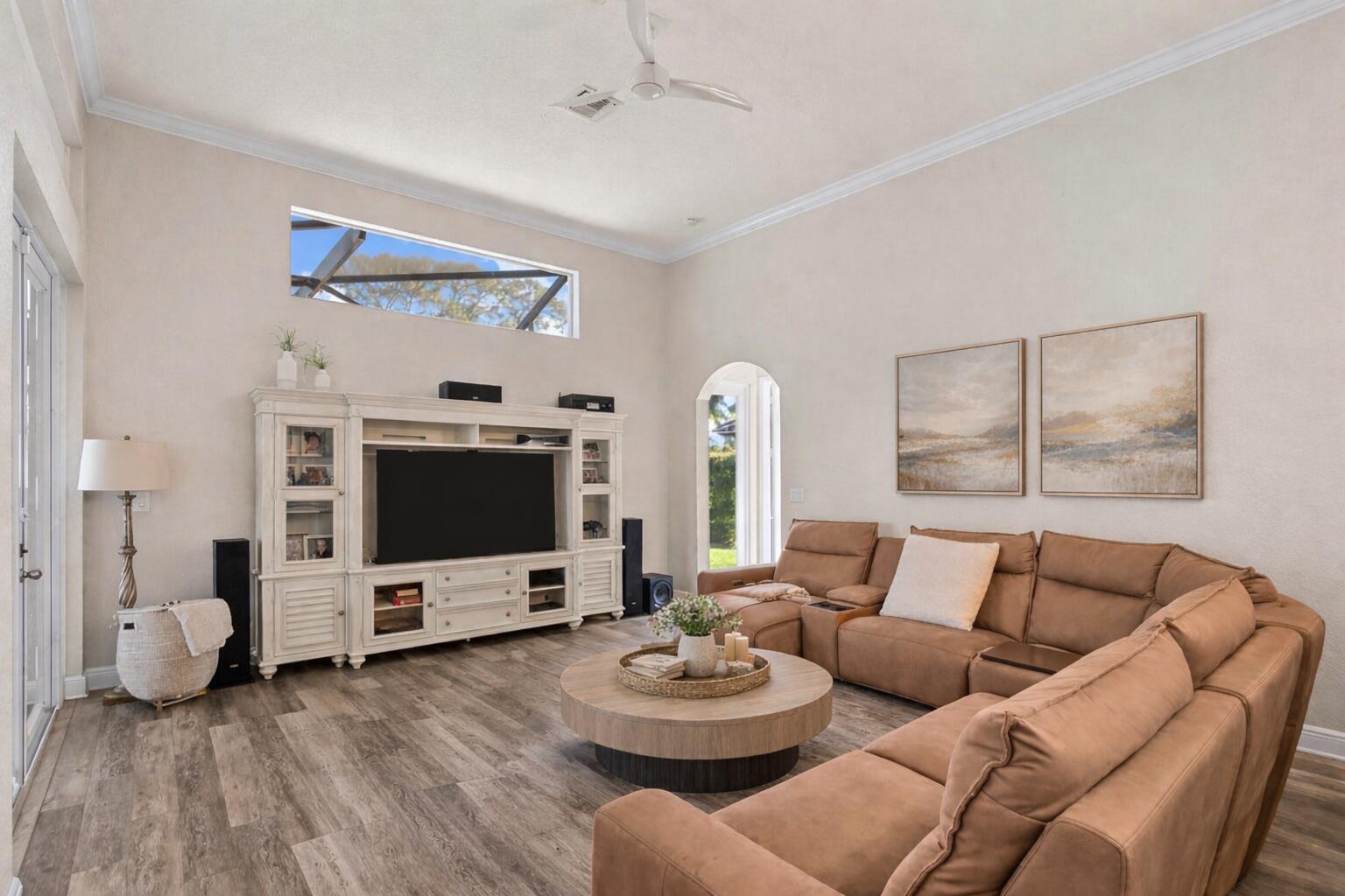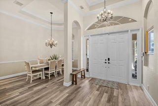 Experience luxury and privacy in this stunning home set on .67 acres of fully fenced land in front of a peaceful preserve. This expansive home with soaring high ceilings offers 4 spacious bedrooms, 3.1 bathrooms, plus versatile den. The modern, updated kitchen and flooring, built in surround sound, 2023 AC, and home security system make this home both stylish and functional, perfect for entertaining as well as everyday living. Step outside to your private oasis featuring a heated saltwater pool and jacuzzi, elegant travertine rile, and MegaView enclosure. The 3 car garage provides a Level 2 EV charger and ample storage for larger vehicles. The exclusive Cobblestone community offers luxury living, low HOA, 24/7 guard gated entrance, and optional golf membership at the Cape Club.
