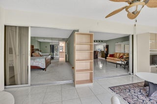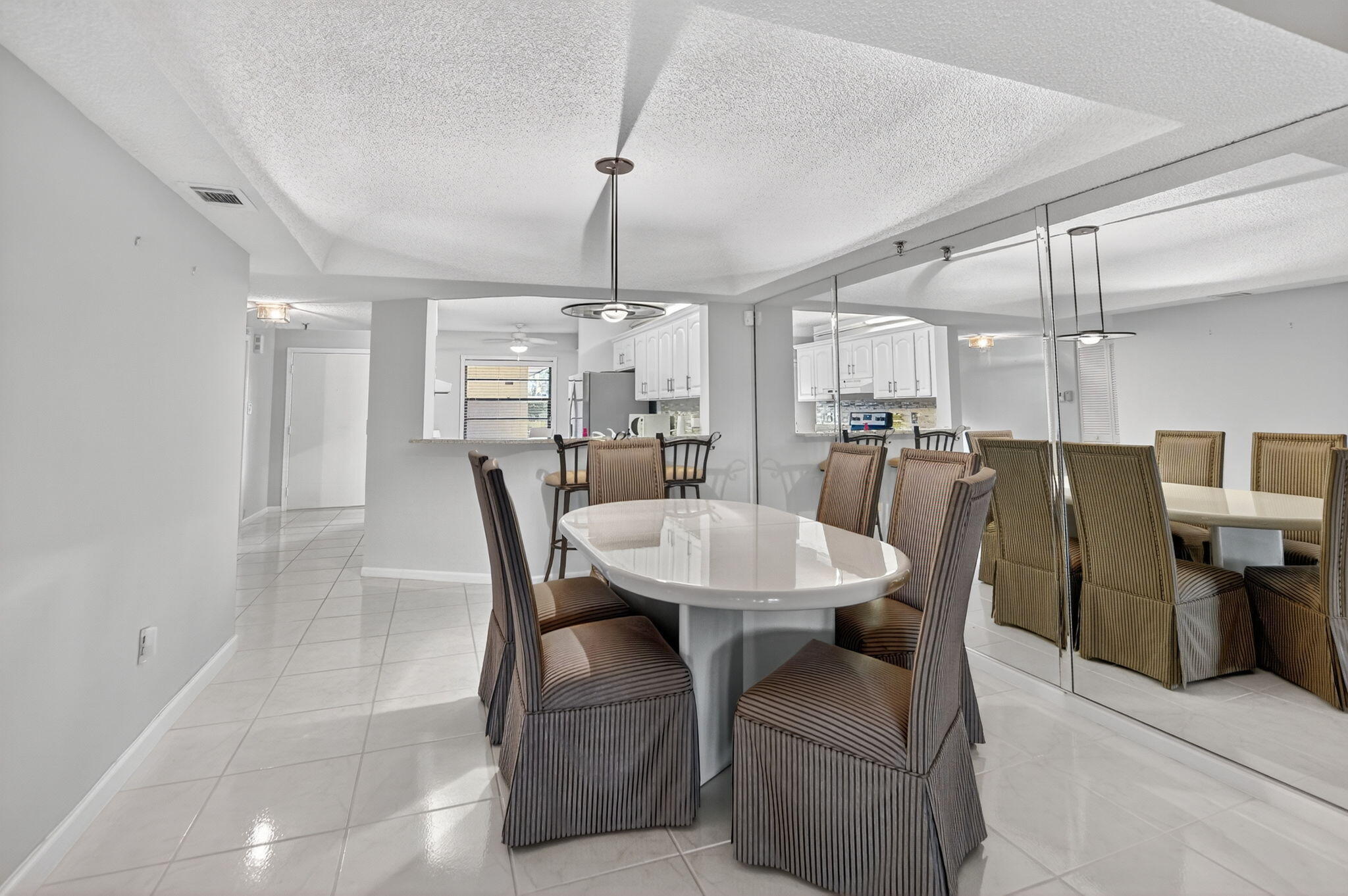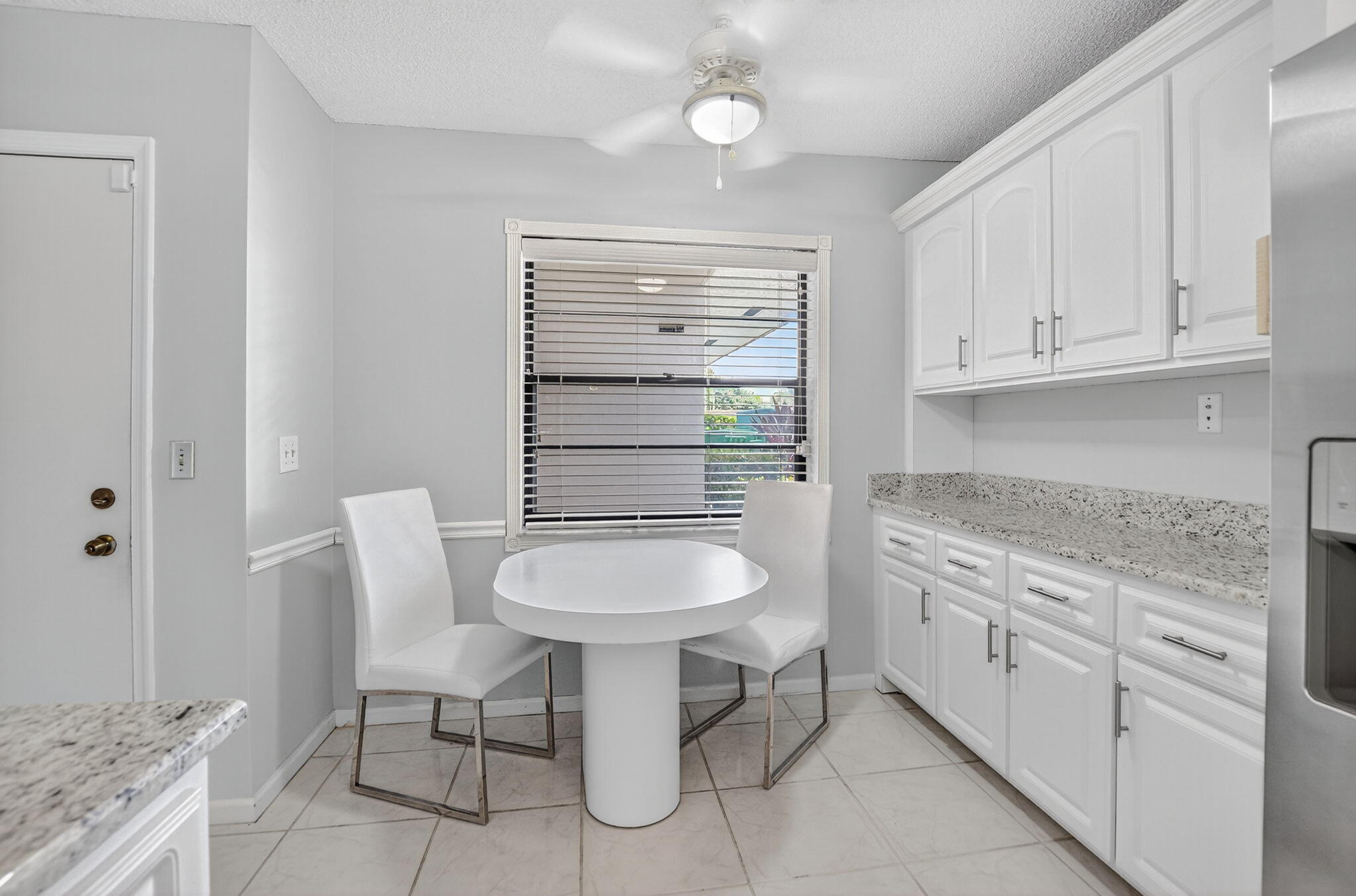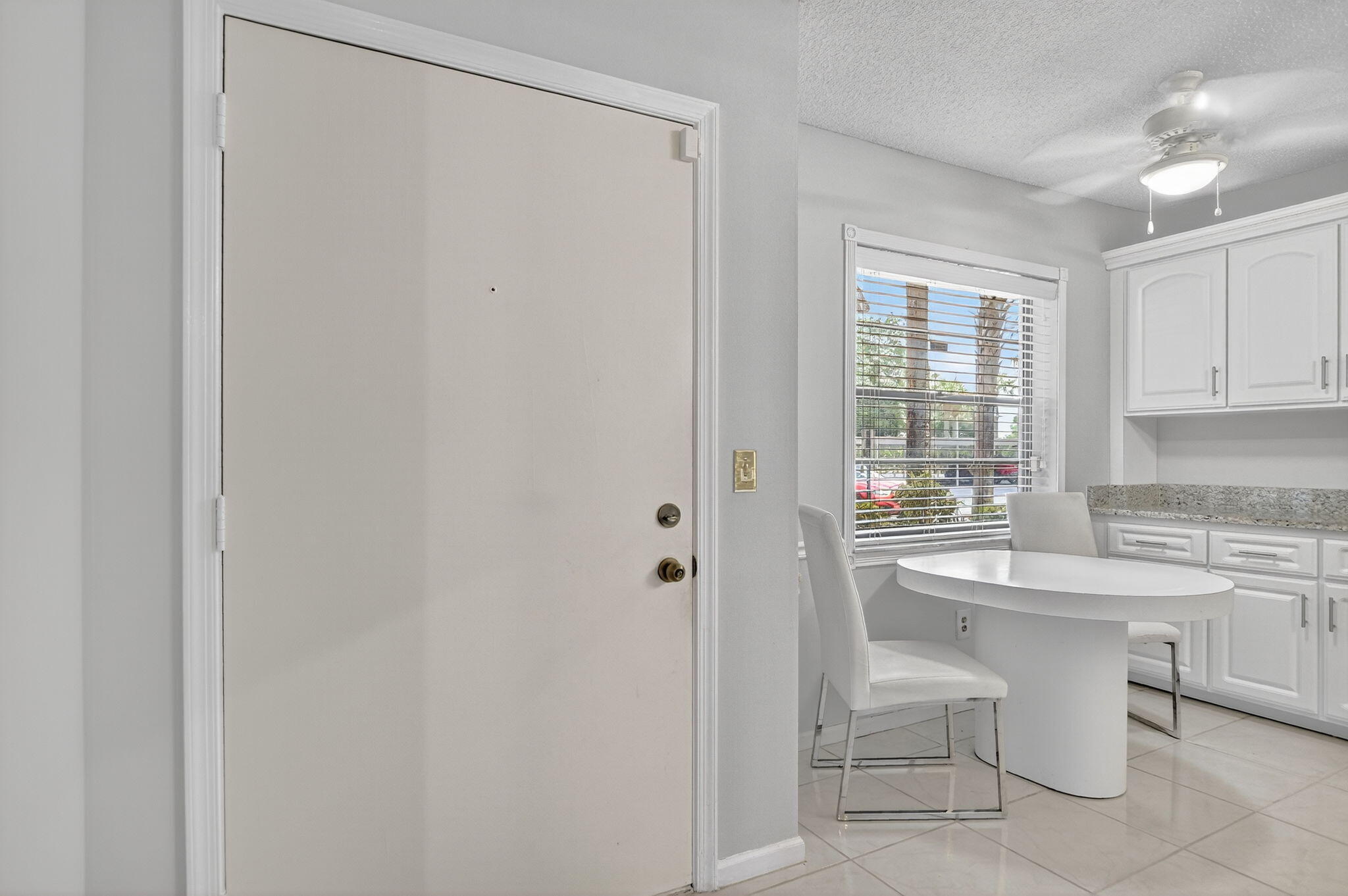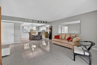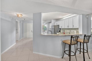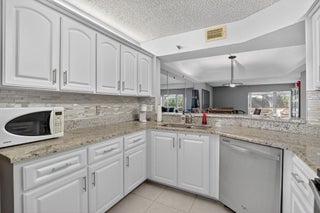 Enjoy easy first-floor access in this spacious 2BR/2BA condo featuring a large enclosed Florida room with expansive garden views. The updated kitchen offers granite countertops, white cabinetry, stainless steel appliances, and a convenient pass-through to the dining area. Bright, open floor plan with tile flooring in main areas and carpet/laminate in bedrooms. The generous primary suite includes excellent closet space and a bath with double sinks and a walk-in shower. The Patios offers 2 pools, spas, tennis, fitness room, game and billiard rooms. Community passed Milestone and SIRS studies with strong reserves and structural integrity. New hurricane-rated foam roofs add long-term value.