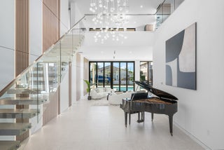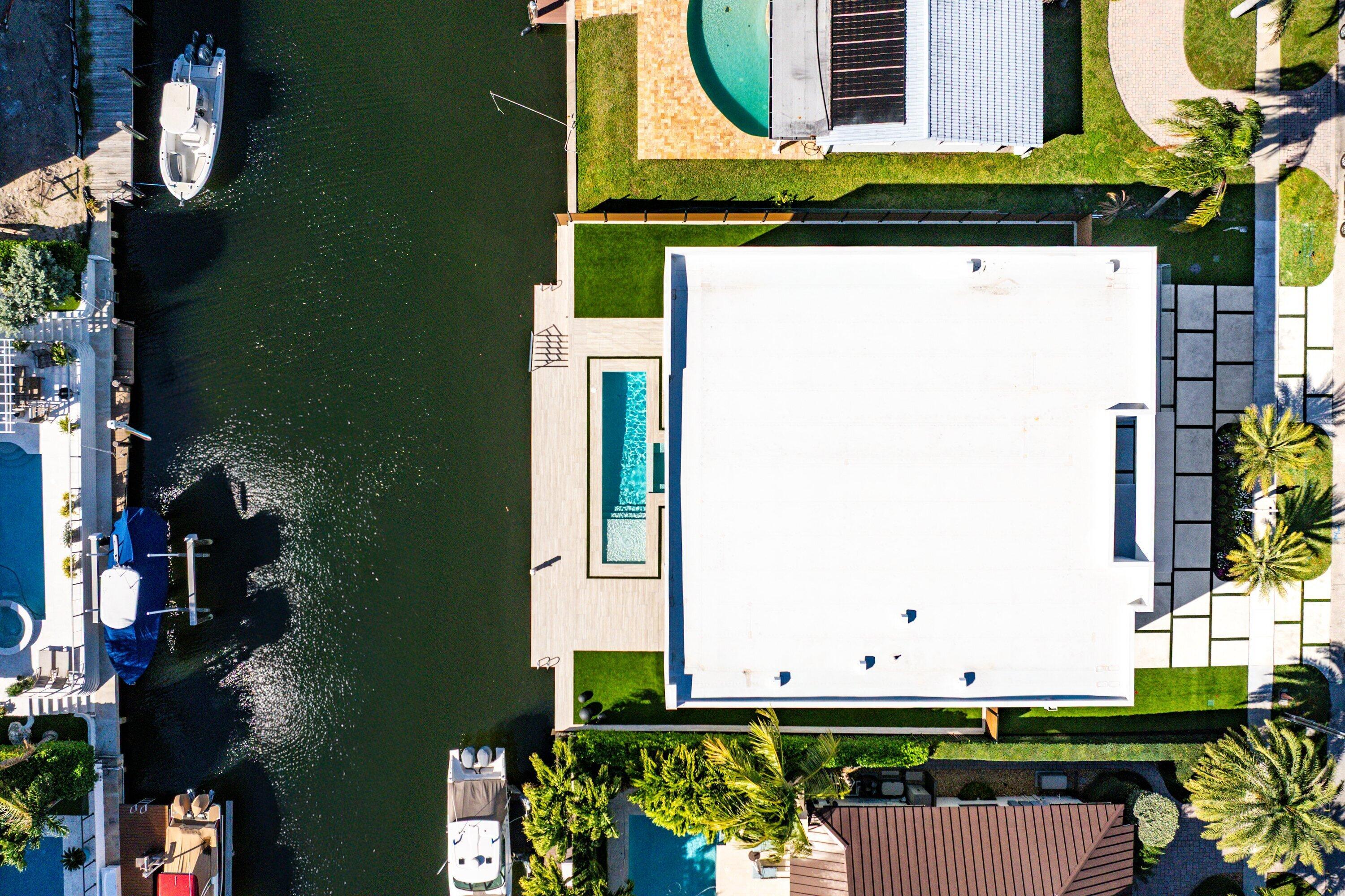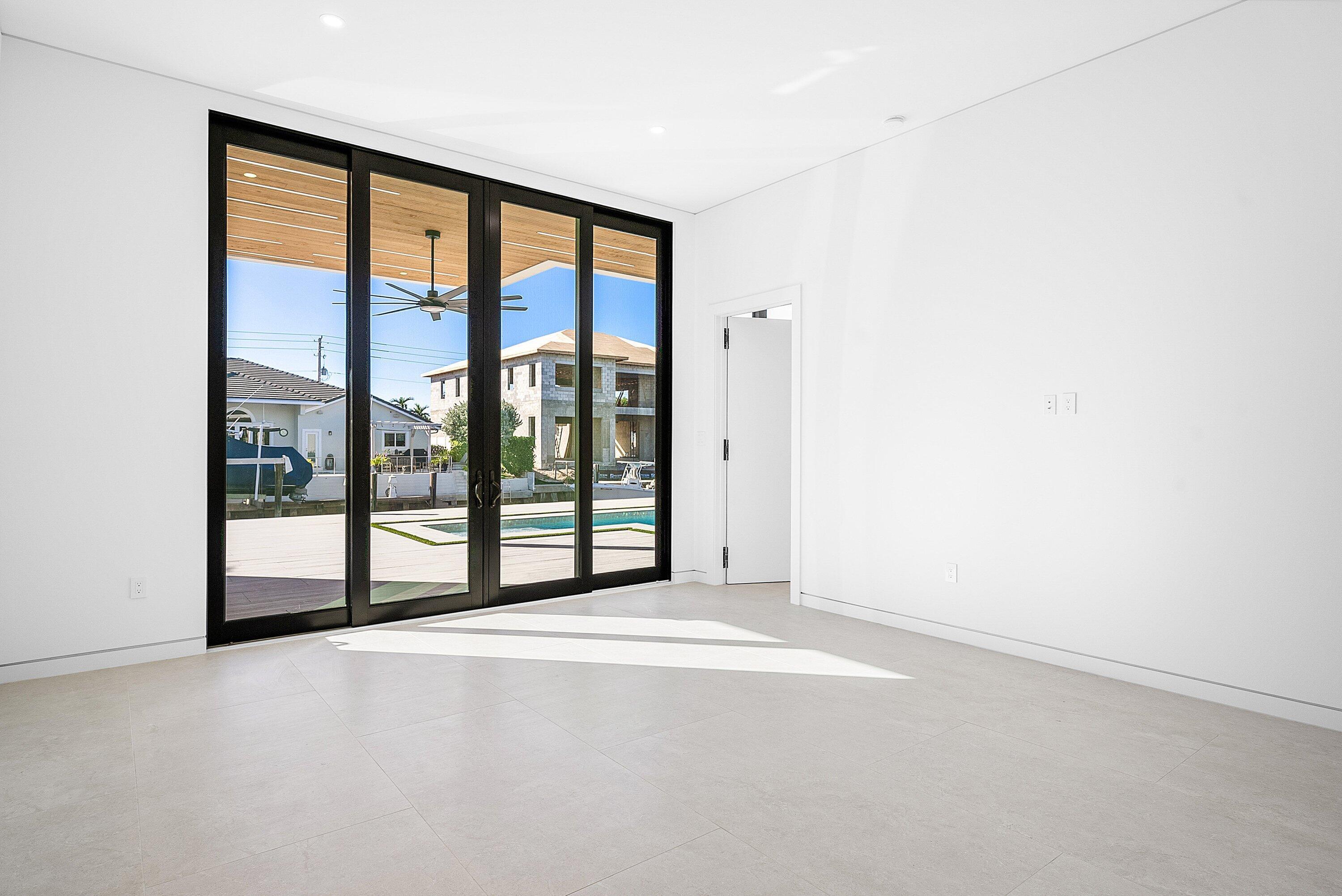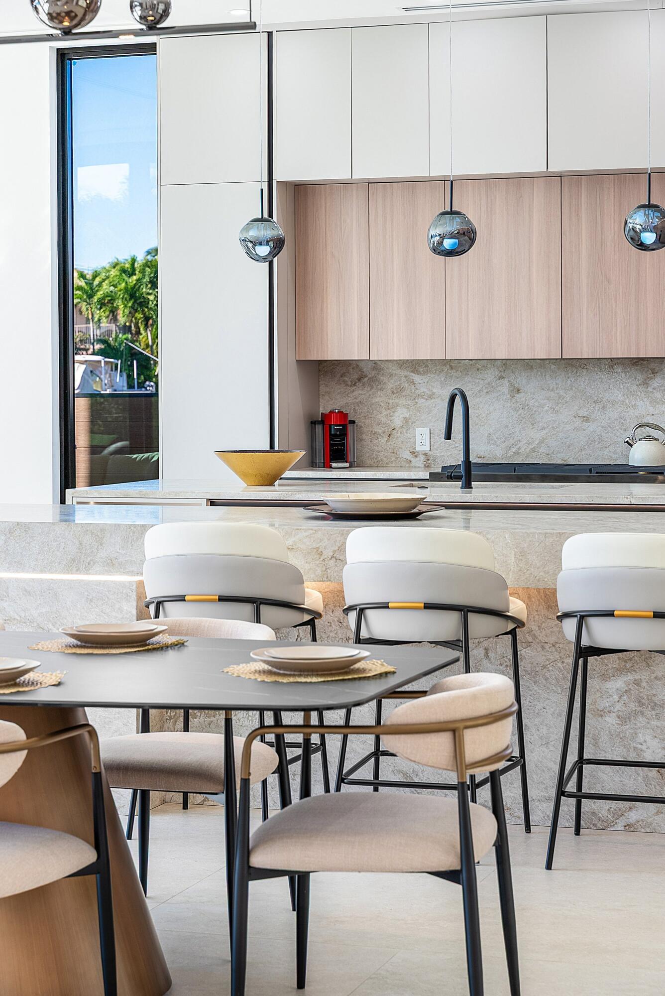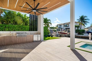 Now complete and move-in ready, 750 NE 69th Street is a striking modern waterfront residence located in Boca Harbor, Boca Raton's premier boating community, offering quick and direct access to the Boca Raton Inlet. This 5-bedroom, 5.5-bathroom estate features 85 feet of deep-water frontage, no fixed bridges, and coveted southern exposure, delivering an exceptional waterfront lifestyle. A dramatic floating staircase, accented by an artistic statement feature wall, creates an immediate architectural impact. Interiors are finished with wide-plank European oak flooring and enhanced by an extensive designer lighting package, including illuminated onyx countertops, LED strip lighting accenting ceiling details, and custom wall inlays that create a warm, architectural glow throughout the home.The modern European kitchen is designed for both form and function, featuring Thermador appliances, a built-in wine cooler, and an impressive double-island layoutperfectly complemented by the home's ambient lighting design. The first-floor clubroom/guest suite is thoughtfully designed with custom wood paneling and a concealed hidden door, offering a sophisticated and flexible space ideal for guests, a private lounge, or media room. The primary suite is a private retreat, highlighted by a spa-inspired wet-room shower, premium Hansgrohe fixtures, and expansive walk-in closets. All closets throughout the homeincluding the primaryhave been professionally built out, providing exceptional storage and organization. All additional bedrooms are ensuite, ensuring privacy and comfort for family and guests. Outdoors, enjoy true South Florida waterfront living with a heated pool and in-ground spa, enhanced by turf accents and luxury landscaping, all overlooking the serene waterway. A brand-new concrete dock with power and water completes the offeringideal for accommodating large vessels and embracing Boca Harbor's premier boating lifestyle. Just minutes from Boca Raton's beaches, dining, and premier amenities, this newly completed estate delivers modern design, superior craftsmanship, and an unmatched boating lifestyle.