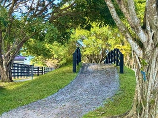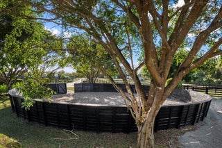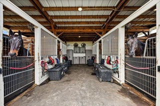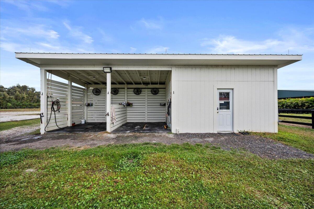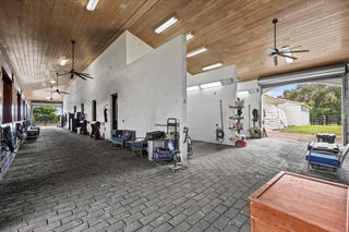 Enjoy the peaceful ambiance of this exceptional 20.72-acre professional Equine training facility with 4 barns totalling 41 stalls, 3 arenas (1 covered), 27 paddocks, a tree-shaded 6-horse Euro walker, Lunging ring, GGT exercise track, 3 apartments, and an owner's retreat, all nestled under the cool shade of mature, majestic Banyan and Royal Palm trees. Each of the 3 main show barns features a separate gated entry, fly spray systems, wash stalls, tack rooms, 1 staff apartment, barn bathrooms, feed rooms, privacy, functionality, and space for all equestrian disciplines. There are 37 main barn stalls, a 4-stall centre aisle pole barn with electricity, an attached tackroom, and two wash stalls. In addition, there are 8-in&out stalls with generously sized paddocks, stall doors and electricity.Your horses will enjoy top-quality care with an on-site Equine Treatment/Exam room, an Aqua Treadmill, and two large farrier bays with automatic retractable awnings. The covered arena features an Ebb & Flow watering system, mirrors, lights and GGT footing. The 2-outdoor arenas are also mirrored and in private proximity to one another. The 3-bedroom owner's apartment is located on the second floor over two oversized garages and offers beautiful views of the farm. Owners will also have peace of mind with an excellent source of income-producing dry stalls, an 80 KW Kohler diesel generator, 4 RV hookups, a full farm water filtration system and plenty of space for horse trailers.