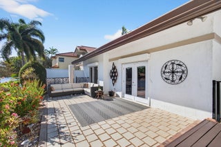 Welcome to 23145 Via Stel in the desirable Boca Pointe community, a beautifully renovated lakefront residence offering 2 bedrooms, 2 bathrooms, plus a den/office. This home features an open floor plan filled with natural light and tranquil water view. Elegant travertine marble floors flow through the main living areas, while bamboo flooring adds warmth to the bedrooms. and den/office. The upgraded kitchen is designed for both style and function, showcasing Silestone quartz countertops, a double oven, and ample cabinetry. The spacious primary suite offers a spa-like retreat with an upgraded master bathroom, featuring a seamless glass shower and jacuzzi tub. Additional highlights include hurricane electric shutters, a newer water heater, AC (2017), and roof (2012).Ideally located just a short walk to the community pool, this lakefront home is situated in Boca Pointe, a Non-mandatory membership community, offering flexibility and convenience without required club dues.