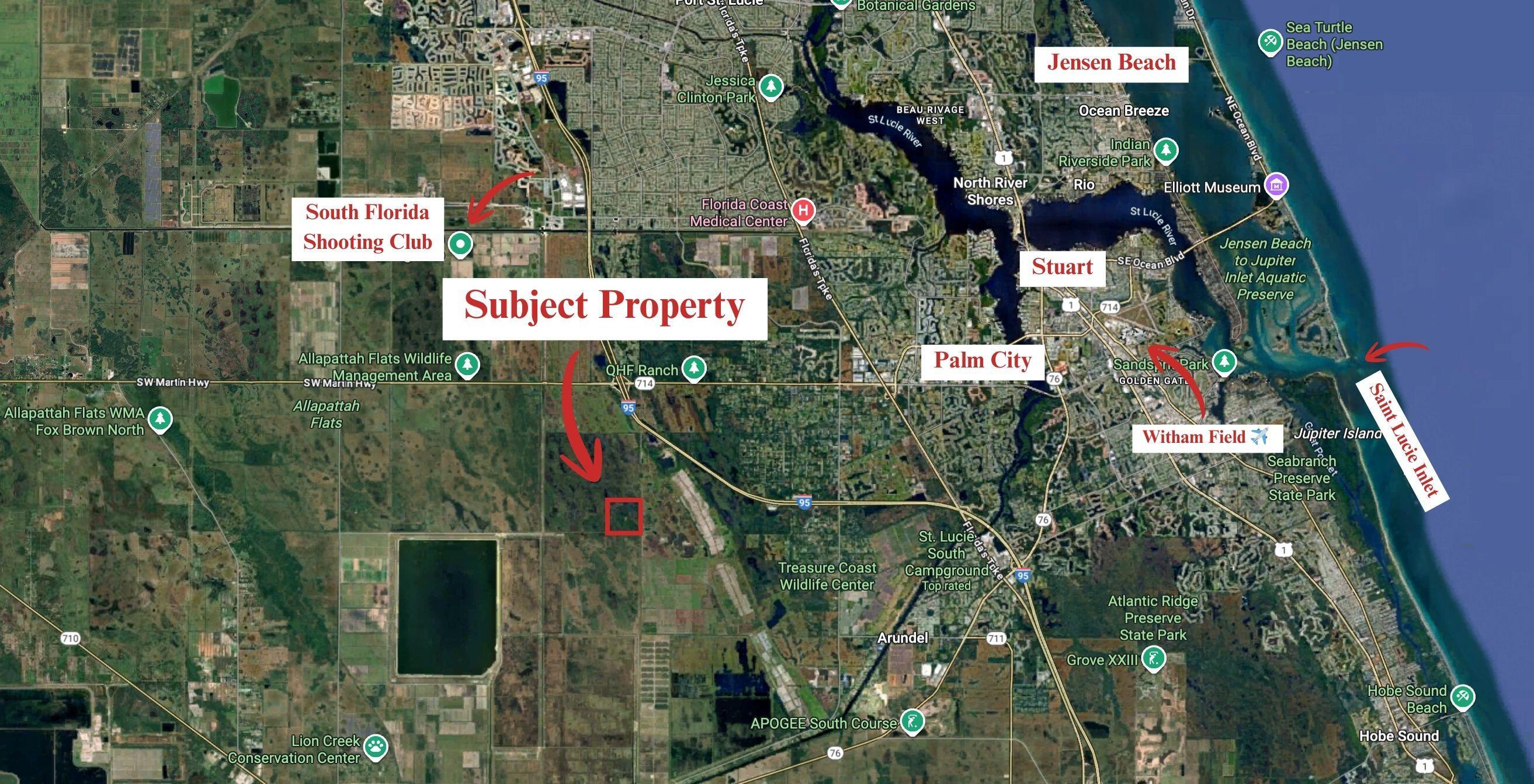 Over 139 acres of secluded, pristine acreage in Palm City, Florida, located approximately 6+ miles from town and set back off Highway 714. This is a rare opportunity to own a large, private tract in Martin County--surrounded by thousands of acres of agricultural land that amplify the sense of space, privacy, and long-term value.From an investment perspective, acreage of this scale in Palm City is increasingly hard to find. With its proximity to established growth areas and an expansive footprint, the property presents a compelling opportunity for buyers evaluating long-term land strategies in the region.For the outdoor enthusiast, the property is well-suited for hunting, camping, target practice, four-wheeling/ATVs, retreats, and recreational use.The land is abundant with wild game, including deer, turkey, hogs, quail, and more, making it an ideal setting for those seeking a true Florida sportsman property. Adding to its appeal, the property features highly sought-after palmetto berries, which can provide a meaningful seasonal income stream during harvesting months. A communications tower is located near the center of the tract and is owned and operated by a separate entity.
