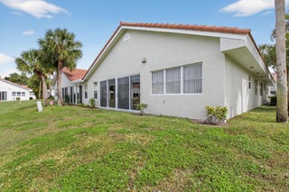 THIS BEAUTIFUL CORNER LAKEFRONT VILLA WITH GARAGE, BEAMS WITH PRIDE OF OWNERSHIP! Available exquisitely furnished, turnkey or unfurnished. Gently occupied by snowbirds and lovingly maintained. Enjoy the air-conditioned Florida Room OVERLOOKING SERENE LAKE VIEWS. Gorgeous neutral color tile floors and an updated kitchen compliment the home. This home features a spacious open layout, vaulted ceilings, split bedroom floor plan, separate family room, breakfast area, and laundry room. Master bedroom suite offers walk-in closet, & master bath w/dual sinks & walk-in shower. Largest model in this gated 55+ community with clubhouse, pool, tennis, pickleball, fitness room, & walking paths. Pets: ESA and service pets welcome. Lawn care included in LOW HOA fee. *QUICK CLOSING OK-EASY HOA APPROVALActive West Boca Raton area. Convenient to The Reserve Plaza, Delray Marketplace, shopping, dining, recreation & major highways. Exterior painting-2025. Dishwasher-2024, Garage Door Opener-2025. WH-2021. A/C-2018. Roof- 2008.