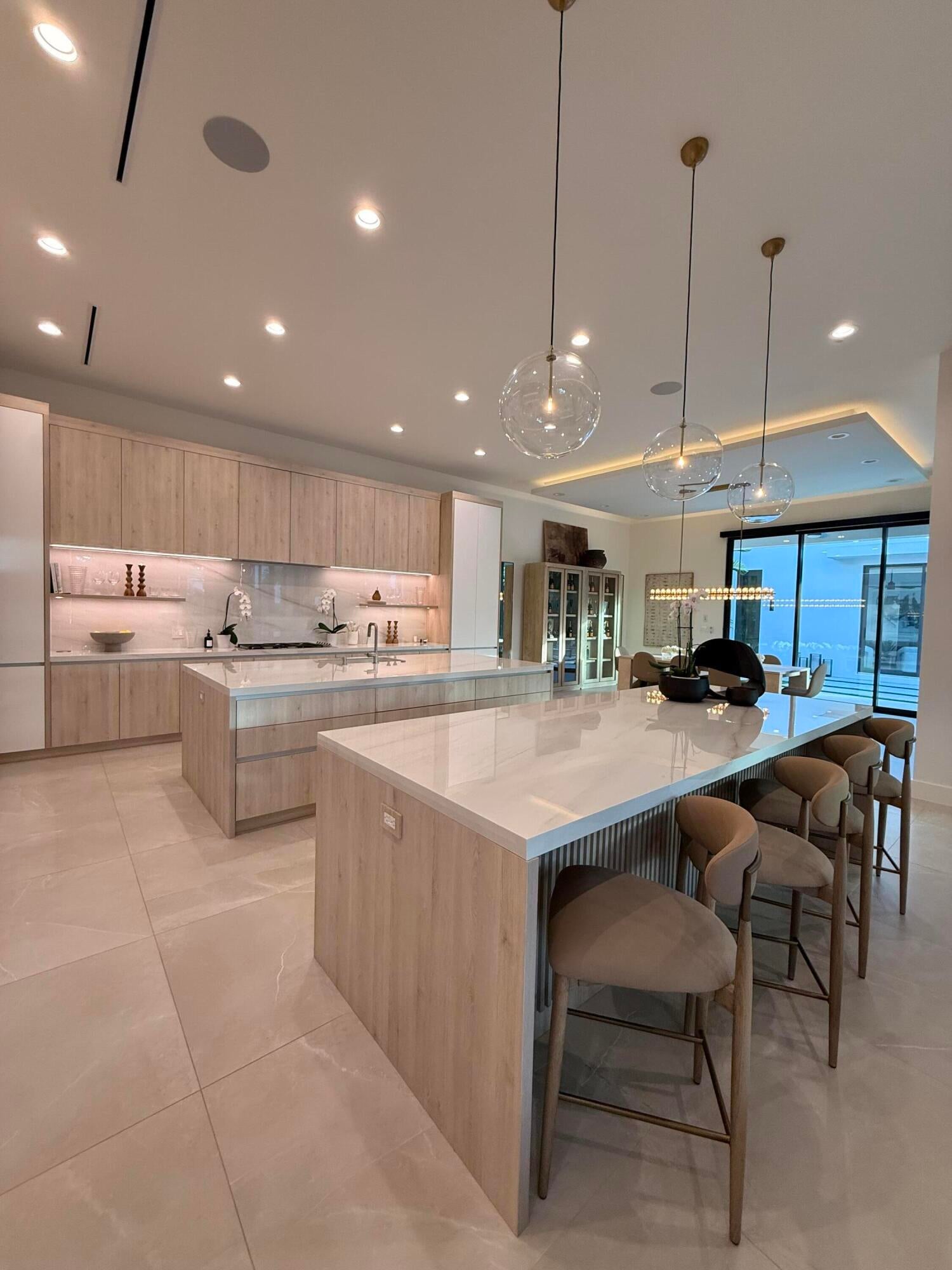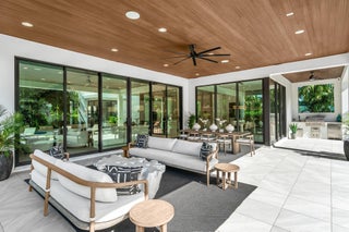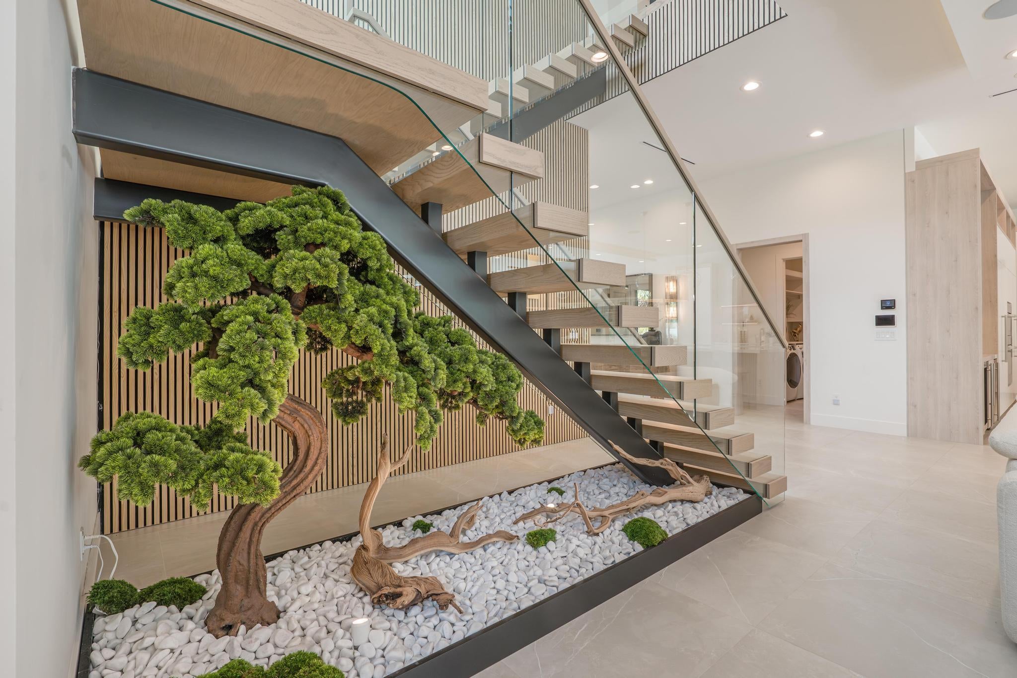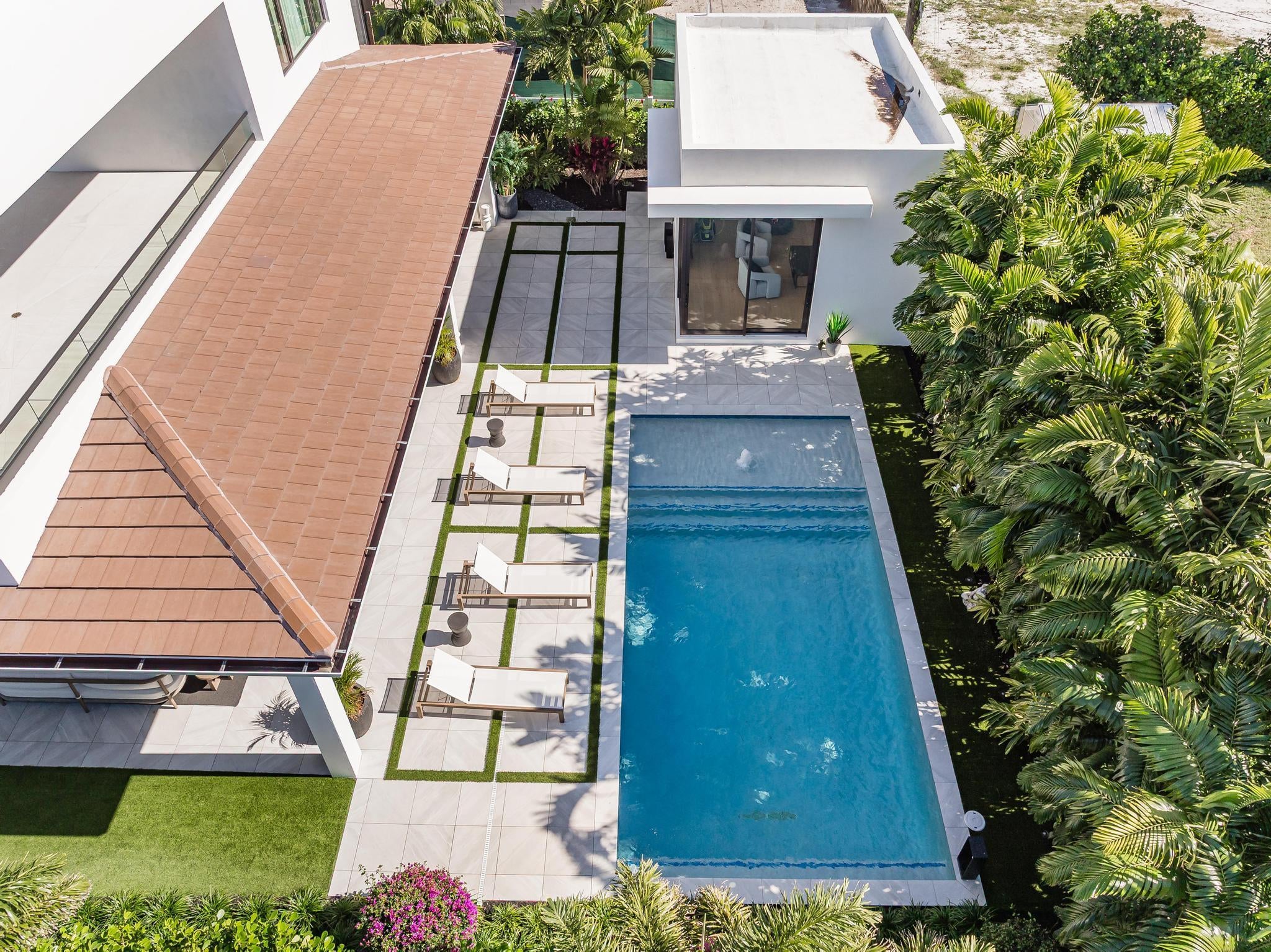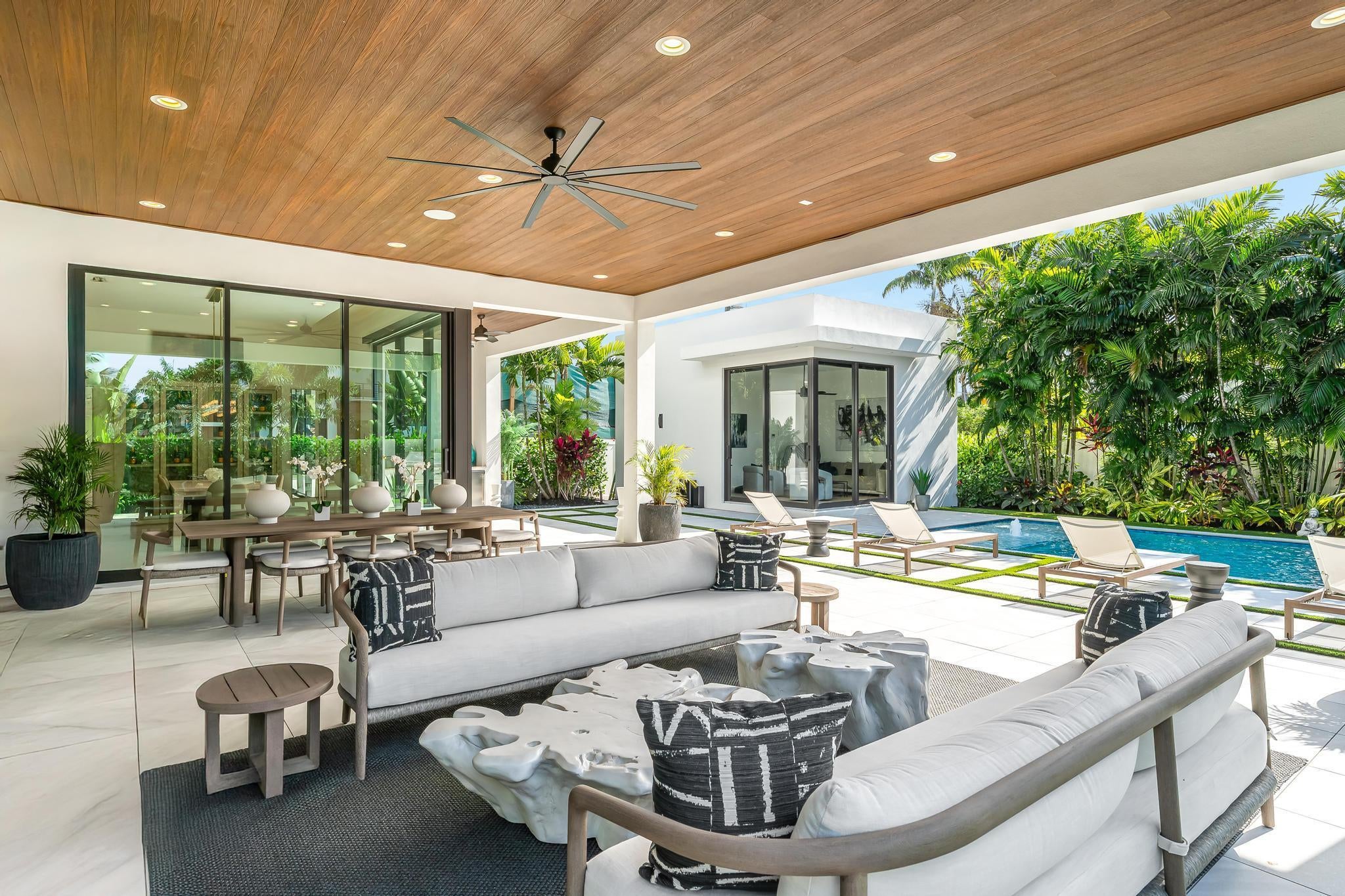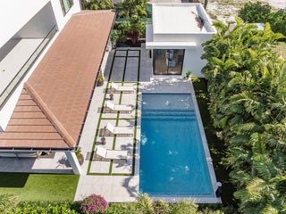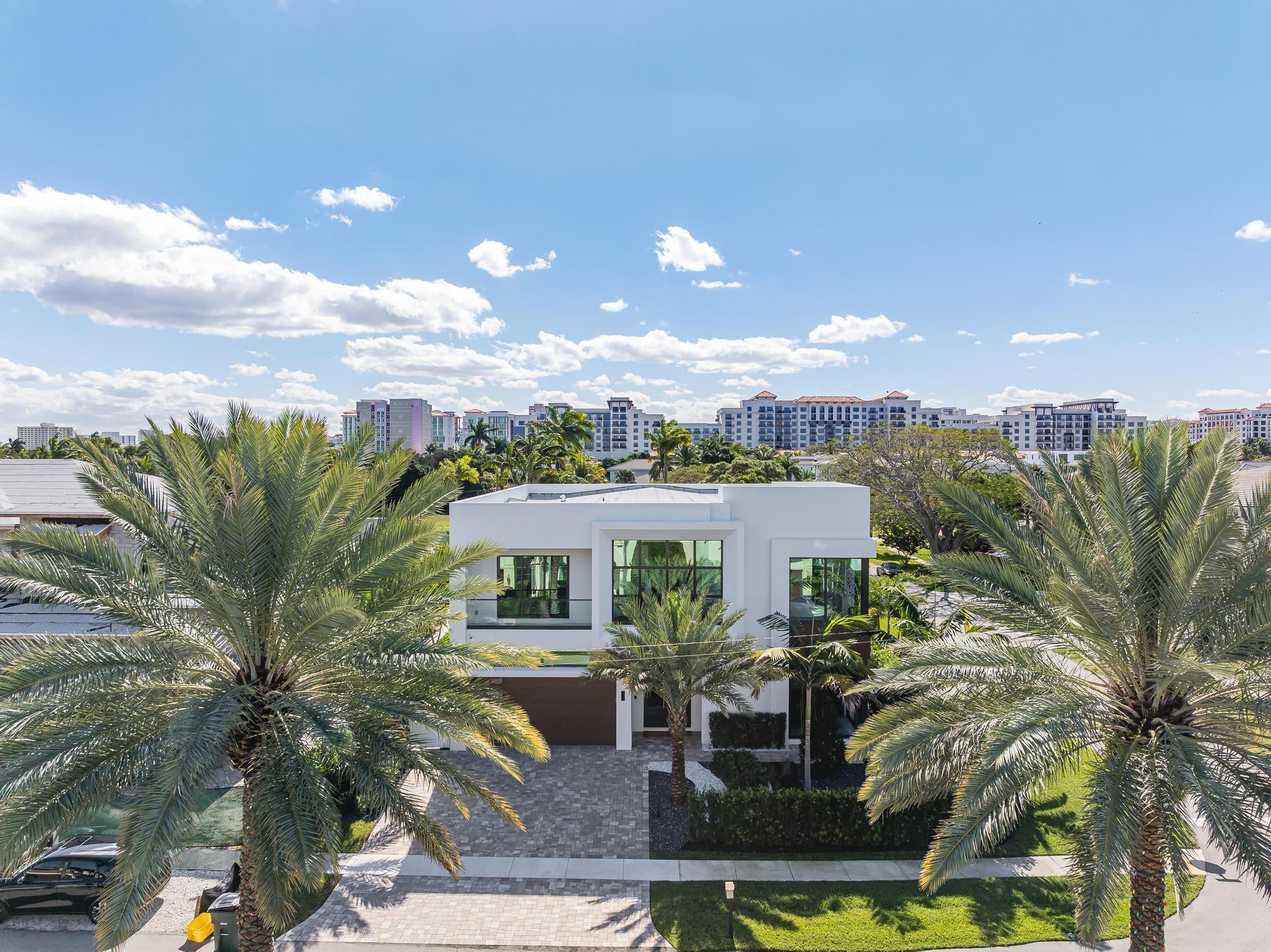 Experience Boca Raton living at its most elevated in this bespoke, turnkey smart estate on a corner lot, crafted by Primo Construction and designer Arianna Tascione, moments from The Boca Raton Resort & Club, Mizner Park, pristine beaches, private aviation, and world-class dining and shopping. Inside, over $400K in Restoration Hardware curation sets a refined, organic tone, while a centralized tablet orchestrates HVAC, lighting, security, exterior cameras, and motorized window treatments. The 391 sq ft separate 1-bed/1-bath guest suite distinguishes this masterpiece from neighboring homes, and provides complete privacy and functionality for guests or use as a home office or wellness suite.A grand glass entry reveals a sculptural floating staircase above a gallery-worthy bonsai installation; Episode speakers powered by Sonos envelop both interior and outdoor spaces in immersive sound. The chef's kitchen - natural gas Miele suite, oversized island, and built in bar - flows to an 833 sq ft covered patio with wood grain ceiling overlooking a lush pool and gardens. The primary retreat indulges with a 392 sq ft terrace, spa bath, dual custom closets (one bedroom sized), automated Toto commodes, custom soaking tub, and a steam shower. Two en-suite guest suites flank an entertainment loft, while a separate guest house adds effortless flexibility. A concrete second floor structure, whole house generator, and elevator complete this no compromise modern sanctuary. The furniture and furnishings are offered for sale; price is negotiable.