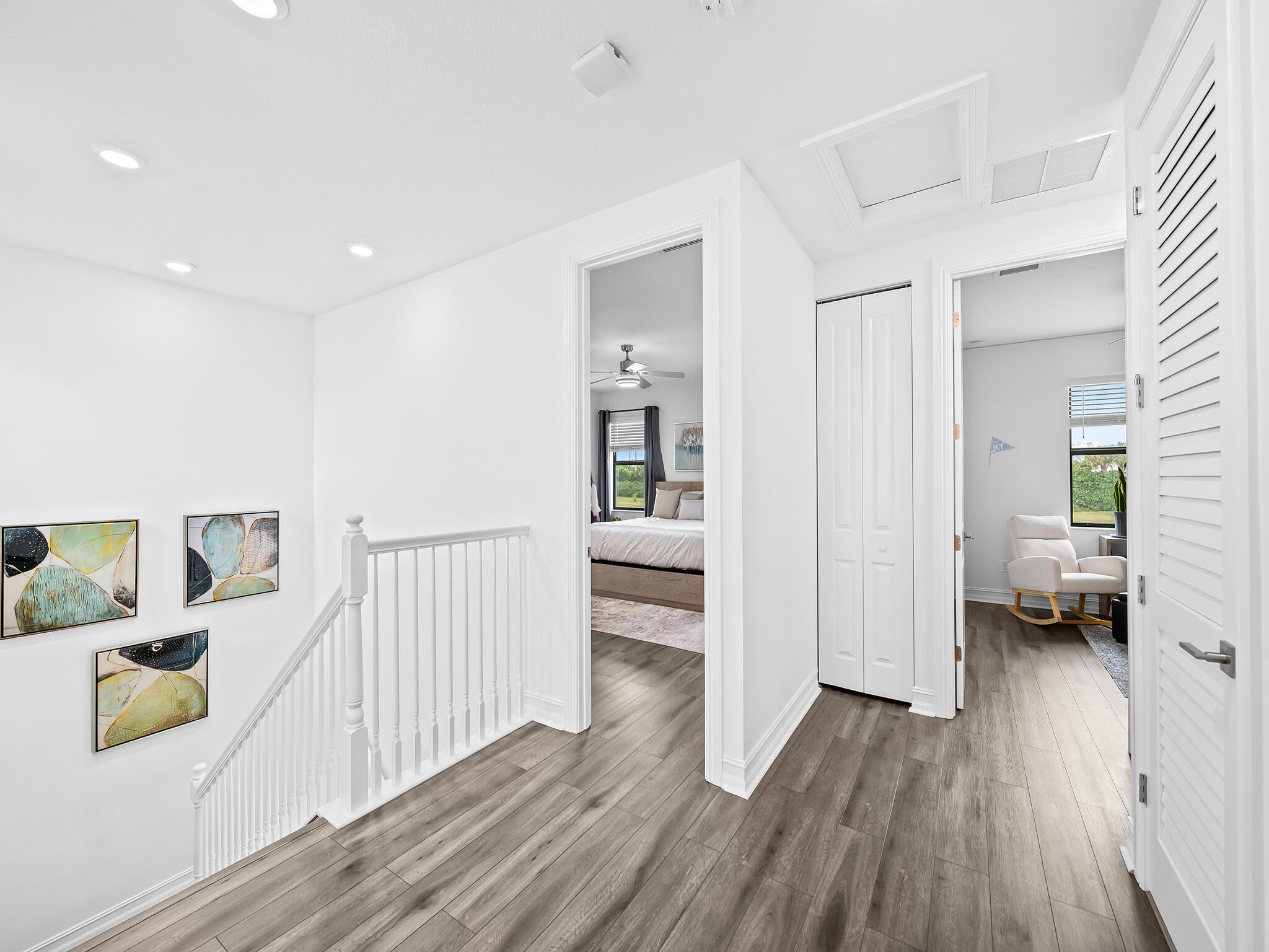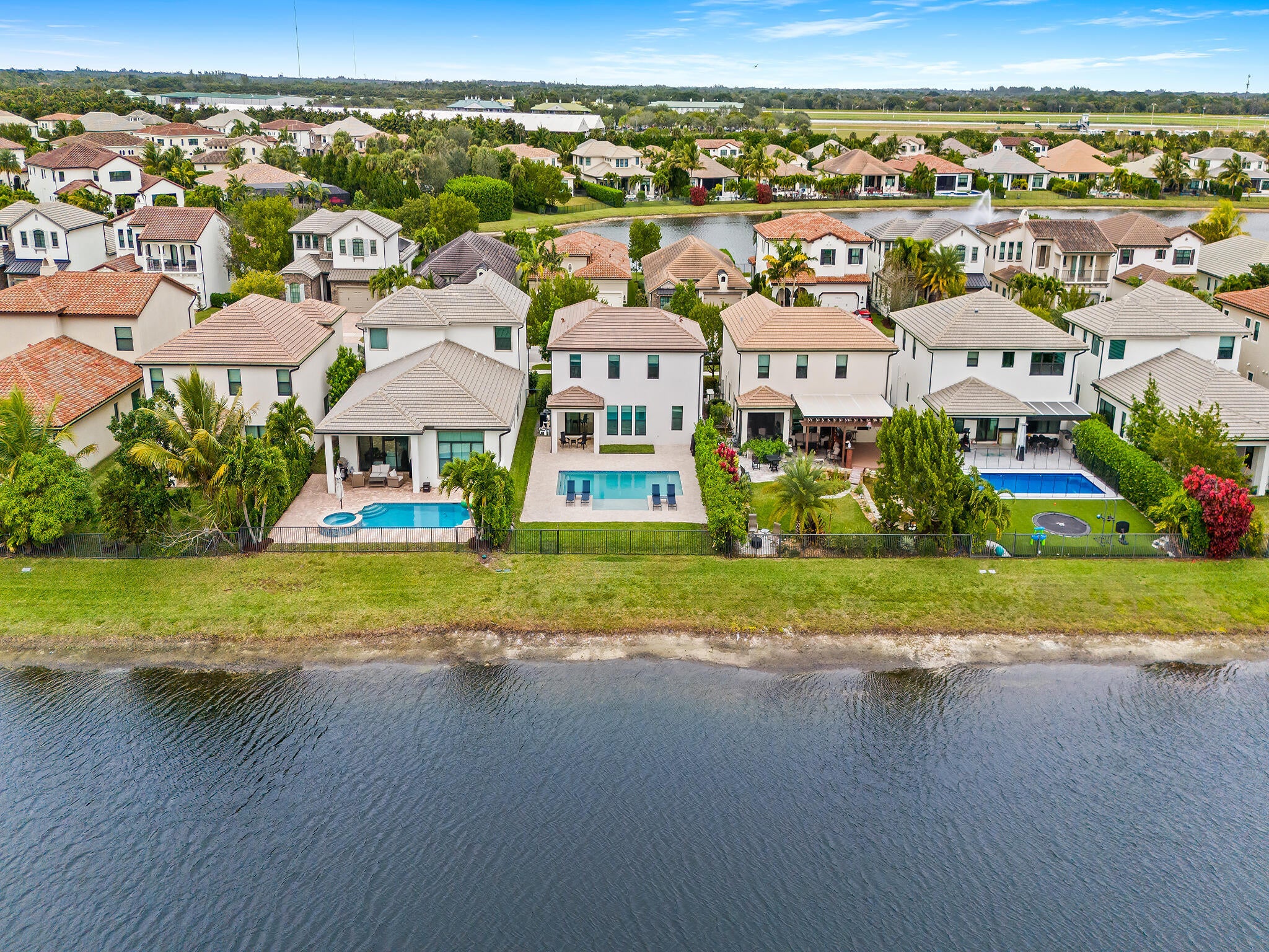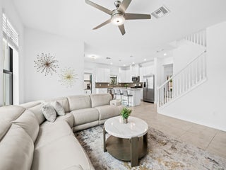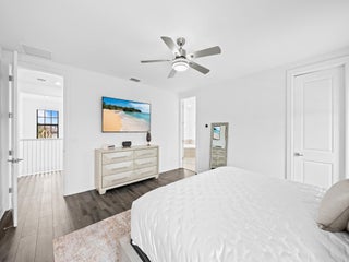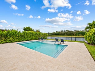 This Beautiful 4 bedroom Waterfront home features a large, newly installed pool and extended patio! The pool area overlooks the water and offers a sunny southern exposure. This unewer construction 2019 home has 3 bedrooms upstairs and one bedroom downstairs. 2 car garage. Palm Meadows is a gated residential neighborhood with a strong focus on resort style living and active family friendly features, Including a resort style community clubhouse, social/event room, pool and heated spa to relax, cabanas and barbecue pavilion, children's splash zone, fitness and sports facilities, such as aerobics and yoga room, indoor sports courts, tennis courts, Pickleball courts, volleyball court and bocce ball courts, & manned security. The community Offers, attractive architecture & landscaping