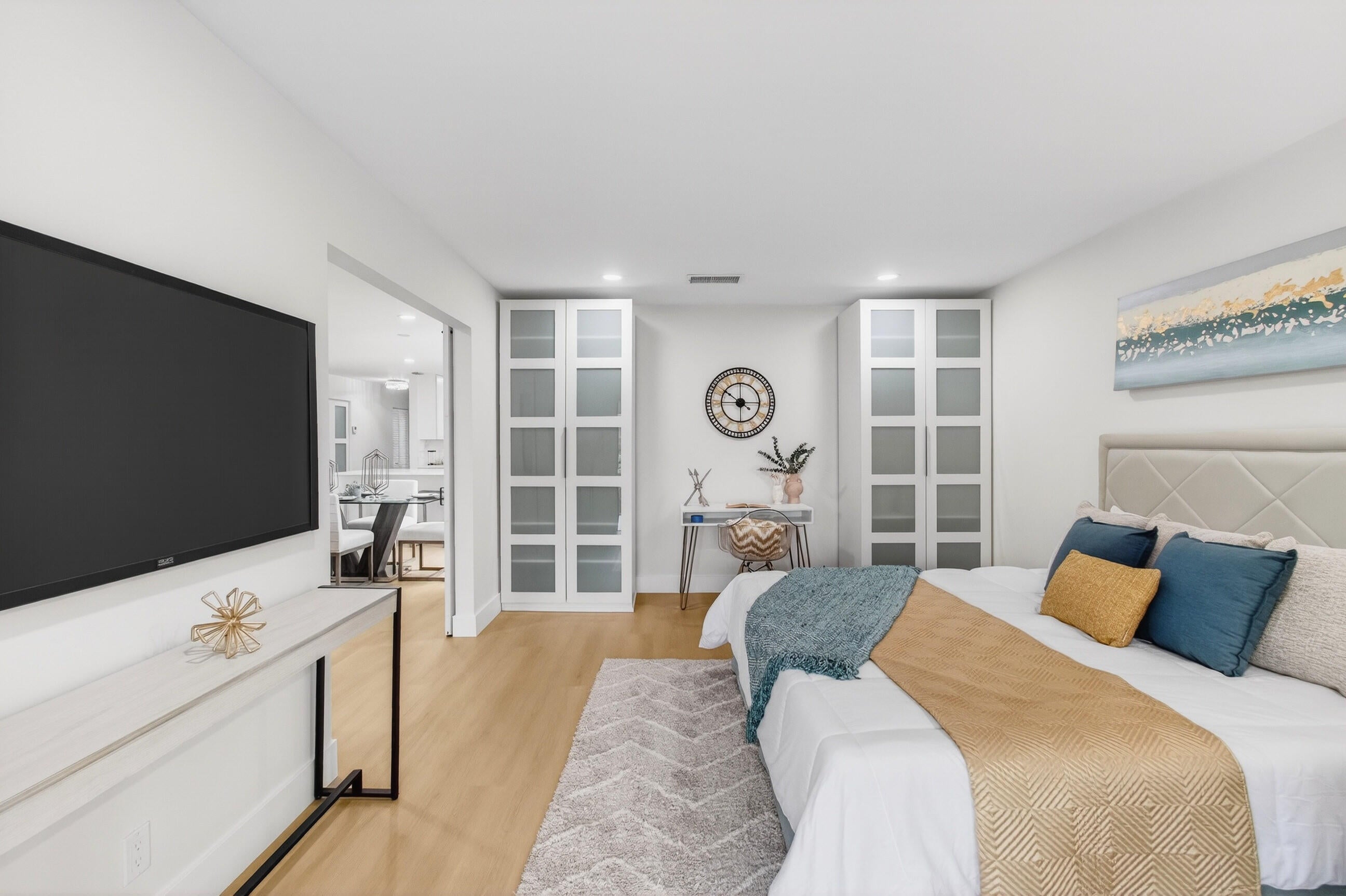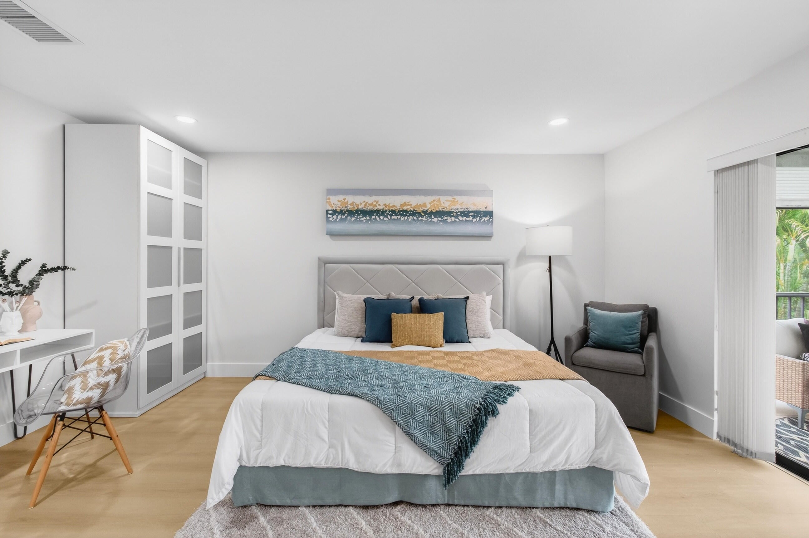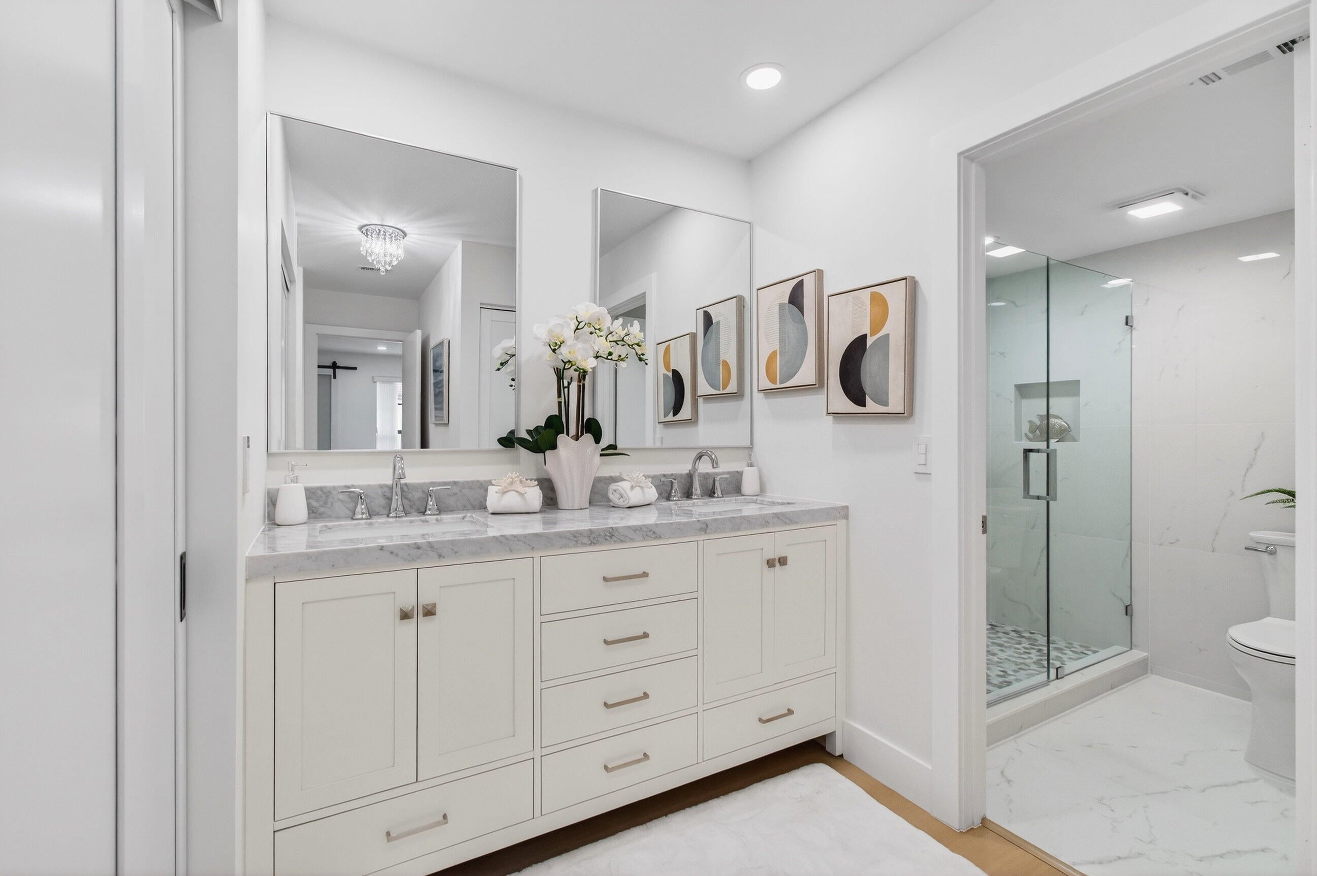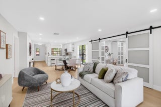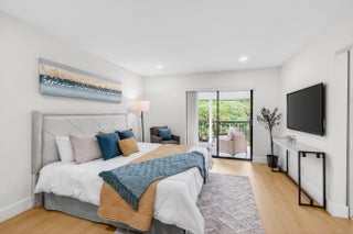 Refined luxury meets total tranquility. This 3BR/2BA corner residence in the 55+ Palms of Boca Lago has been updated with a meticulous level of detail rarely seen. The interior features a calming, fresh palette with smooth flat ceilings (all popcorn was removed), integrated LED lighting, and new modern baseboards with matching door casings and contemporary hardware throughout.The heart of the home is the designer kitchen, featuring waterfall-edge quartz countertops, premium stainless appliances, and custom cabinetry with an oversized social counter designed for gathering. Privacy is paramount with a true split-bedroom floor plan, including a versatile third bedroom accented by custom barn doors. Both bathrooms are fully updated with porcelain tile and high-end fixtures. Relax on youroversized screened balcony with serene lake views. A truly turnkey home where every detail has been addressed. Schedule your private tour today and prepare to fall in love before someone else calls this paradise home!