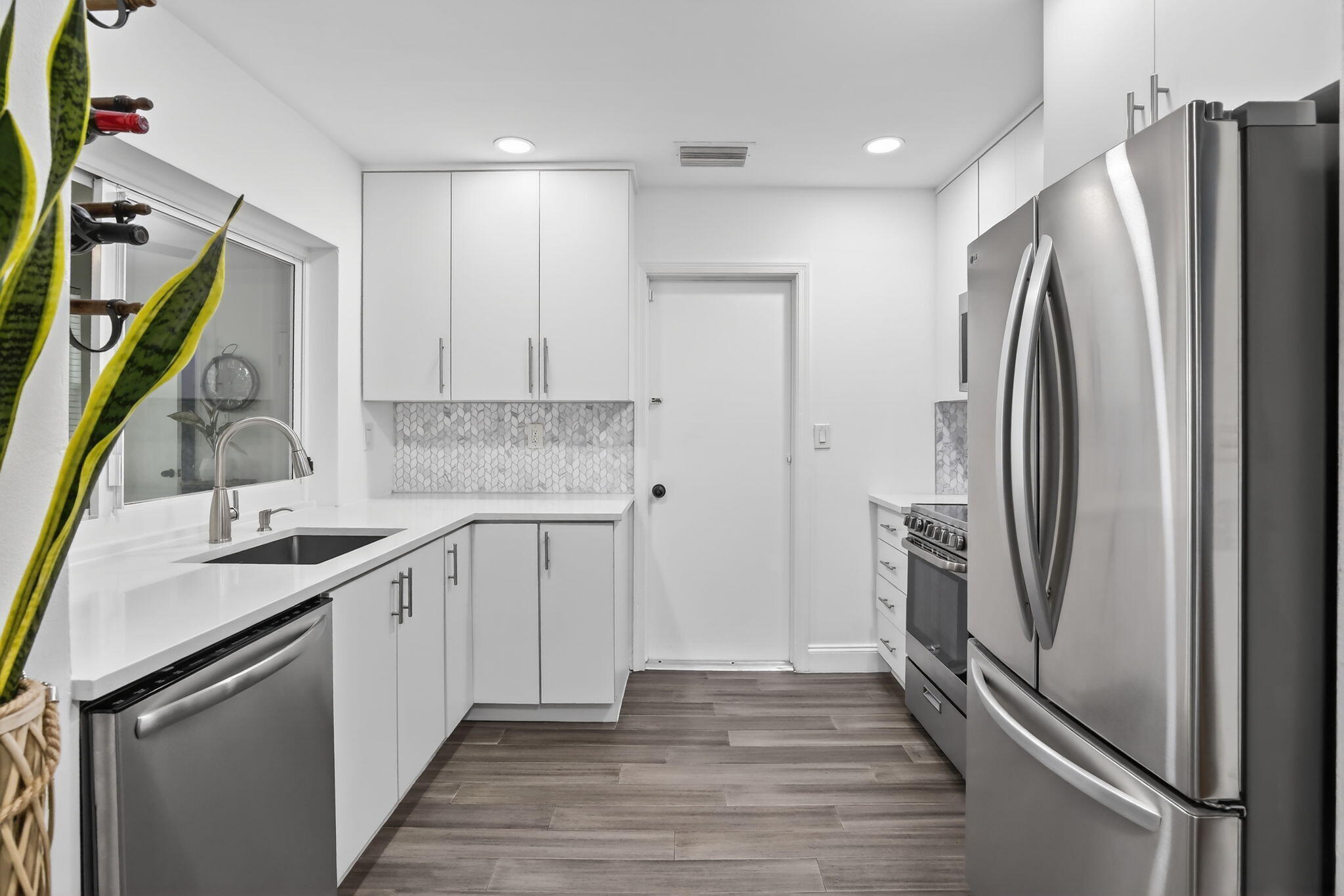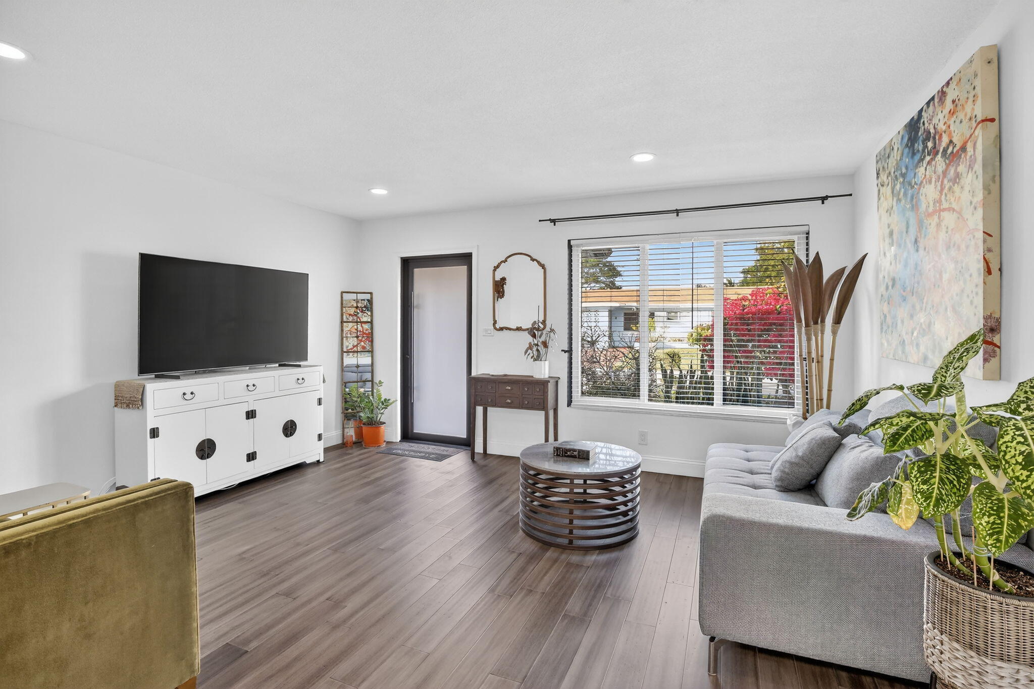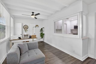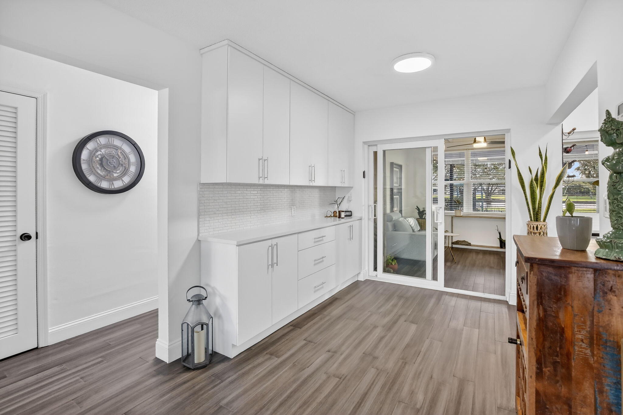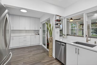 Beautifully updated, turnkey waterfront and waterview 2 bed, 2 bath home with garage, located in the desirable Mainlands Section 3, a 55+ comm. Major upgrades include a brand newer metal roof with warranty (2023), impact windows and doors, new underground plumbing, updated electrical, and an extended driveway. The interior features a contemporary kitchen with granite countertops and stainless steel appliances, renovated bathrooms, new flooring throughout, newer A/C, and fresh interior and exterior paint. The extended Florida room offers tranquil water views w/ensuite bathroom, creating a flexible living or guest space. The backyard is beautifully landscaped with mature shade trees and fruit trees, adding privacy and charm. Low HOA fee includes lawn care, clubhouse, and community pool.