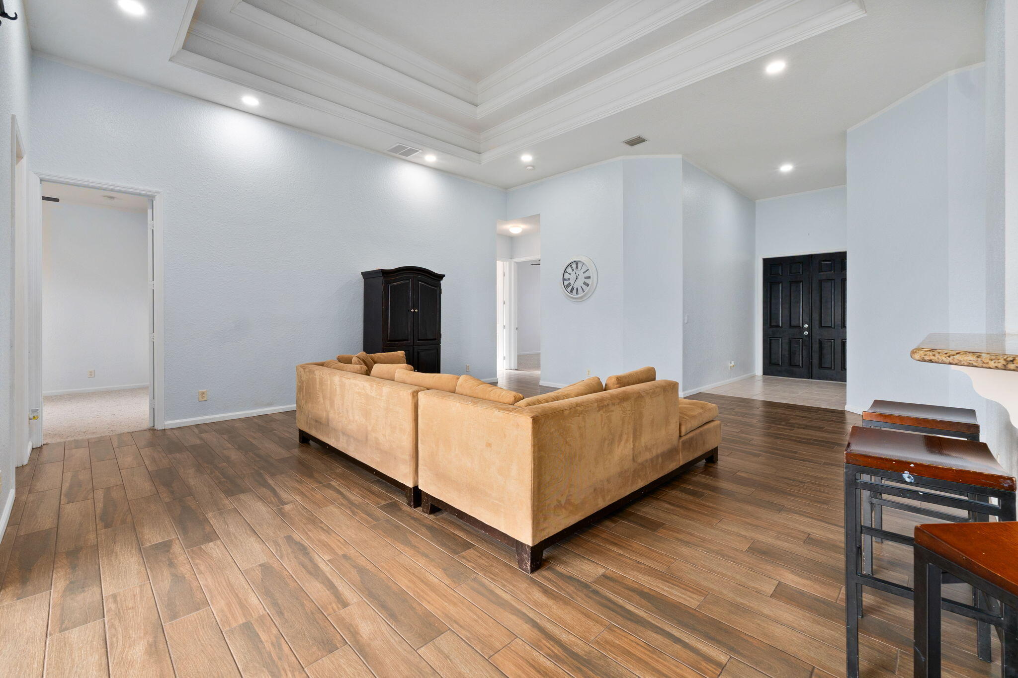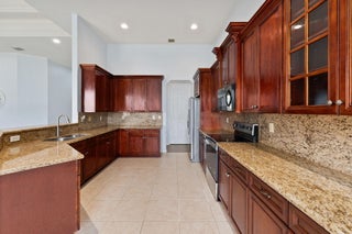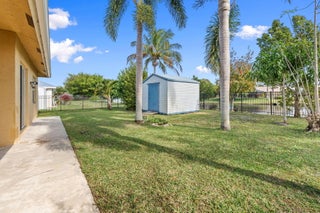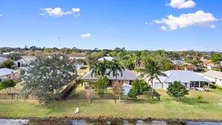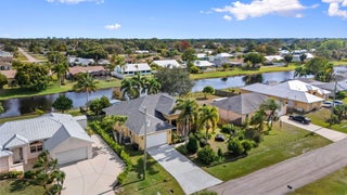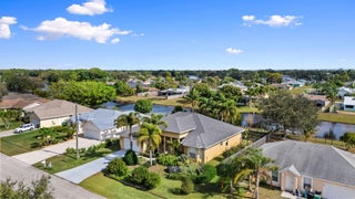 Welcome to this well-maintained home offering 5 bedrooms, 3 bathrooms, and 2-car garage with big water views, all arranged in a highly desirable split floor plan that provides privacy and flexibility. High decorative ceilings and abundant natural light create a bright, open atmosphere throughout. The kitchen is both stylish and functional, featuring all new appliances and a convenient eat-at bar, perfect for casual meals or entertaining guests. Enjoy the added convenience of a cabana bath along with a backyard that offers room for a pool with lush landscaping and coconut palms. Additional features include: water softener, full metal fencing and storage shed. Major updates: 2023 roof, 2023 water heater (10 year warranty). This move-in-ready home is ready to be called yours!