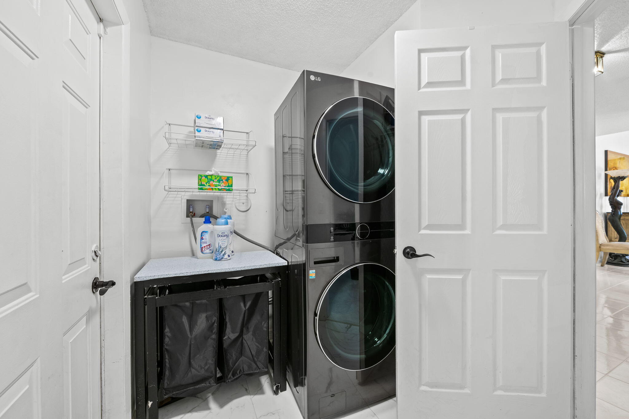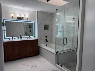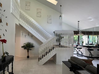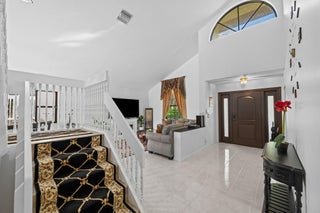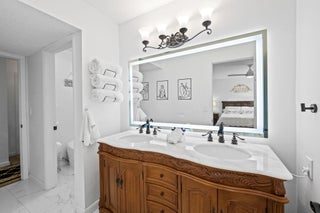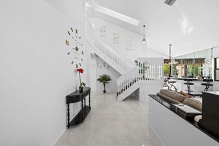 Experience modern luxury in this reimagined residence with $215k+ in designer upgrades since 2023. Rare floor plan features a private Primary Suite on the main level, with 3 spacious bedrooms and a full bath upstairs. Impact windows/doors, new HVAC, and upgraded electrical provide ultimate peace of mind. The chef's kitchen boasts custom cabinetry, premium granite, and high-end appliances. Both bathrooms are spa retreats with European smart toilets (heated/auto-flush) and a master jet tub. All bedrooms feature new luxury vinyl floors and custom closet systems. The backyard is a private resort with a Paradise Grills Summer Kitchen, wine cooler, dual fridges, Bluetooth audio, and LED lighting set against lush turf and new landscaping. Epoxy garage with custom shelving. A true masterpiece!