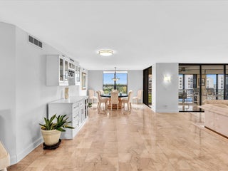 Panoramic views of Boca Raton and the sunsets from your bright 6th floor 3 BR/2.5 condo at Promenade Boca Pointe! Impact glass all around including sliders on huge wrap around enclosed terrace, great for entertaining! Gated community, secure lobby entrance, private elevator to two unis on each floor. Foyer entry, large granite kitchen, newer appliances, water heater. Breakfast room and additional office area off kitchen. Updated modern interior doors, ceiling fans, lighting, window treatments, built ins, vanities. Smooth ceilings inside. Sold turnkey furnished (artwork excluded), move right in to enjoy all Boca Pointe has to offer. Optional memberships available. Adjacent to Promenade pool, close to main club.Covered first parking spot next to entrance. Great Central Boca location!