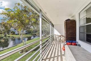 Corner, 2nd floor, walk up unit with a Balcony overlooking Water Views with Central A/C. This adorable condo is a Turn Key. Fully Furnished, Everything is included!.Title floors throughout the home. Steps to a beautiful tropical pool. The building is on a quiet Cul-De-Sac. Century Village is a Gated, Resort Style 55+ Community. Amenities including 12 tennis courts,pickleball, pools, state-of-the-art clubhouse, fitness center, bus service theater. 3 miles to the beach. Lots of shopping near by. Must See!