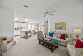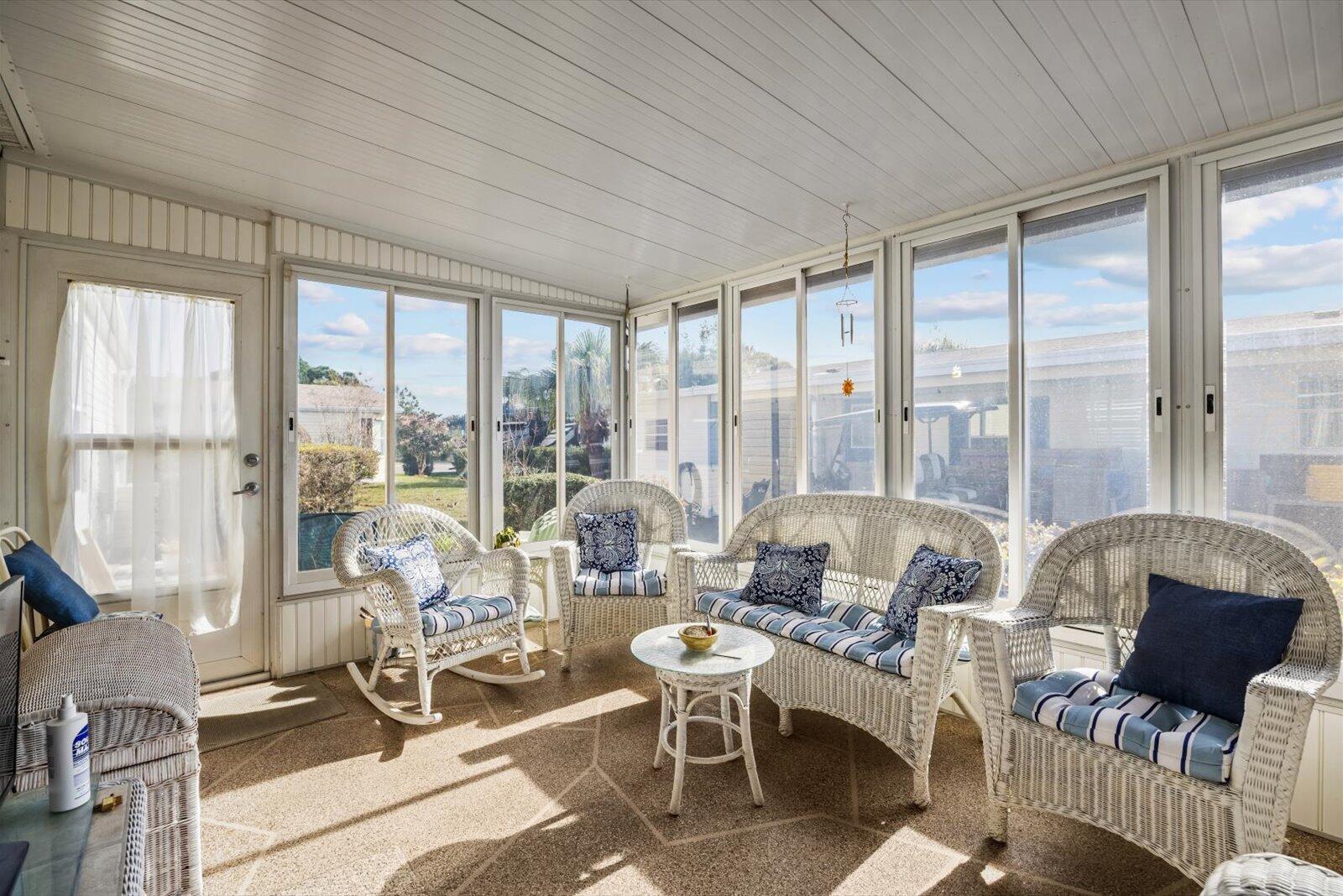 Say hello to seasonal or full time living in this furnished 2 bedroom, 2 bath home in the desirable Savanna Club 55+ community. Home is light and bright with an island kitchen, plantation shutters, an open living room layout, enclosed lanai and newer roof and A/C. Golf cart included too! All measurements approximate, buyer to verify. Land Lease Property