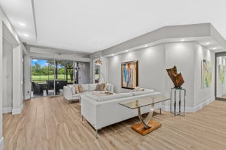 Step into this beautiful remodeled condo, where natural light pours through large windows showcasing the beautiful golf course vistas. The modern kitchen is a true showstopper--fully renovated with ample cabinet space, sleek countertops, and stainless steel appliances. Enjoy casual meals in the charming eat-in breakfast nook or host elegant dinners in the formal dining area. The spacious living room flows seamlessly into a cozy den featuring a sleeper sofa, making it the perfect spot for movie nights or accommodating overnight guests. The primary bedroom is generously sized and includes a convenient desk area for working from home, a large walk-in closet, a serene ensuite bathroom with dual sinks, a roomy shower, a private water closet, and abundant counter and storage space. Guests will >also appreciate the private second bedroom with its own ensuite bath. Additional highlights include a full laundry room and a one-car garage. Relax and unwind on the expansive screened-in patio, complete with a dining table for family gatherings and lounge chairs perfect for soaking up the stunning golf course views. This is resort-style living at its finest in the award-winning Polo Club.
