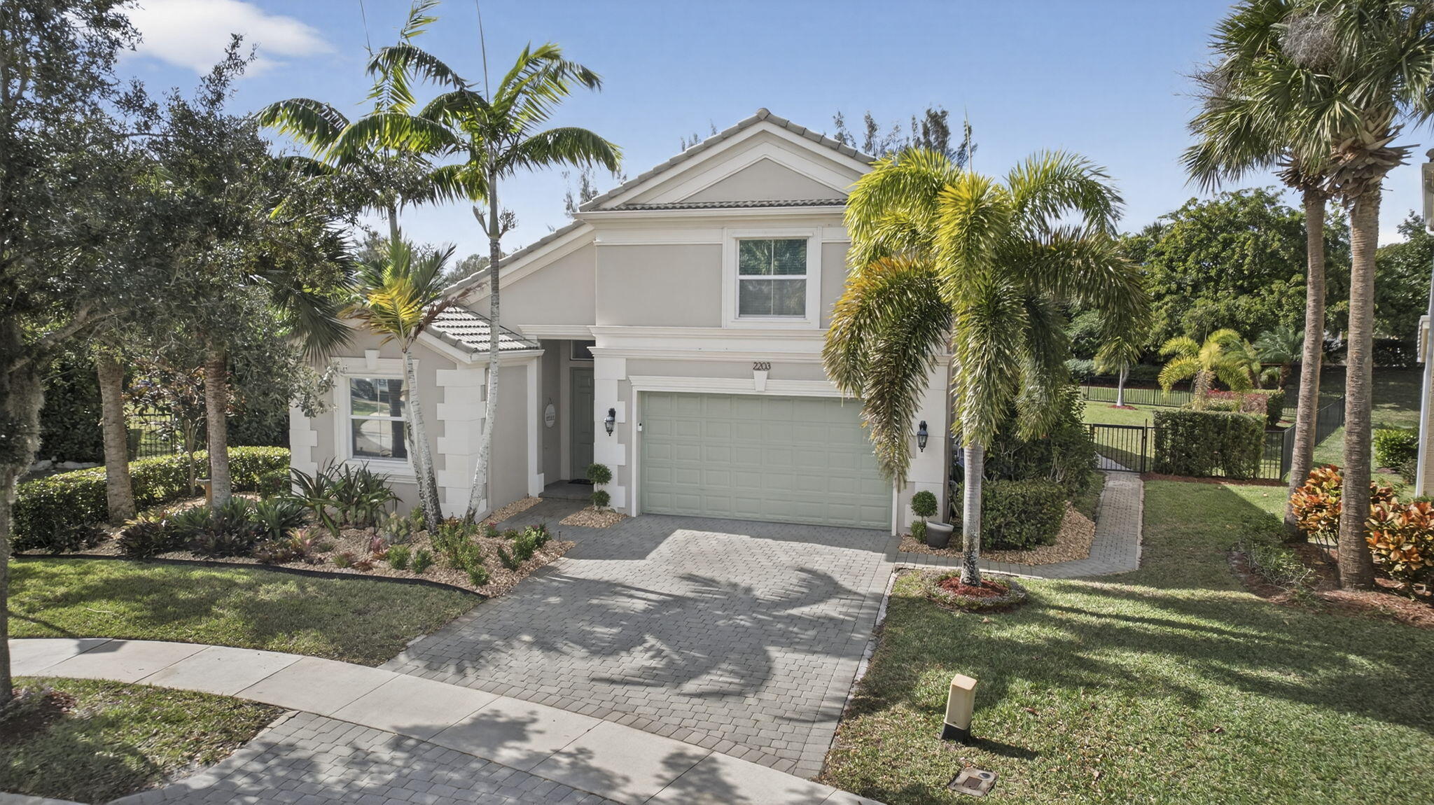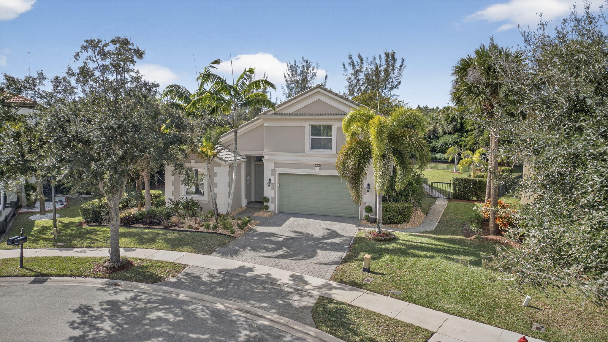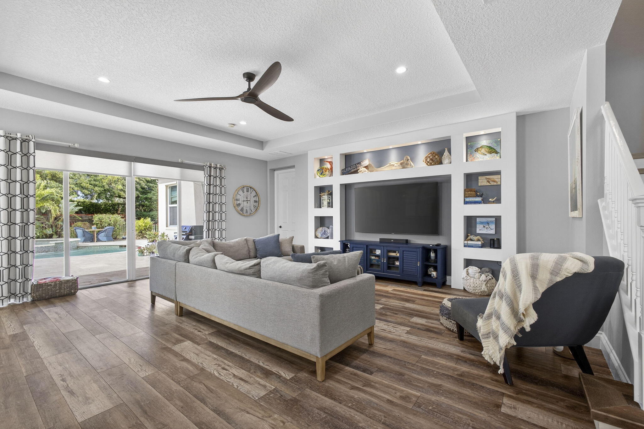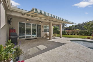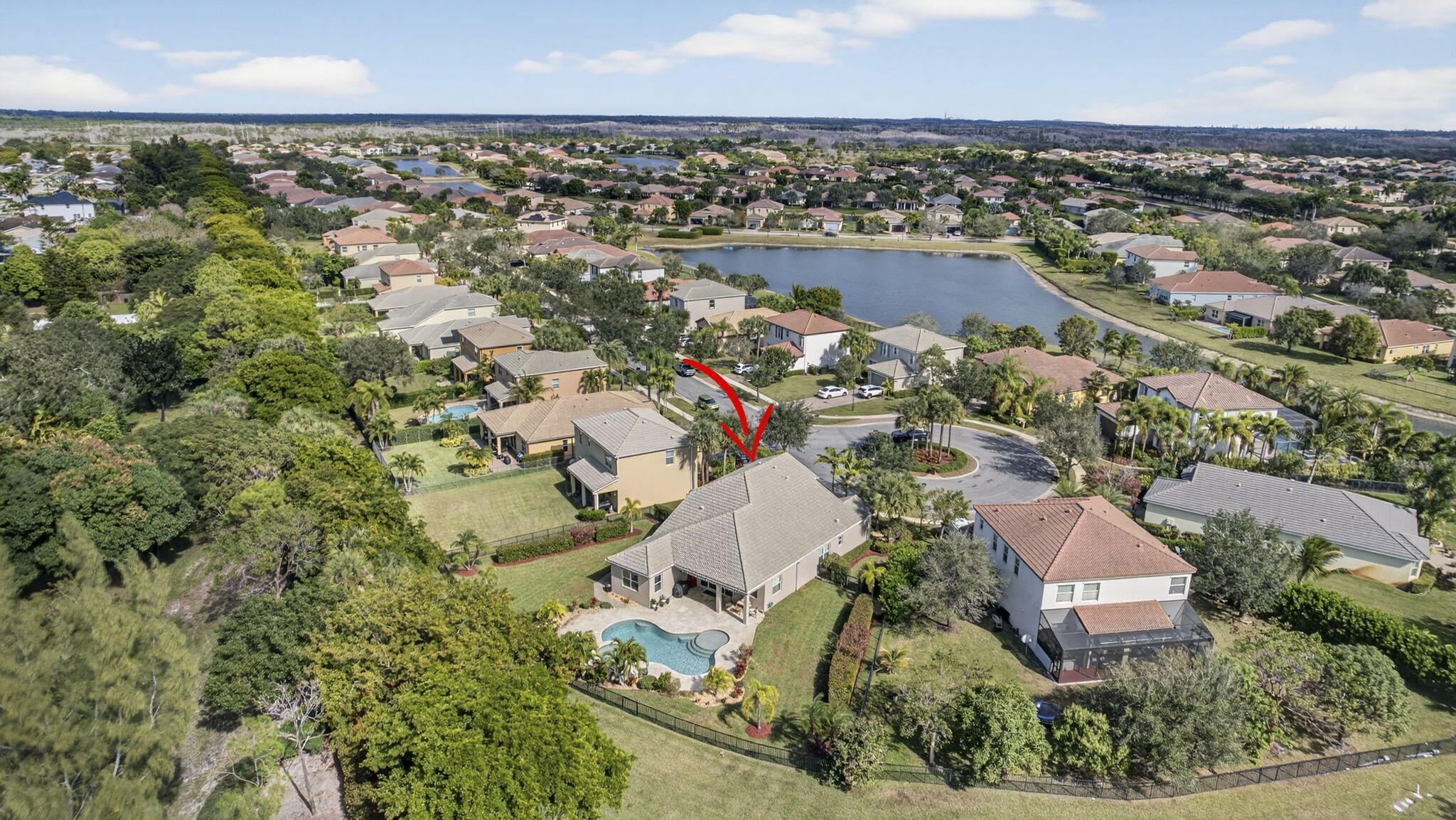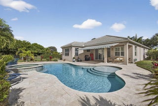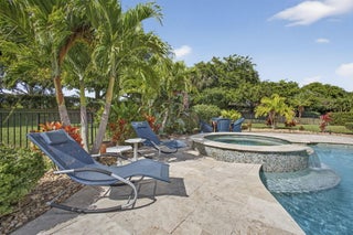 Situated on one of the largest and most private cul-de-sac lots in Portosol, this move-in-ready 4/3 home offers exceptional space and privacy with no rear neighbors and an expansive fenced yard. Coastal design, LVP flooring throughout, and numerous renovations create a warm, turnkey feel. The first floor features a spacious primary suite and guest bedroom, with two additional bedrooms and bath upstairs. The kitchen boasts quartz countertops, large island, pantry, wine chiller, and coffee bar overlooking the heated saltwater pool and spa. Outdoor TV conveys. Retractable awning, ample deck and grass space. Resort-style amenities, great schools, and close to shopping, dining, Wellington horse farms, and Loxahatchee nurseries.