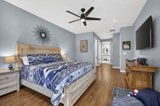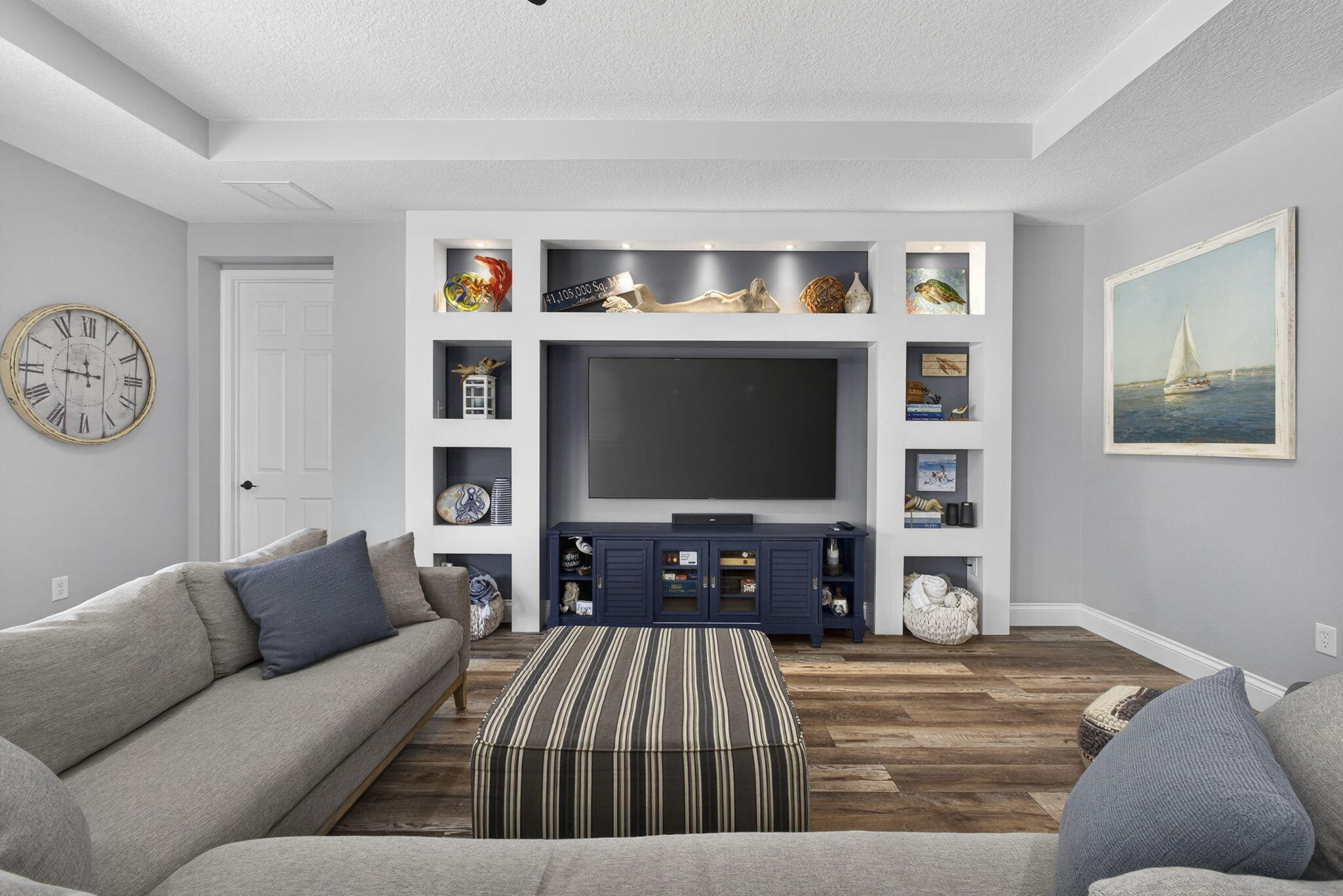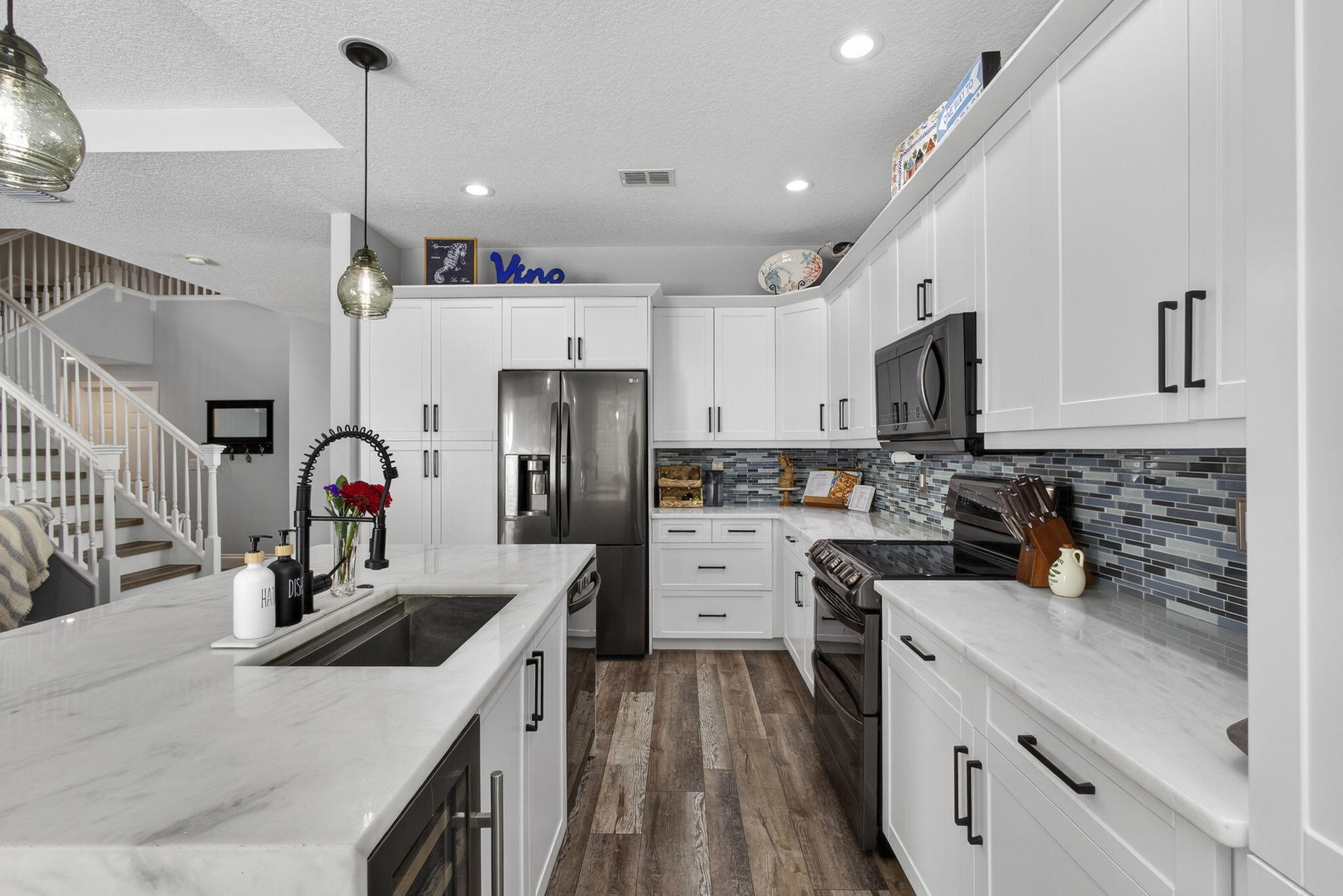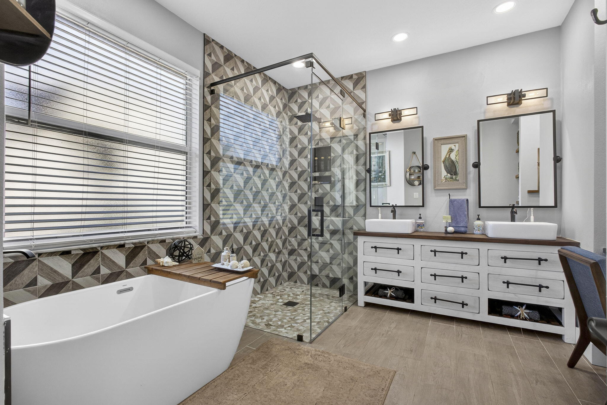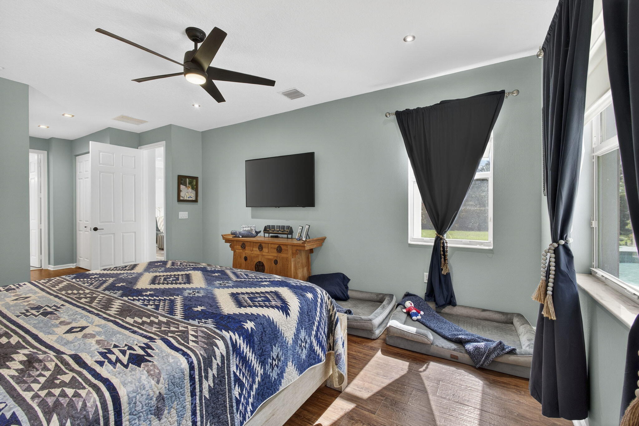 Situated on one of the largest and most private cul-de-sac lots in Portosol, this move-in-ready 4/3 home offers exceptional space and privacy with no rear neighbors and an expansive fenced yard. Coastal design, LVP flooring throughout, and numerous renovations create a warm, turnkey feel. The first floor features a spacious primary suite and guest bedroom, with two additional bedrooms and bath upstairs. The kitchen boasts quartz countertops, large island, pantry, wine chiller, and coffee bar overlooking the heated saltwater pool and spa. Outdoor TV conveys. Retractable awning, ample deck and grass space. Resort-style amenities, great schools, and close to shopping, dining, Wellington horse farms, and Loxahatchee nurseries.