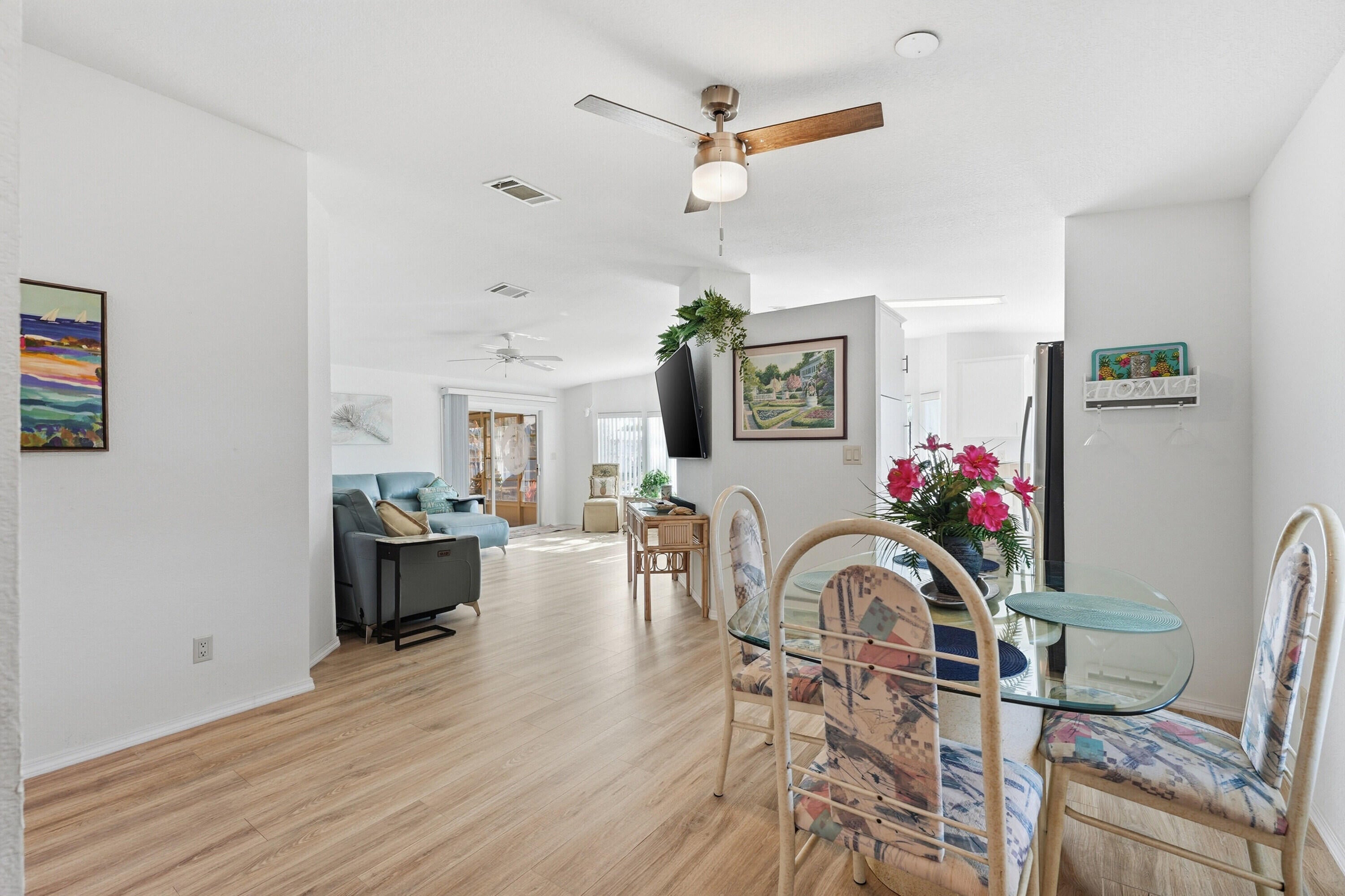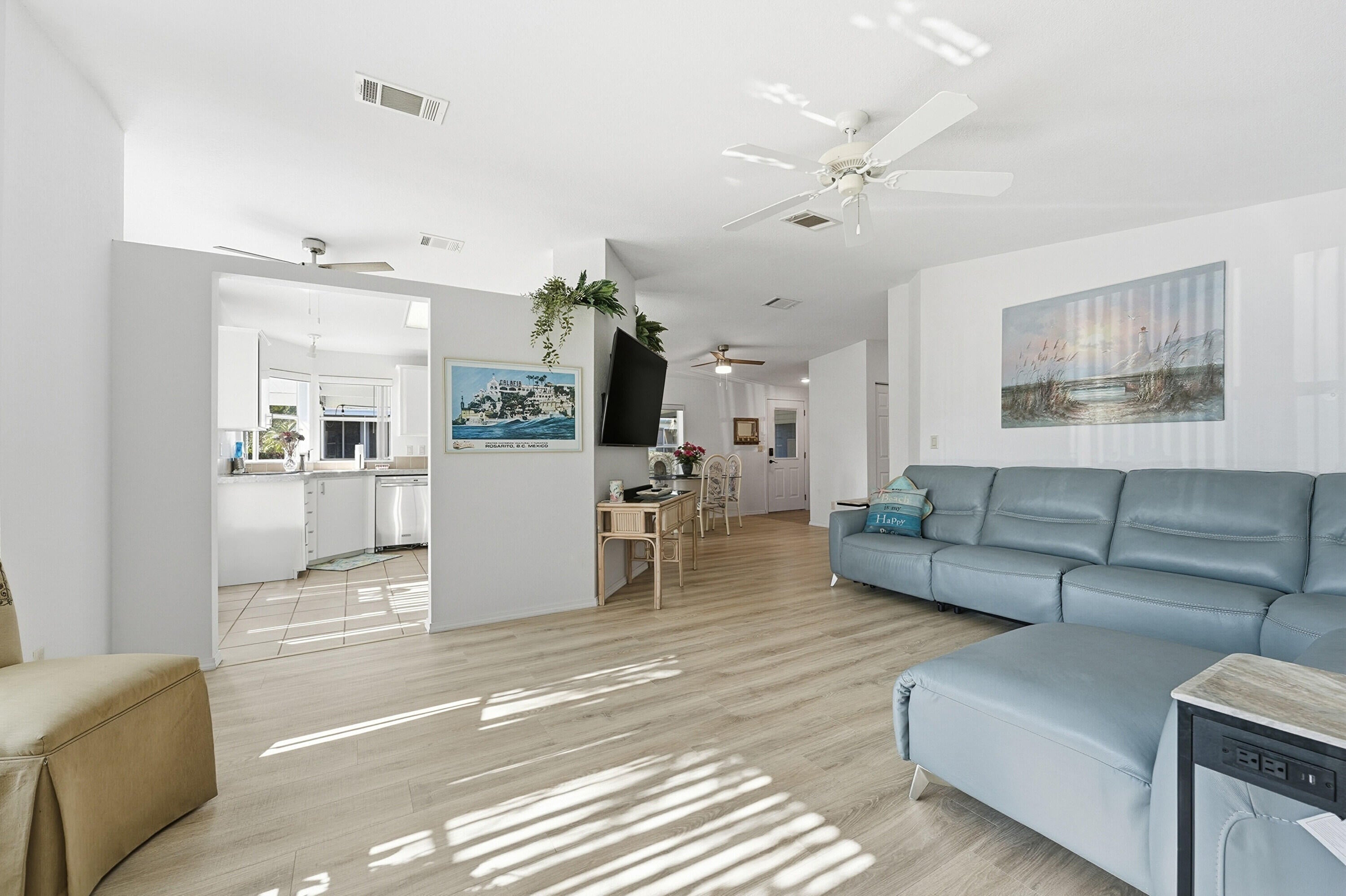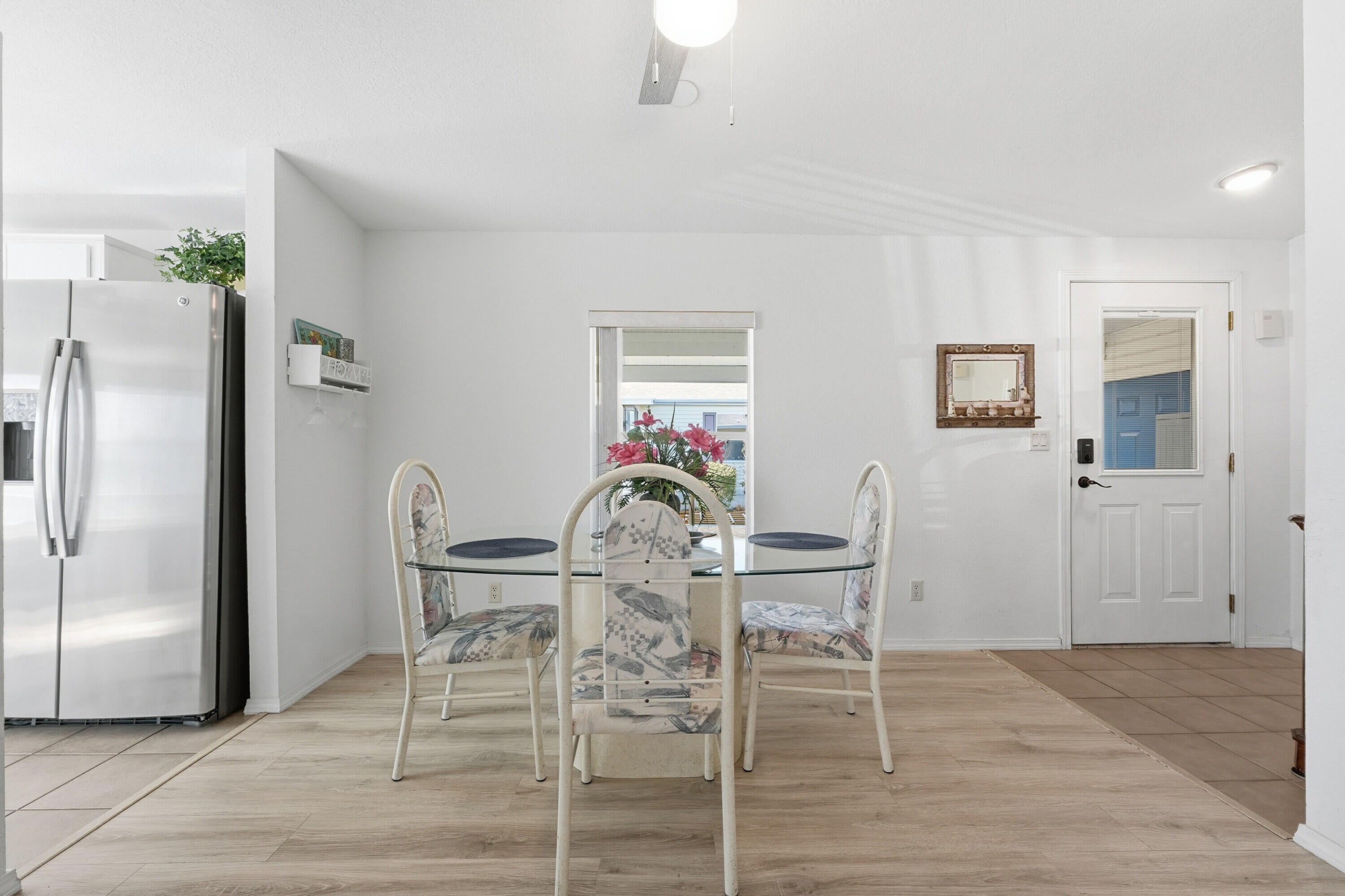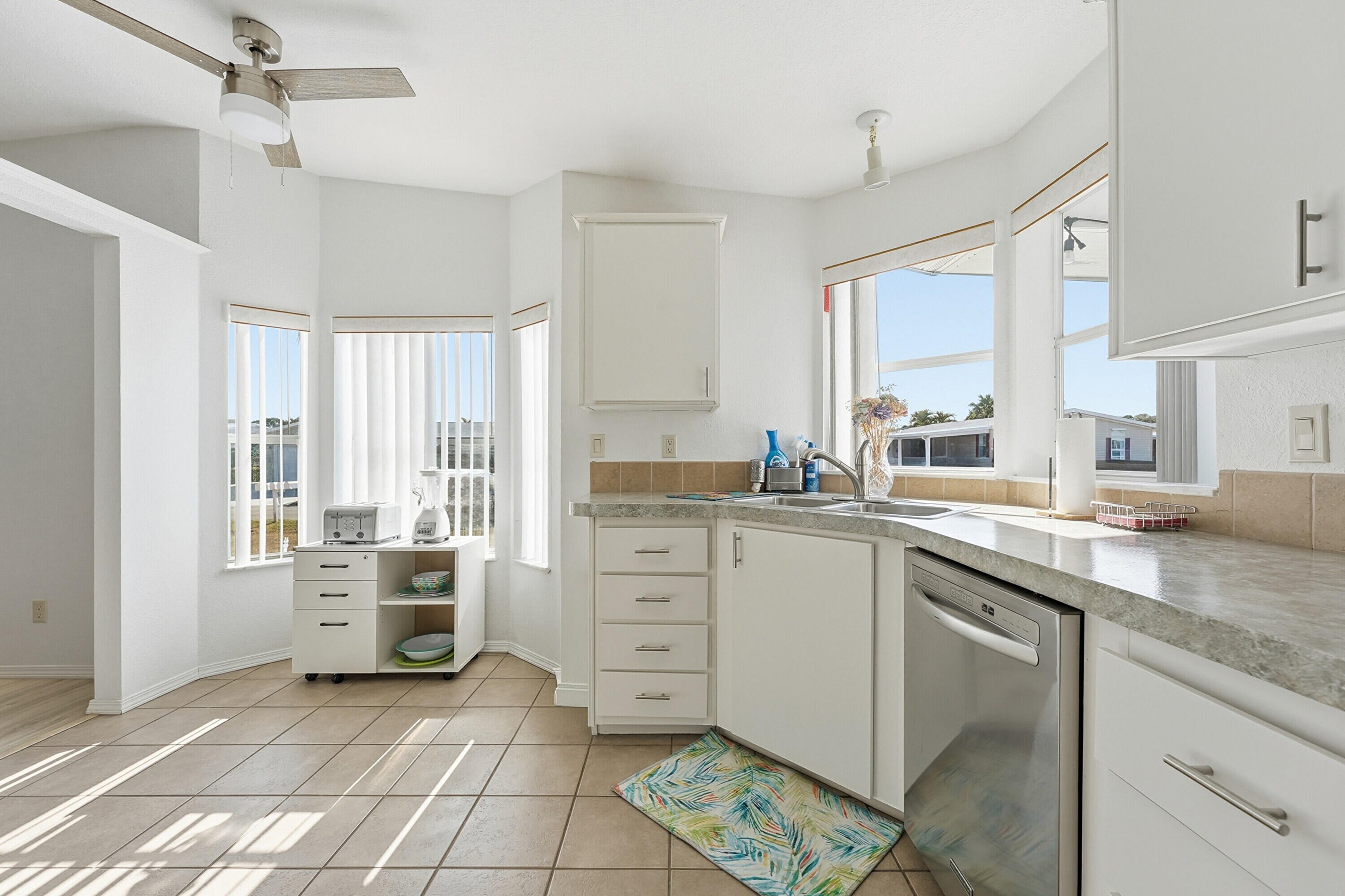 Land Lease home in 55+ community of Savanna Club. MOVE IN CONDITION, includes all furnishings and electronics as pictured. Some updates include new flooring and countertops, and landscape curbing and decorative rock. 2 Bedrooms, 2 Baths with Florida Room. Inside newer full-size washer and dryer. Storage shed. Golf cart negotiable. Savanna Club offers many amenities: golf course, 3 clubhouses, 3 pools, fitness room, tennis/pickle ball, on-site restaurant, organized activities and much more. NEW ROOF - Roof will be replaced prior to closing.