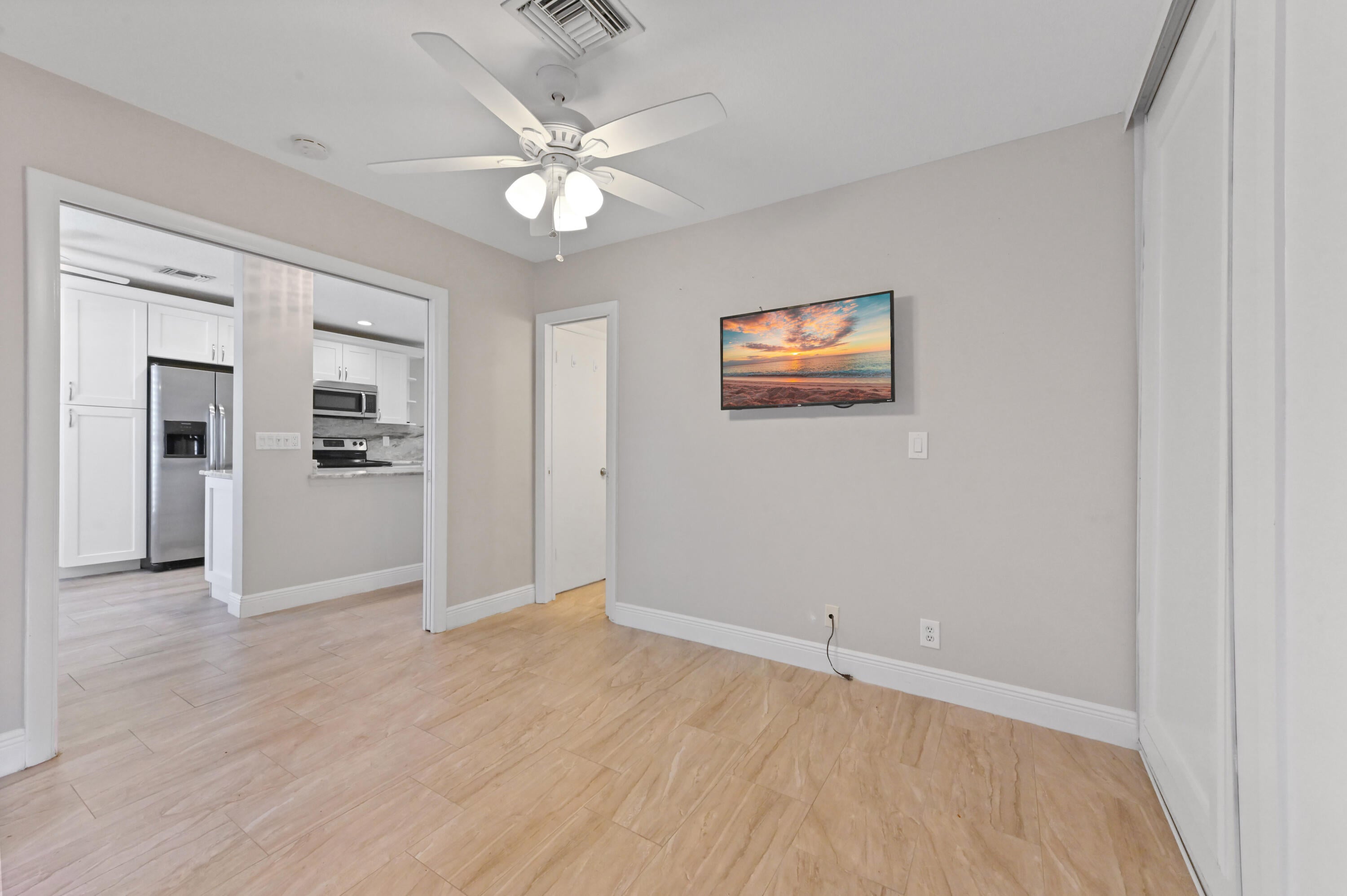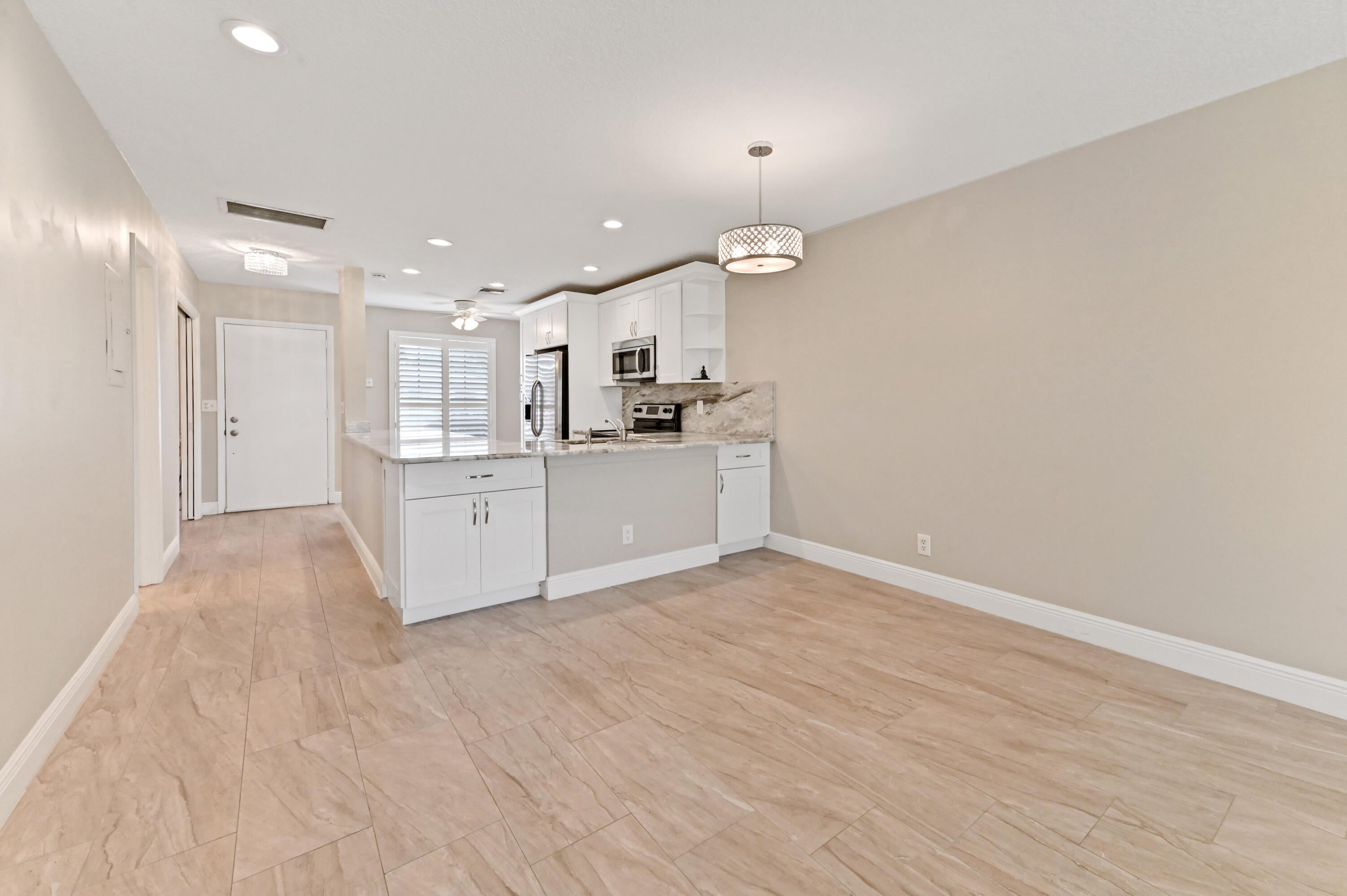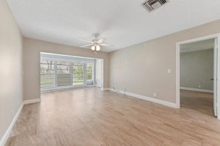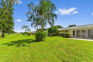 Step into this beautiful 2-bed, 2-bath villa, designed for ultimate tranquility with no neighbors above. From the moment you enter, natural light floods the space, highlighting luxury upgrades throughout. The custom kitchen boasts modern finishes, while the elegantly remodeled bathrooms and sleek tiled flooring elevate the home's aesthetic. Plantation shutters add a refined touch, and the open-concept design seamlessly connects the kitchen to the spacious living area--ideal for both everyday living and entertaining. Step outside to your private patio, surrounded by lush greenery, offering a serene retreat. With an in-unit washer and dryer, convenience is at your fingertips.This villa is located in the 55+ Active Adult Community of Palm Greens, an expanding neighborhood enhanced by Lenna with resort-style amenities. A short walk leads you to the clubhouse, where a world of activities awaits. Whether you enjoy tennis, pickleball, billiards, or staying fit in the gym, you'll find plenty to do. Relax by the resort-sized pool with a hot tub, or join one of the many social clubs available. The vibrant community ensures there's always something happening, and with no membership required, you can enjoy it all from day one. Palm Greens offers the perfect blend of relaxation and recreation, all just under 6 miles from award-winning beaches and a host of dining and entertainment options. Monthly dues are comprehensive, covering water, cable, exterior maintenance, lawn care, and more, ensuring a hassle-free lifestyle. Don't miss this opportunity to experience upscale living in one of the area's most desirable 55+ communities!