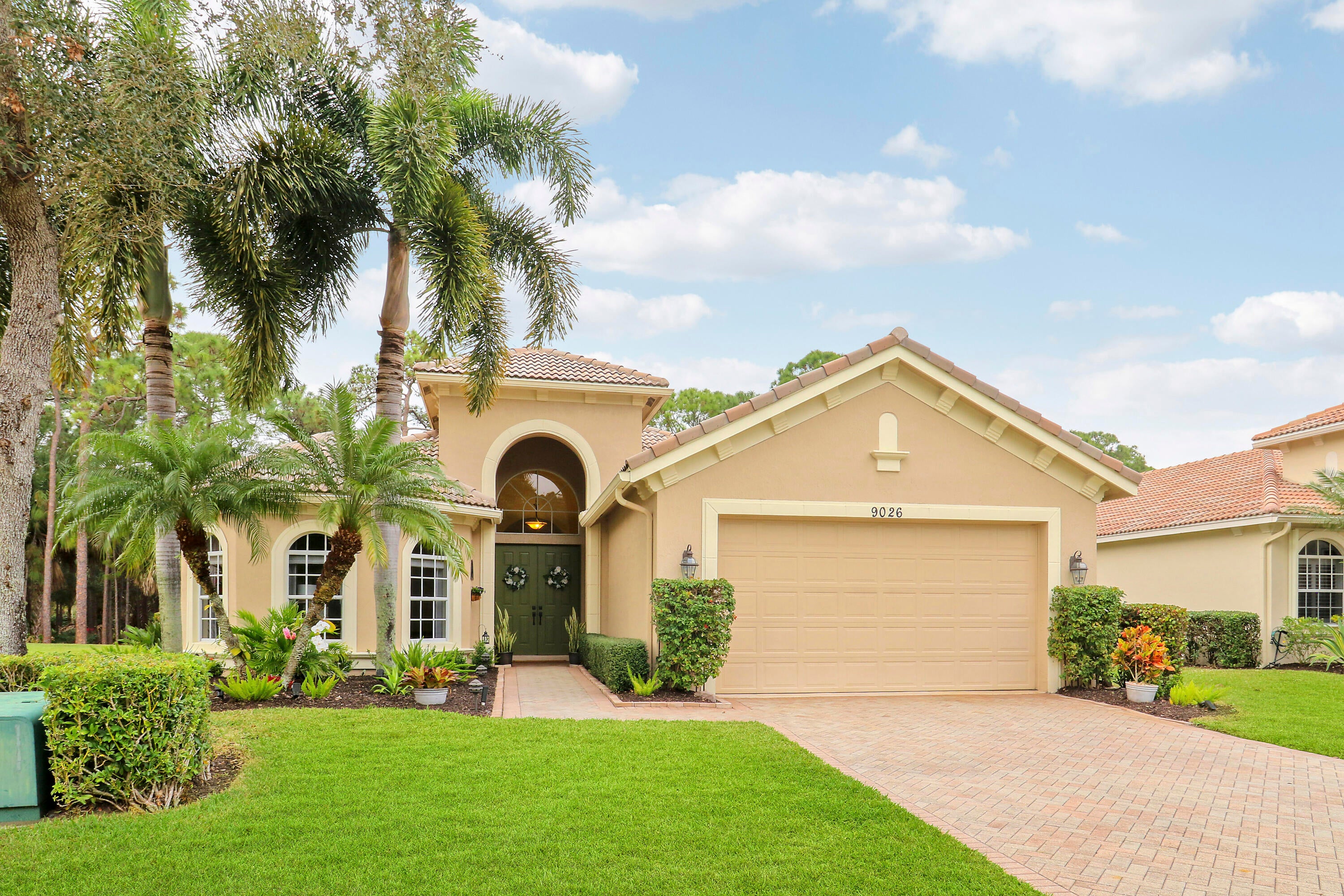 Welcome to this exceptionally maintained 3-bedroom, 3-full-bath, 2 car garage home located in the gated community of PGA Village. This home located on a spacious pie shaped lot features a newer 2022 Heated Pool, Spa and Lanai overlooking a beautiful scenic preserve. The home features 12ft ceilings, new premium laminate flooring in all bedrooms, newly painted interior, upgraded recessed lighting and a new efficiency A/C. The kitchen offers plenty of counter space for entertaining, lg breakfast bar, granite counter tops, SS appliances, 42'' wood cabinets and a pantry. Enjoy meals in the kitchen dining area looking out the glass bay window. The primary bedroom overlooks the pool/spa and preserve with sliding doors for easy access. Features two walk-in closets, dual vanitiesspa like soaking tub and lg walk-in shower. The lanai offers plenty of covered area to enjoy the outdoors or watch some TV. PGA Village offers COUNTY TAXES ONLY. There are two MEMBERSHIP OPTIONAL golf courses in PGA Village. The PGA Golf Club and a private club The Legacy Golf & Tennis Club. The Island Club offers lots of activities, pickleball, tennis, exercise rooms, gym, ballroom, billiards, card rooms and more. 45 min to Palm Beach International airport. Minutes from Cleveland Clinic Hospital among others, restaurants, shopping and parks. Home to the Mets spring training and Minor league team. This a great home..great location. Easy to schedule an appointment.