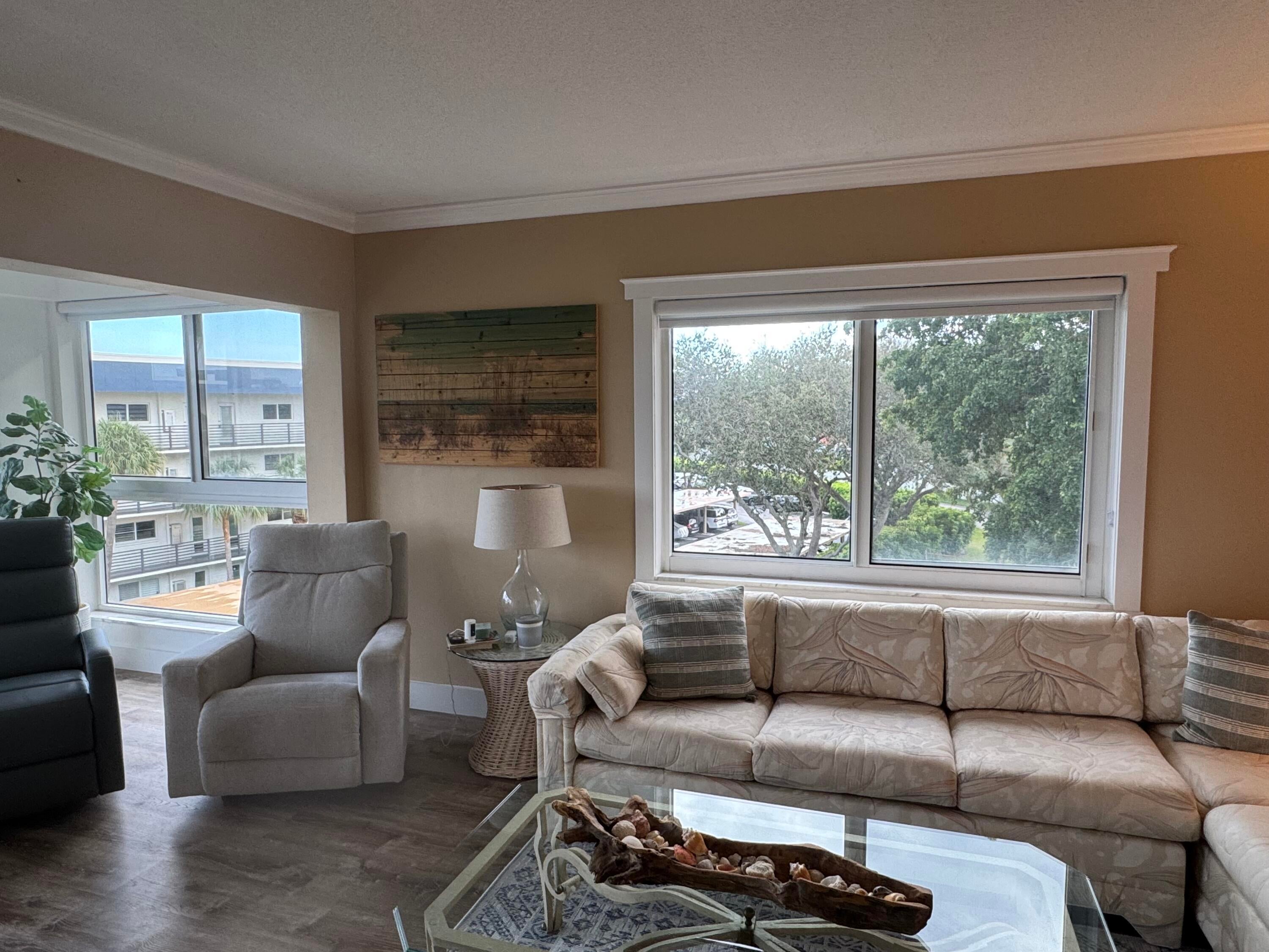 Discover Tropic Harbor -- where waterfront living meets a welcoming, active lifestyle. Nestled on the scenic Intracoastal Waterway, just 2.5 miles from Atlantic Avenue & the beaches of Delray, this 55+ community offers the perfect balance of relaxation & connection.Life at Tropic Harbor centers around sunshine, social gatherings, and the water. Whether you're lounging at one of the two pools, enjoying the Intracoastal breeze from your balcony, or setting out by boat from the community's private marina, every day feels like a getaway.This 4th floor corner penthouse unit is steps away from a water view, dockage and amenities for a great price! New AC & HWT 2022. New covered parking will be started soon. A fully funded budget & current assessments are paid! Open Sunday Feb 1, 12-2
