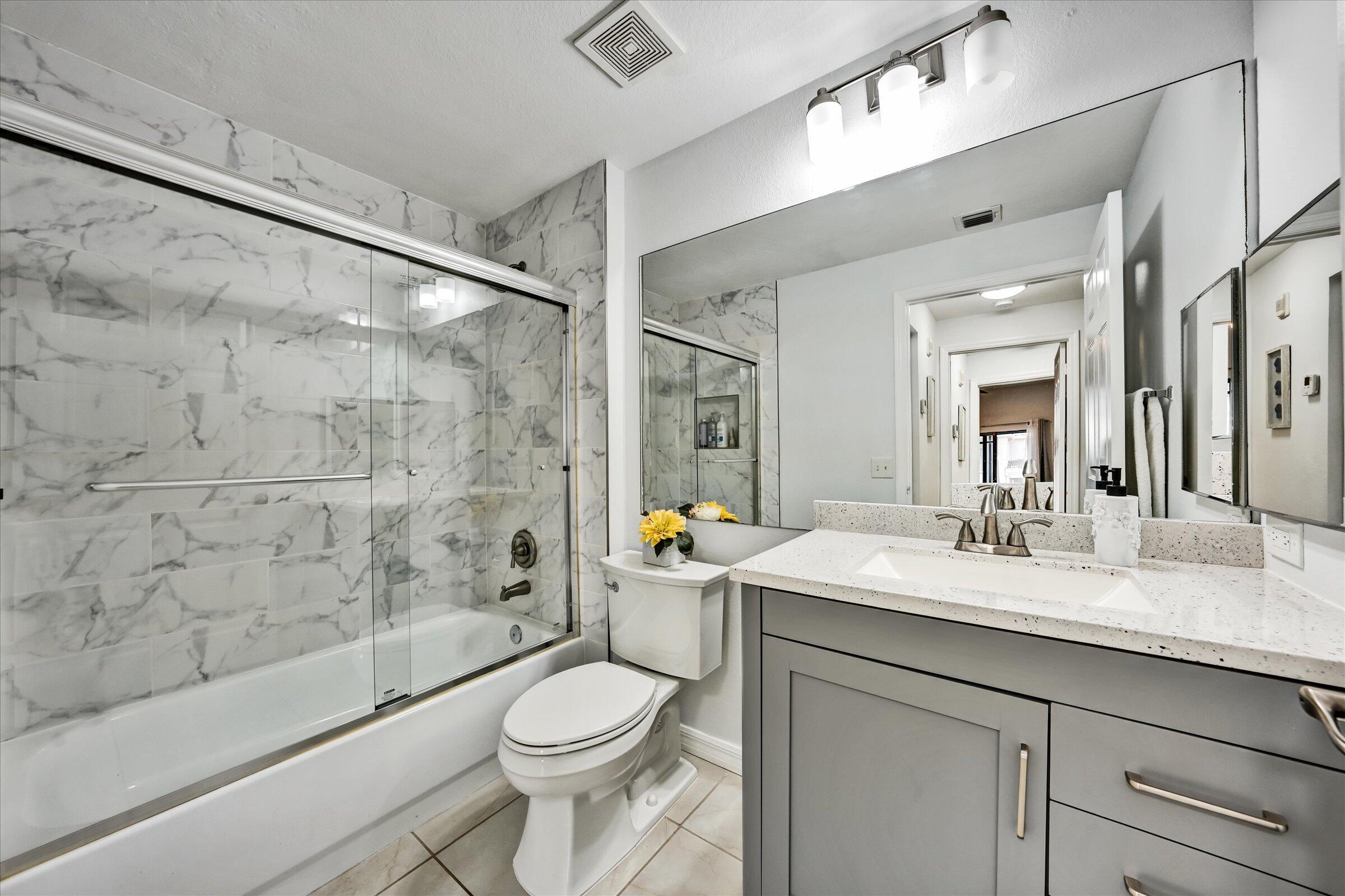 Beautifully updated 3-bedroom, 3-bath, plus loft residence located in the highly desirable, gated community of San Matera. New kitchen with modern cabinetry, countertops, and stainless-steel appliances, along with fully renovated bathrooms showcasing contemporary finishes. One bedroom & one bath on first level, 2 master suites with 2 bathrooms plus loft on second level. The split-bedroom floor plan offers privacy and functionality, ideal for full-time living or seasonal use. Hurricane impact windows throughout the second floor. New roof in 2022-23.Enjoy resort-style amenities including a clubhouse, pool, fitness center, tennis, pickleball courts, sauna, EV charging stations, kids' playground, and scenic walking paths. Close to mall, major highways, & the beautiful beaches!