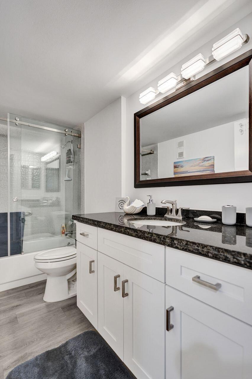 FANTASTIC HUNTINGTON POINT CONDO IN IMMACULATE MOVE IN CONDITION. ENJOY RELAXING LONG LAKE VIEWS FROM LIVING ROOM/ENCLOSED PATIO AND PRIMARY BEDROOM. UPGRADES INCLUDE ALL WINDOWS IMPACT GLASS, ENCLOSED PATIO FOR EXTRA SPACE, REDONE KITCHEN AND BATHS, LAMINATE FLOORING, WASHER/DRYER IN UNIT AND SO MUCH MORE. * ALL ASSESSMENTS PAID IN FULL* NEW ROOF BEING PUT ON IN FEBRUARY*HUNTINGTON POINT FEATURES A NEWLY REDONE CLUBHOUSE WITH ON SITE RESTURAUNT. FULL 600 SEAT THEATER WITH FANTASTIC SHOWS, TENNIS AND PICKLE BALL, FITNESS CENTER, 5 SATELLITE POOLS PLUS AND INDOOR POOL, ART STUDIO, MANY CARD ROOMS AND LOTS OF CLUBS TO JOIN. COME SEE THIS TURNKEY RESIDENCE AND EXPERIENCE THE HUNTINGTON POINTE LIFESTYLE.