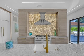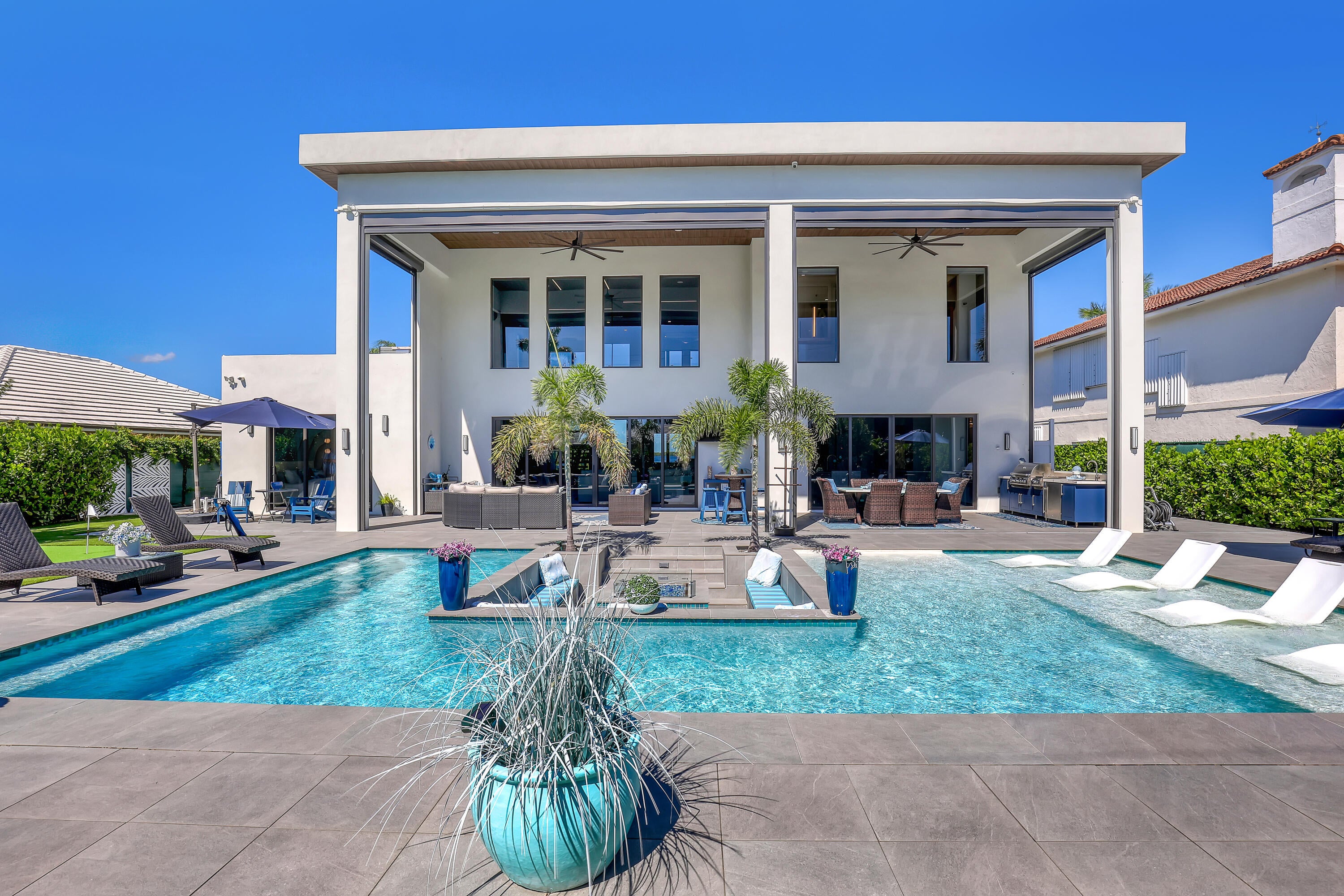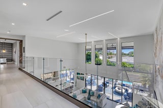 Experience elevated coastal living in this stunning custom modern residence featuring breathtaking water views, sleek architectural design, and resort-style amenities throughout.This two-story home offers an open-concept layout with soaring ceilings, a designer chef's kitchen with waterfall island, custom cabinetry, and elegant finishes accented by warm modern details. Expansive floor-to-ceiling windows flood the home with natural light and seamlessly connect indoor and outdoor living.Step outside to your private resort-style backyard complete with a luxurious pool, lounging areas, and tranquil waterfront views -- perfect for entertaining or relaxing in style. Enjoy sunsets from the covered balcony, offering panoramic views of the water and surrounding skyline.