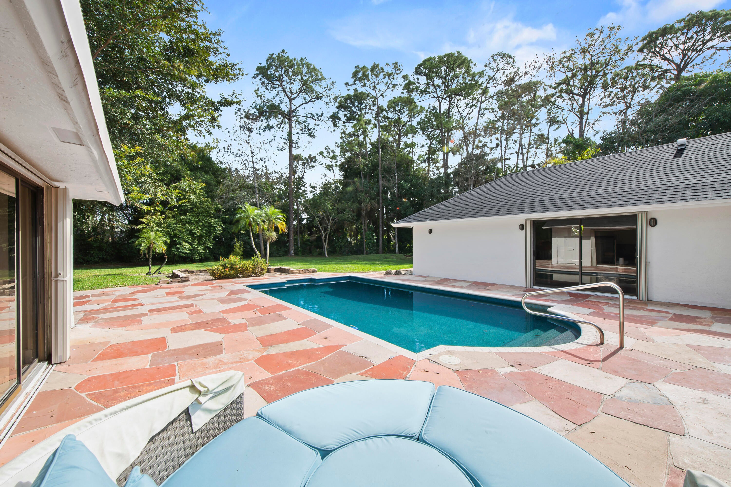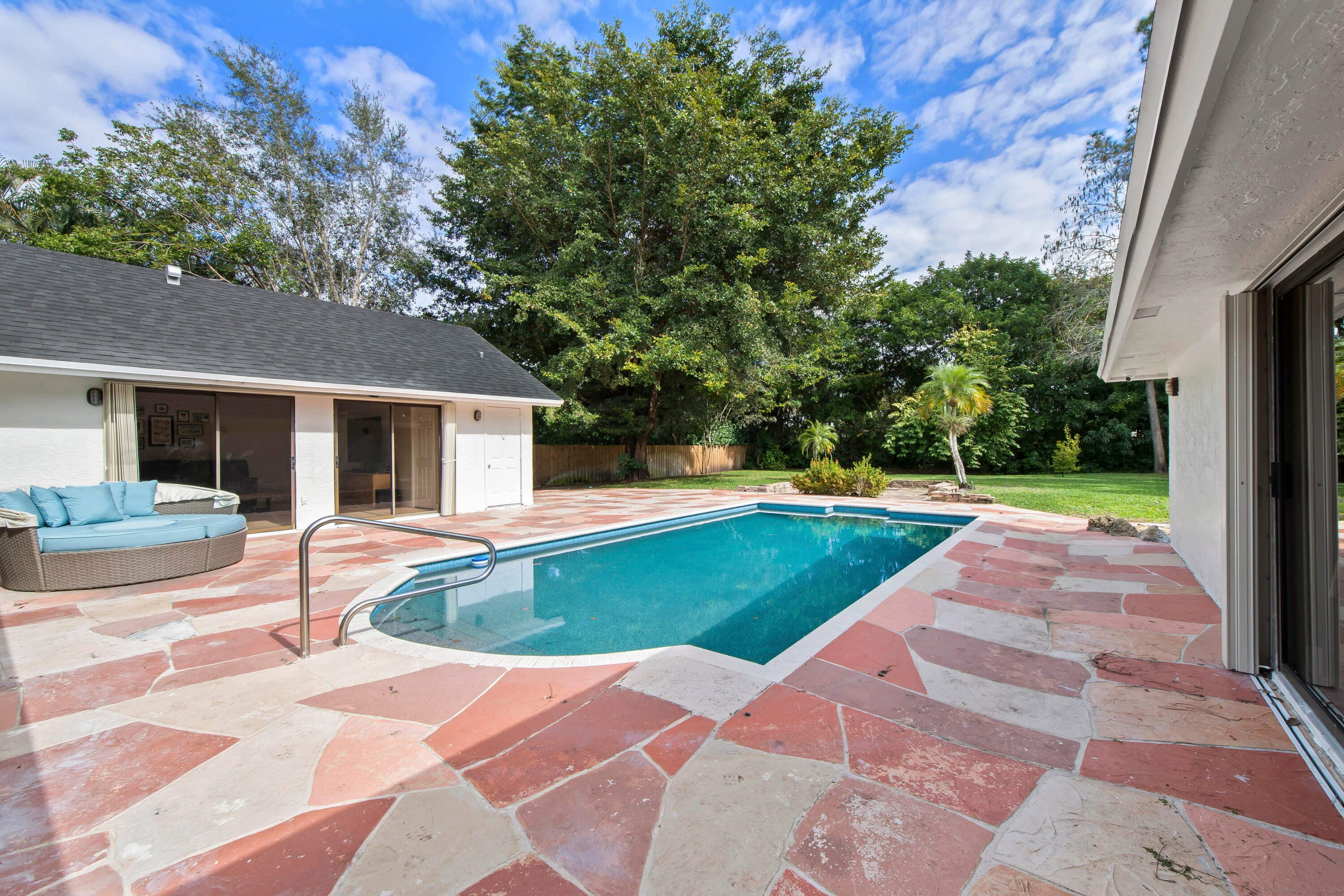 Welcome homeWelcome home to this fully remodeled, floor-to-ceiling ranch-style estate offering the perfect blend of modern luxury and everyday comfort. This stunning single-family residence features 4 spacious bedrooms and 3 full bathrooms, situated on an oversized pie-shaped lot with a large courtyard-style private poolideal for entertaining or relaxing in complete privacy. Tucked away on a quiet cul-de-sac within a small, private no-HOA community, this home offers both exclusivity and convenience. No stone was left unturned during the comprehensive renovation completed after purchase in 2024. Upgrades include large-format tile flooring throughout, a brand-new custom kitchen with an oversized island, and top-of-the-line Thermador appliances, including a built-in refrigerator, convection cooktop, and double oven. Additional improvements include a new roof, new electrical panel, tankless water heater, Culligan water filtration system and softener, fully remodeled bathrooms, new washer and dryer, updated fixtures, outlets, light switches, a new pool pump, and much more. Conveniently located near major roadways, shopping, supermarkets, and top-rated schools, this move-in-ready home offers exceptional quality, thoughtful design, and an unbeatable location.