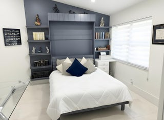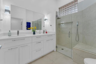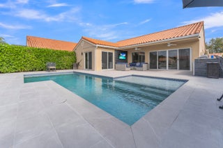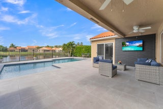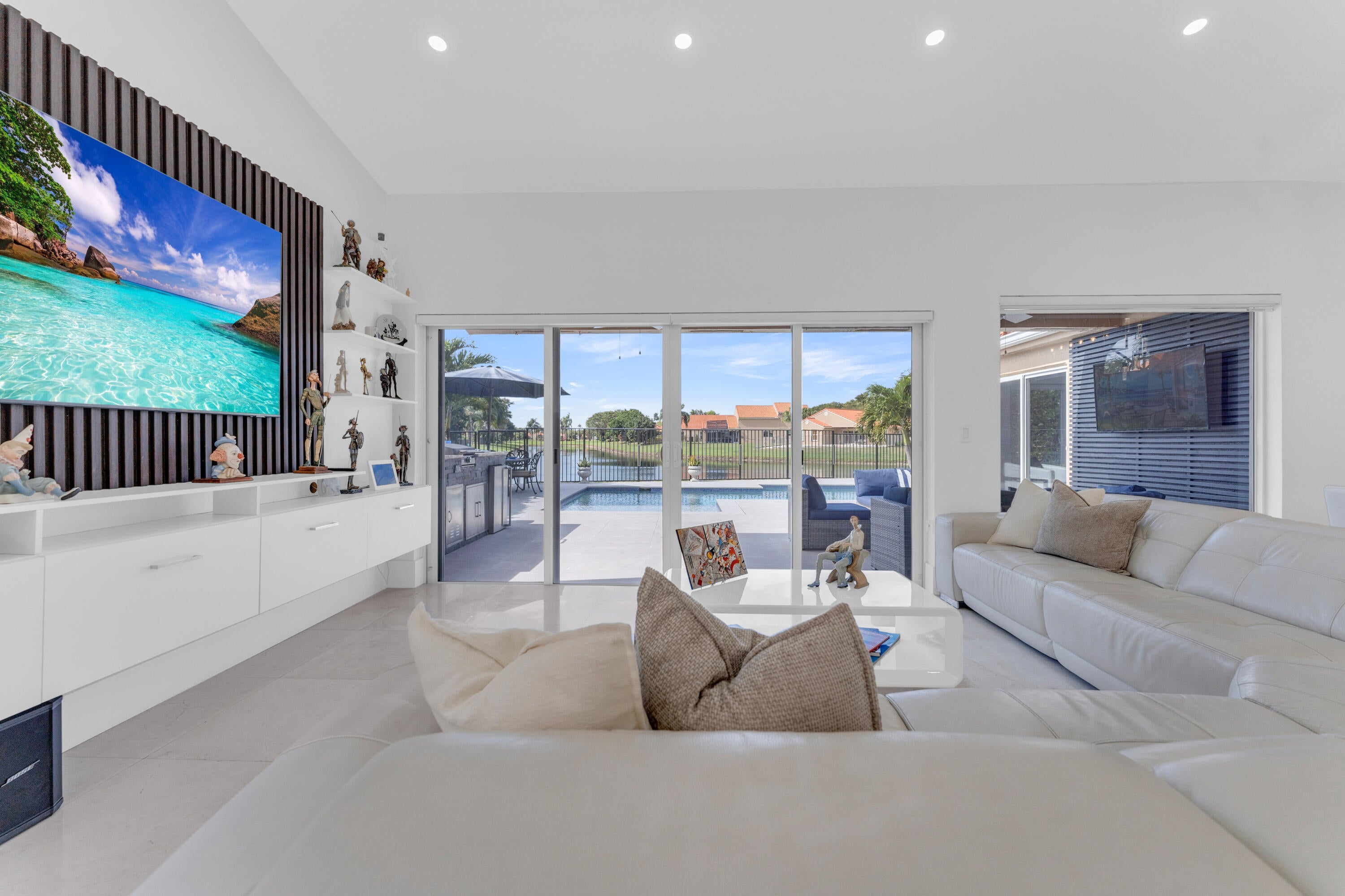 Welcome to this impeccably remodeled home, where every detail has been thoughtfully designed to deliver a sleek, modern lifestyle. This residence has undergone a full renovation and features a true open-concept layout that immediately showcases the home's refined finishes and attention to detail.Marble flooring flows throughout the home, complemented by custom-designed closets in every bedroom and custom entertainment units in all bedrooms and the living room. LED lighting enhances the modern ambiance, while smart outlets are installed throughout for added convenience.The chef's kitchen boasts quartz countertops with a waterfall edge, abundant storage, a smart kitchen faucet, and brand-new high-end stainless-steel appliances. The third bedroom is currently utilized as an officeand includes a Murphy bed for versatility. The primary bathroom features a Wi-Fi-enabled ventilation system, and modern blinds complete the interior finishes. Enjoy peace of mind with hurricane-impact windows and sliding doors. Step outside to a stunning, newly installed in 2022 zero-entry pool and an extended tiled patio, both designed with heat-resistant materials, all overlooking a serene lake. This backyard is a true entertainer's retreat, perfect for gatherings with family and friends. Lower HOA. Two community pools ( Heated), a gym, and a tennis court. Close to many great restaurants, Town Center Mall, and Uptown Boca