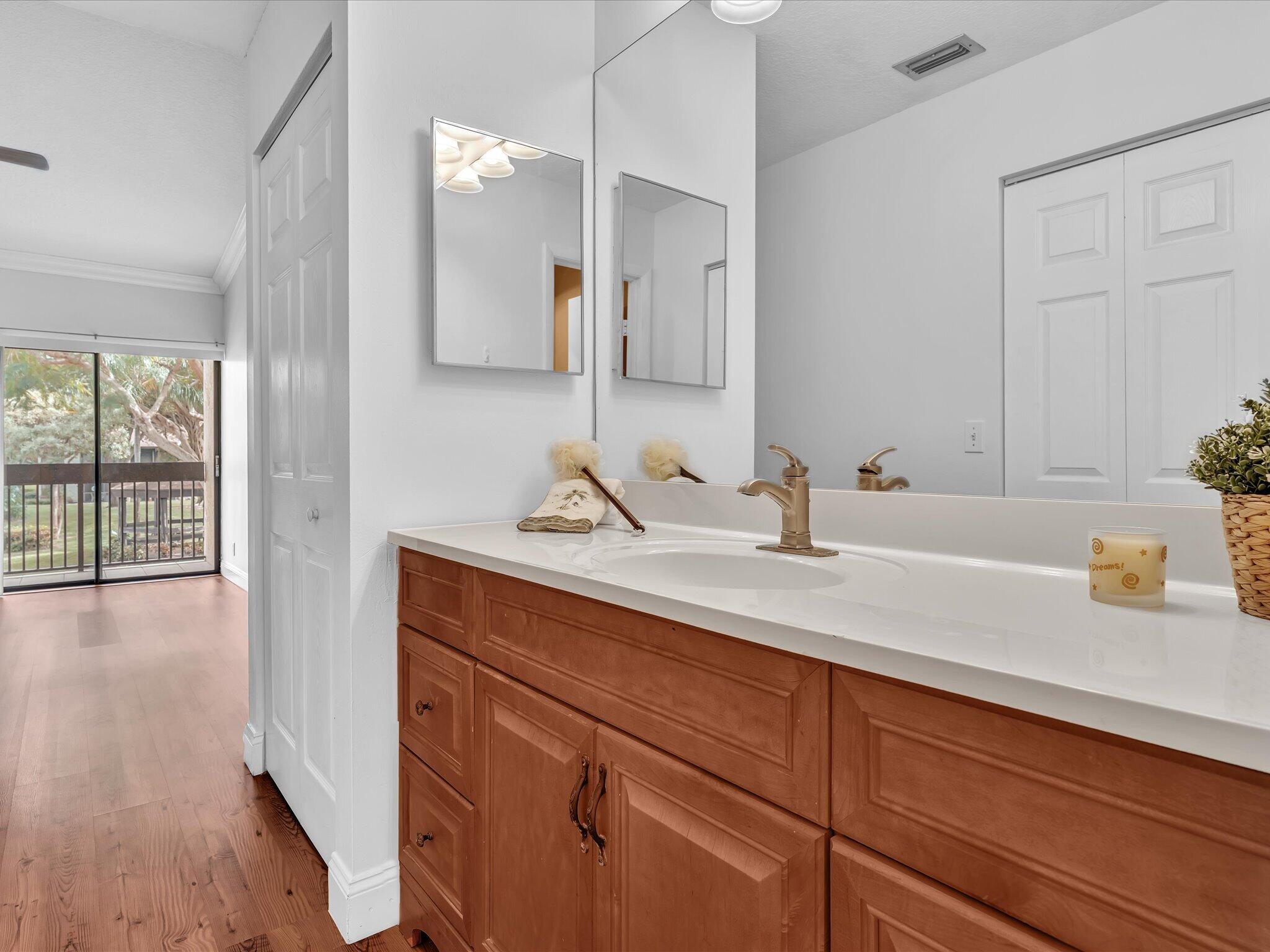 READY NOW! Move right into this spacious 2/2 second floor condo with vaulted ceilings and crown molding throughout! Enjoy peaceful view of courtyard from your enclosed balcony, more room to relax and entertain! Large living and dining rooms, eat in kitchen with breakfast area and garden window for your herbs. Updates include laminate floors, ceiling fans, lighting, guest bedroom built in closet. Private master suite with open balcony, walk in closet, extra linen closet, vanity dressing area, redone shower with glass doors. Laundry closet with combo washer/dryer near guest room and bath. Additional closet in hallway and storage room off balcony. Close to community clubhouse and pool. Near shopping, major highways and short drive to the beach. COME HOME TO MEADOWRIDGE EAST!