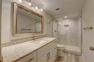 Completely renovated unfurnished 2 bedroom/2 bathrooms Lancaster model unit in desired active 55+community of Huntington Lakes. Enjoy gorgeous lake views from Primary Suite and the enclosed lanai with accordion shutters. Open concept new kitchen with white shaker cabinets and quartz countertop and backsplash, new Samsung SS appliances with full warranty, recessed ceiling LED lights. New beautiful 100% waterproof vinyl plank throughout entire condo, no popcorn, exquisite crown-molding and raised baseboards. Master suite with 2 spacious walk-in-closets. LED fan in every room. Separate laundry room with new Samsung W/D. All hardware and doors are new, as well as bathroom vanities, fixtures, frame-less Kohler shower doors. Call now to tour this unit!