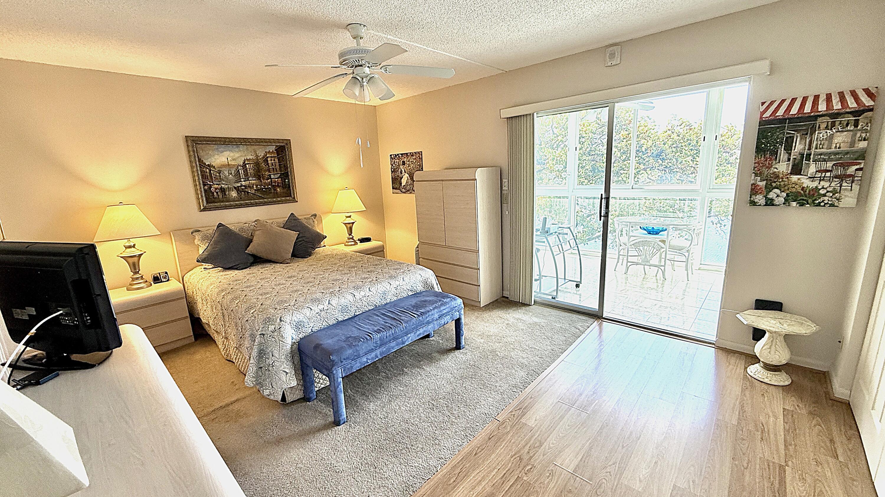 Fablous lake views from large enclosed Patio with Hurricane Impact Windows & Central AC. Furnished1 BR 1.5 Full Baths. Hurricane Impacts Windows & Front Door. AC Repalced 2024 & Hot Water Heater 6 years. Walking distance to an outdoor poor. Enjoy Walking Trails. Clubhouse extrodinaire has Indoor & Outdoor Pool, Cafe, 1600 Seat Theater, Clubs, Classes, Billiards, Tennis, Pickleball, Volleyball, Ping Pong, Bocce Ball, Shuffle Board, Fitness Center, Hiking Trails, Putting Green, Bike Trails & more. Close to Beaches, Entertainment, Dining, Shopping. Association claims 55+ community. Approval required.